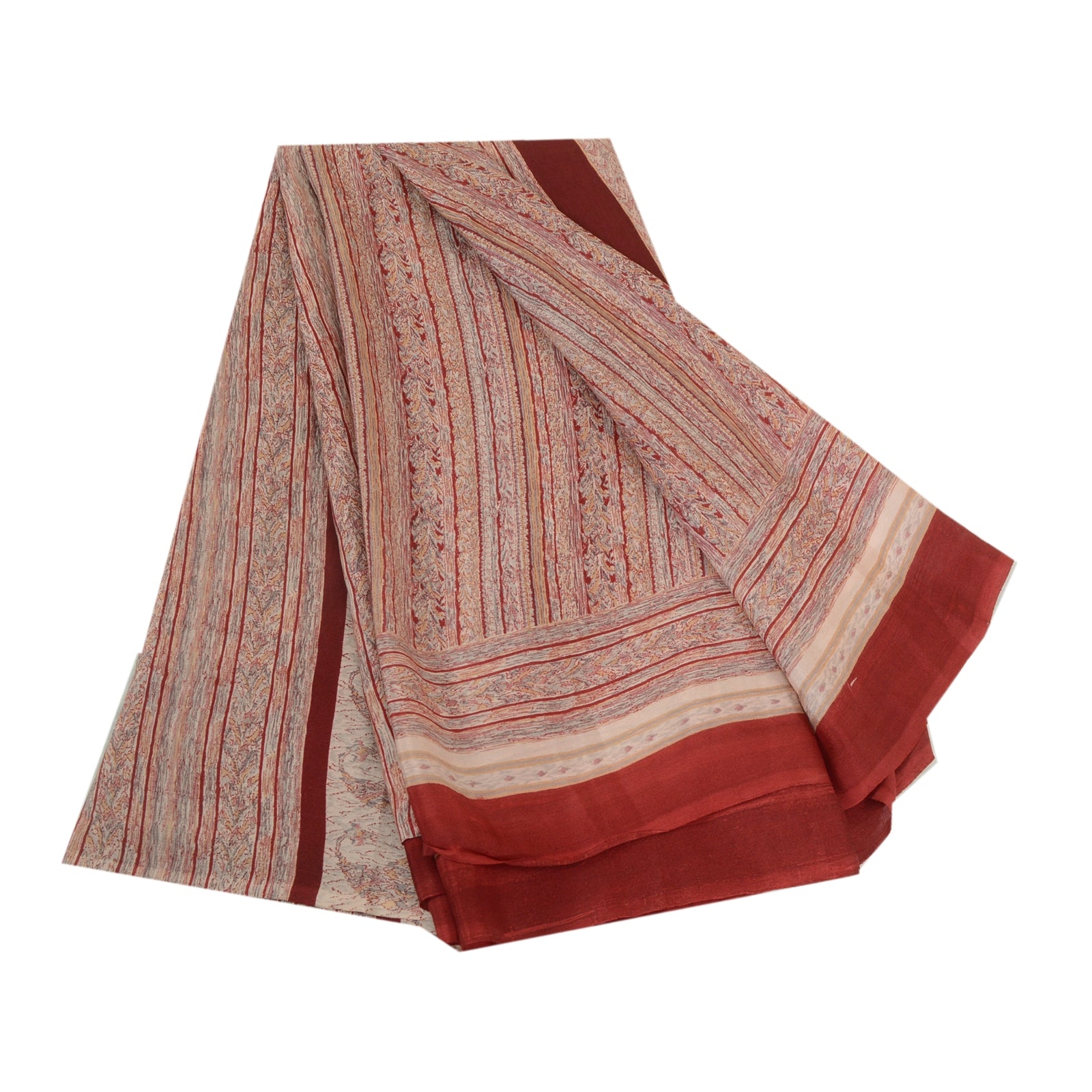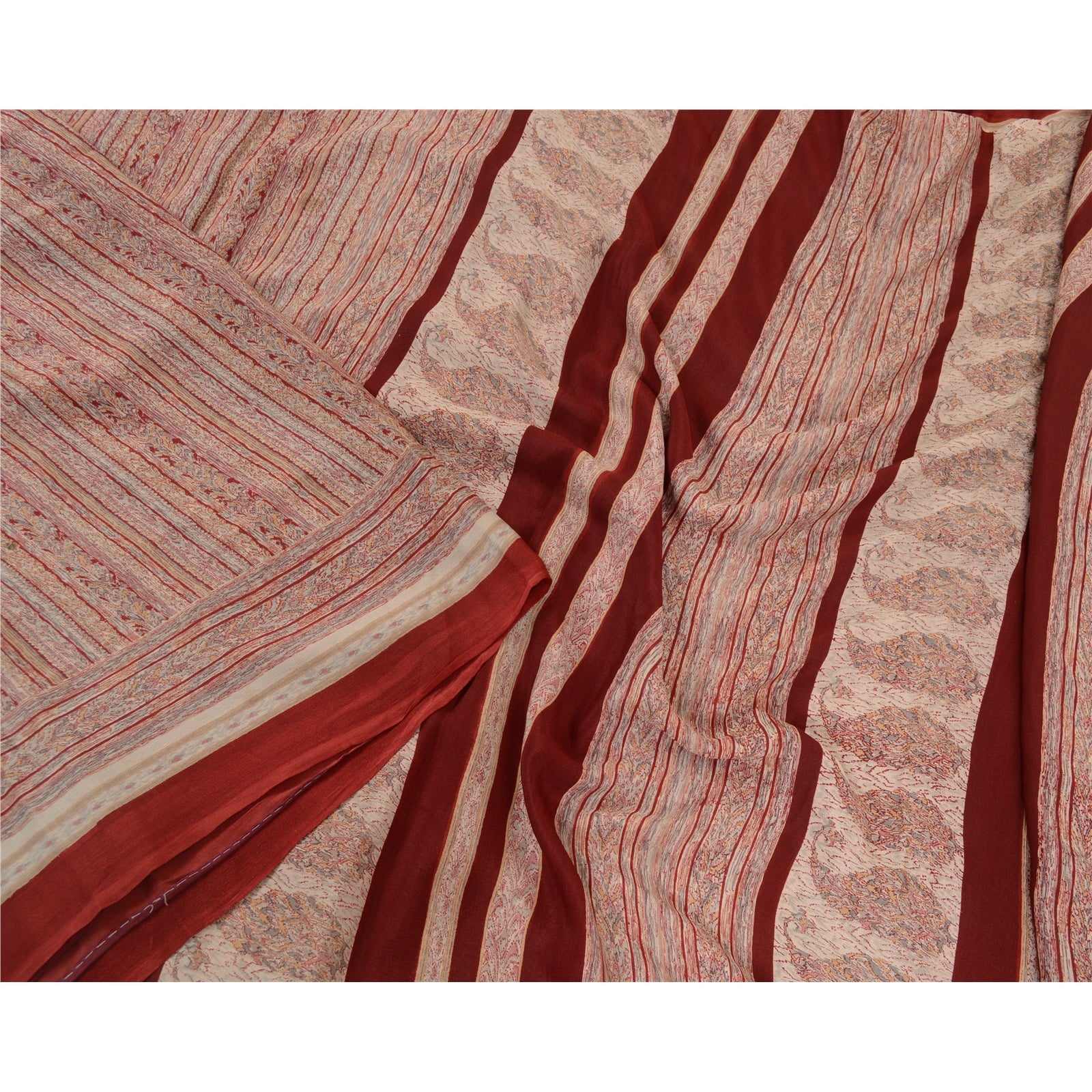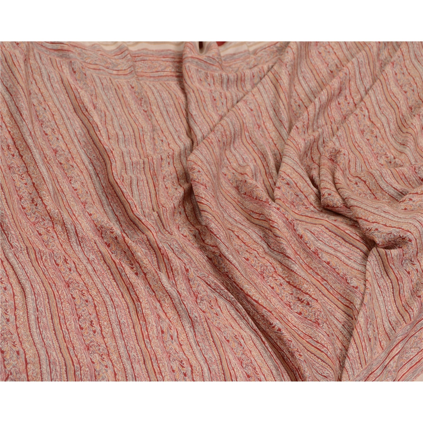Sanskriti Vintage Sarees Pink & Dark Red 100% Pure Silk Print Sari Craft Sustainable Fabric