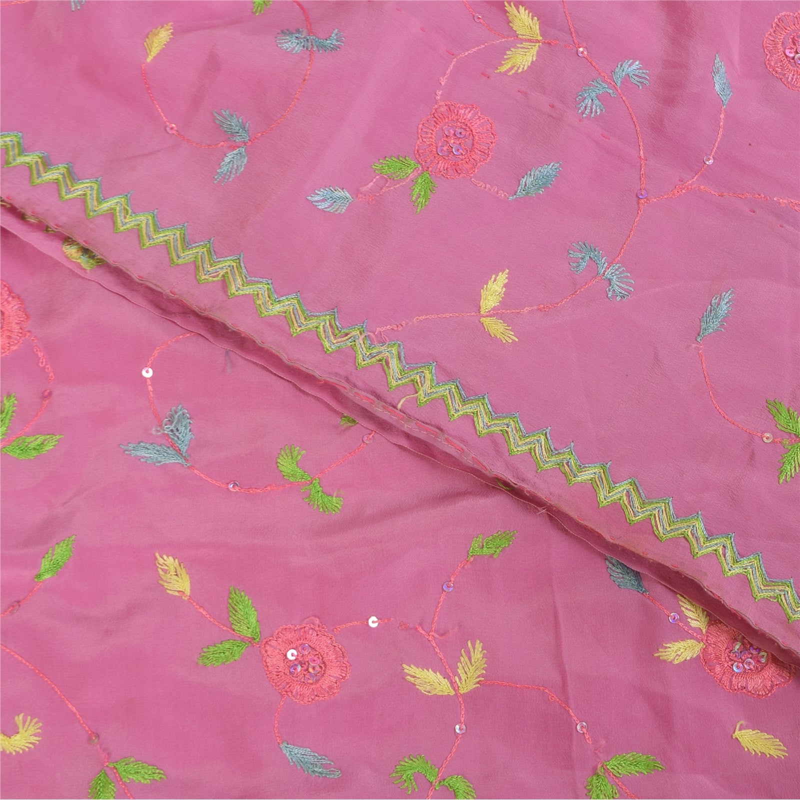 Sanskriti Vintage Sarees Pink Hand Beaded Suzani 100%Pure Crepe Sari 5+yd Sustainable Fabric