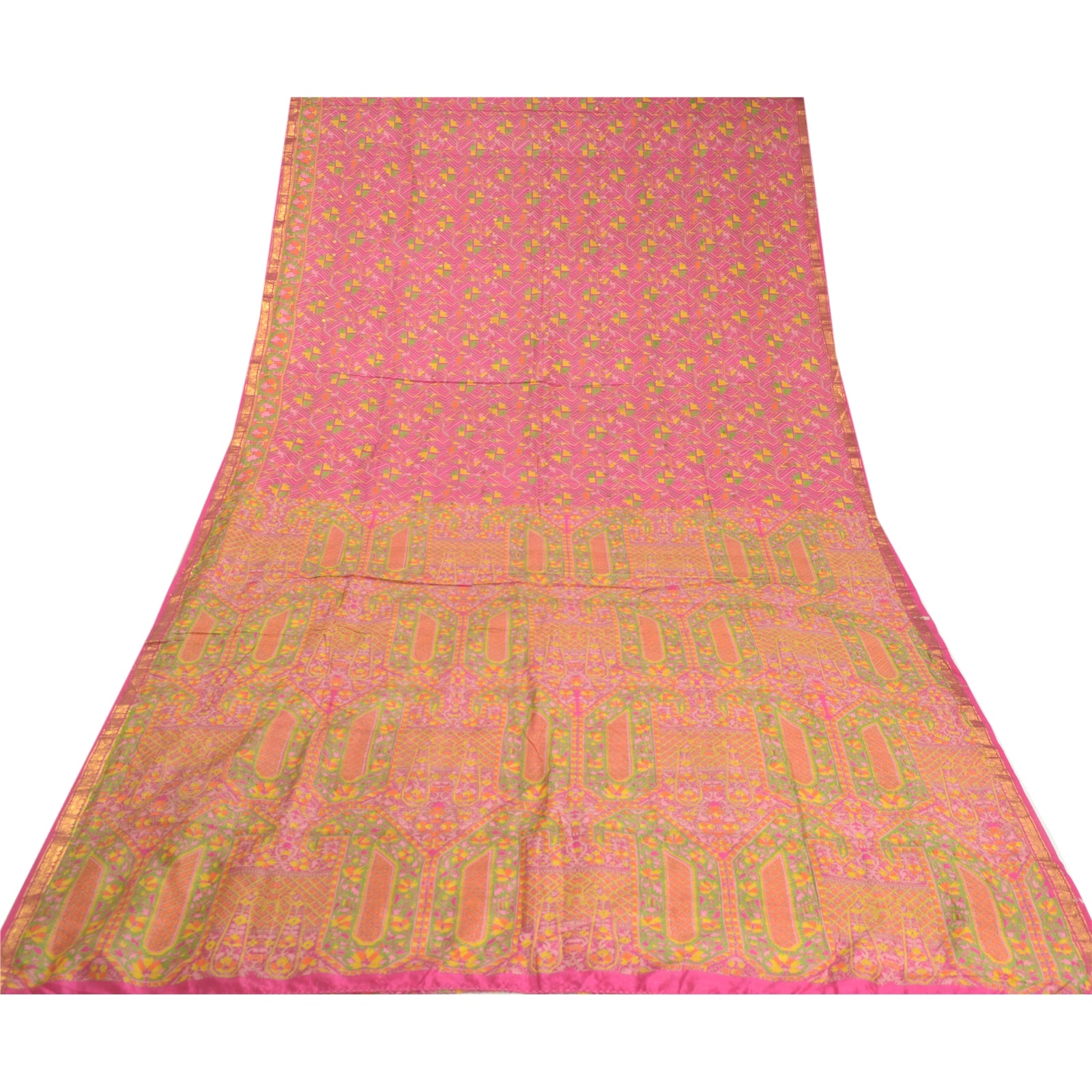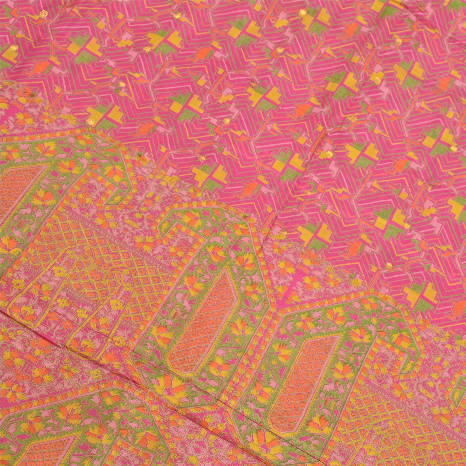 Sanskriti Vintage Sarees Pink Zari Border Printed Pure Silk Sari Craft Sustainable Fabric