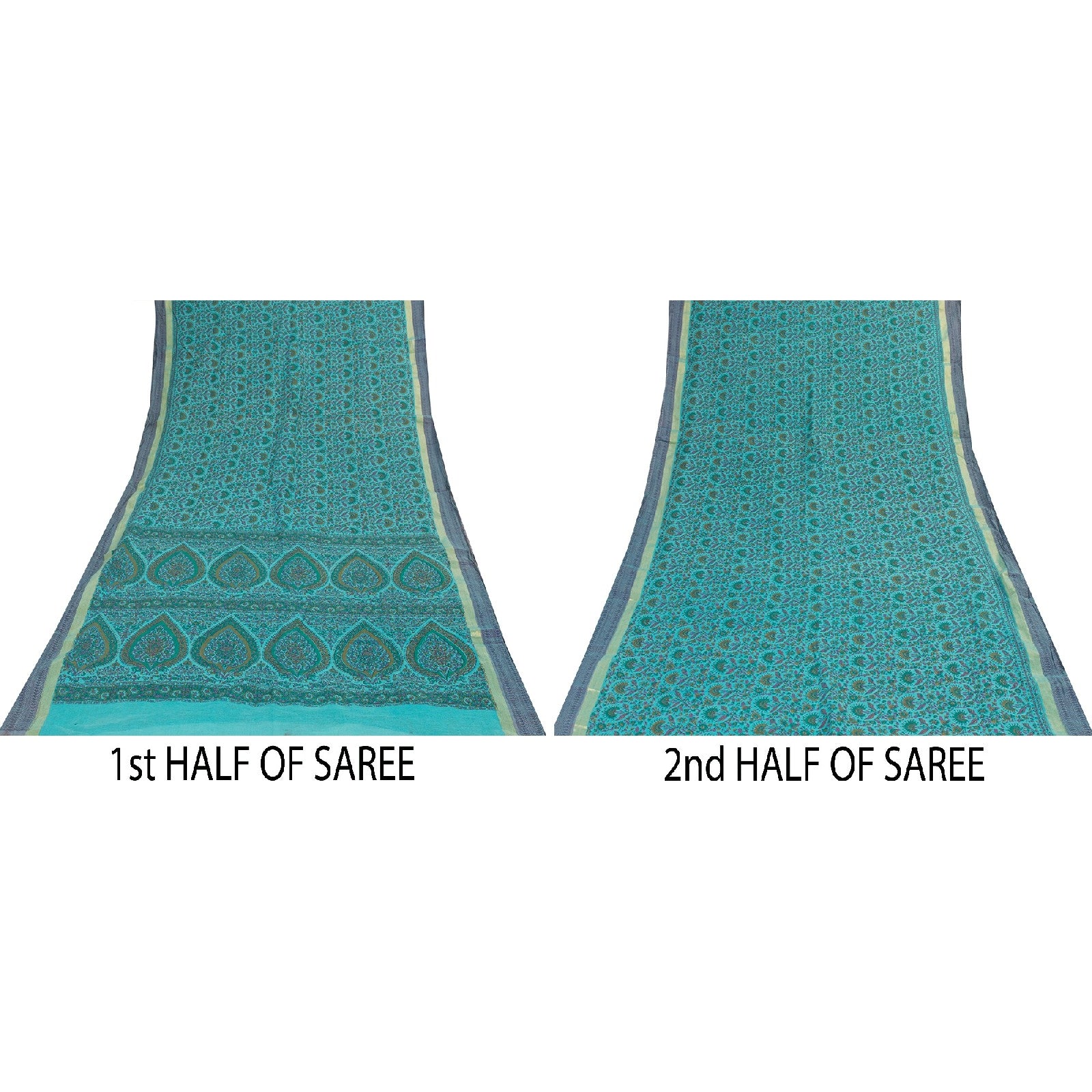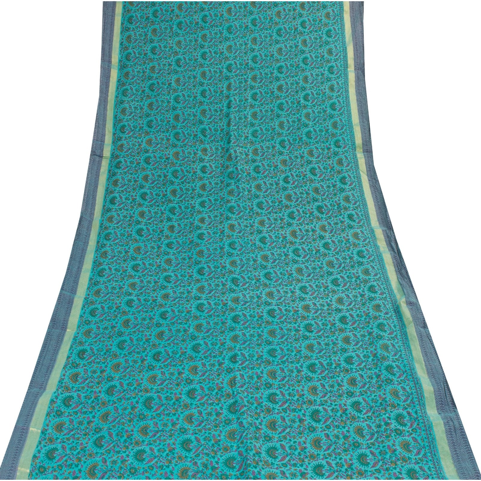 Sanskriti Vintage Sarees Pure Cotton Blue Floral Printed 5+yd Sari Craft Fabric