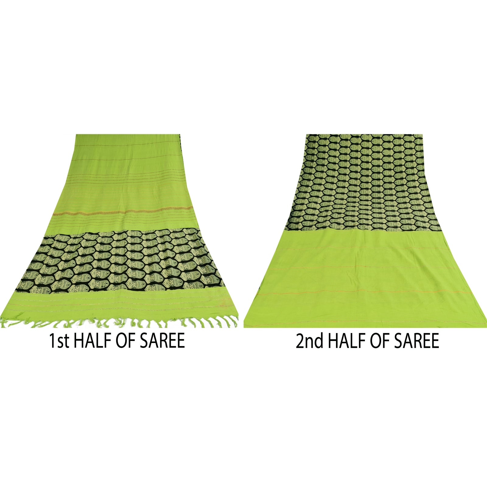 THE ITEM COLOR OR SHADE MAY BE DARKER OR LIGHTER THAN THE PICTURE. Attractive green colored pure cotton hand block printed & woven sari. Pallu & Border has printed kathakali face design & woven(handloom) work. Similar woven design in center part of saree.. This unique vintage saree can be used for various crafting ideas even if you don't want to use it as a sari. Design a dress, use it as a as window dressing, upholstery, sarongs, throw, dress making and table linen much more. Let your creative juices flow and use this decorated fabric in multiple fashion. Shipping Note: 'International buyers please note: Import duties, taxes, and charges are not included in the item price or postage cost. These charges are the buyer's responsibility. Please check with your country's customs office to determine what these additional costs will be prior to bidding or buying. Buyer will pay custom duty/tax. It is calculated and charged differently by every country. As a seller I do not have any control over it. VAT or sales tax is calculated by the platform at the time of checkout. Customs charge is payable at the time of delivery.' PCS-6488