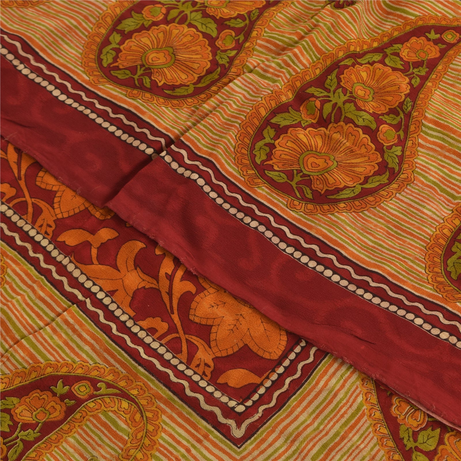 Sanskriti Vintage Sarees Pure Georgette Red/Orange Printed Sari 5yd Craft Sustainable Fabric