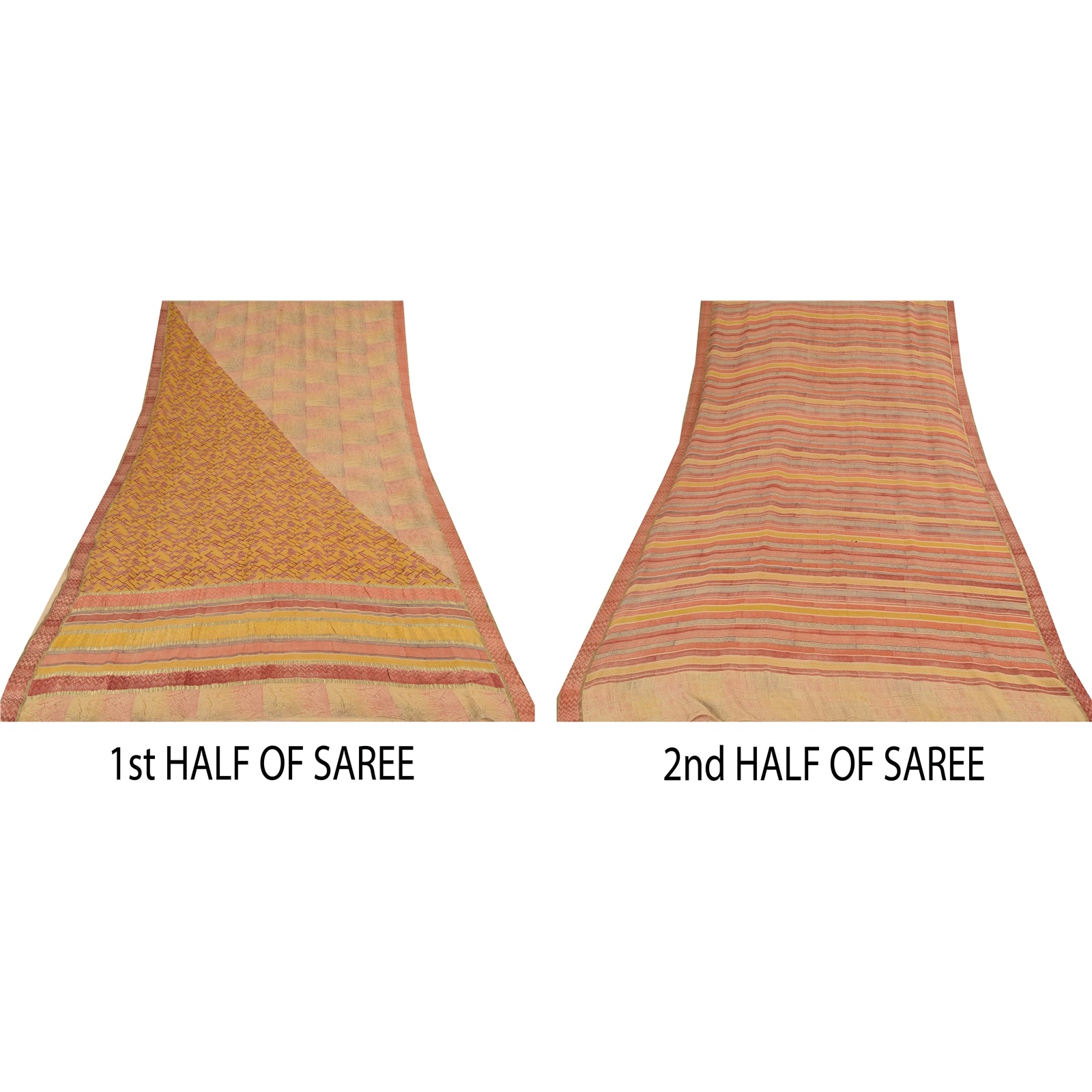 Sanskriti Vintage Sarees Pure Georgette Silk Printed Woven Sari 6yd Craft Sustainable Fabric