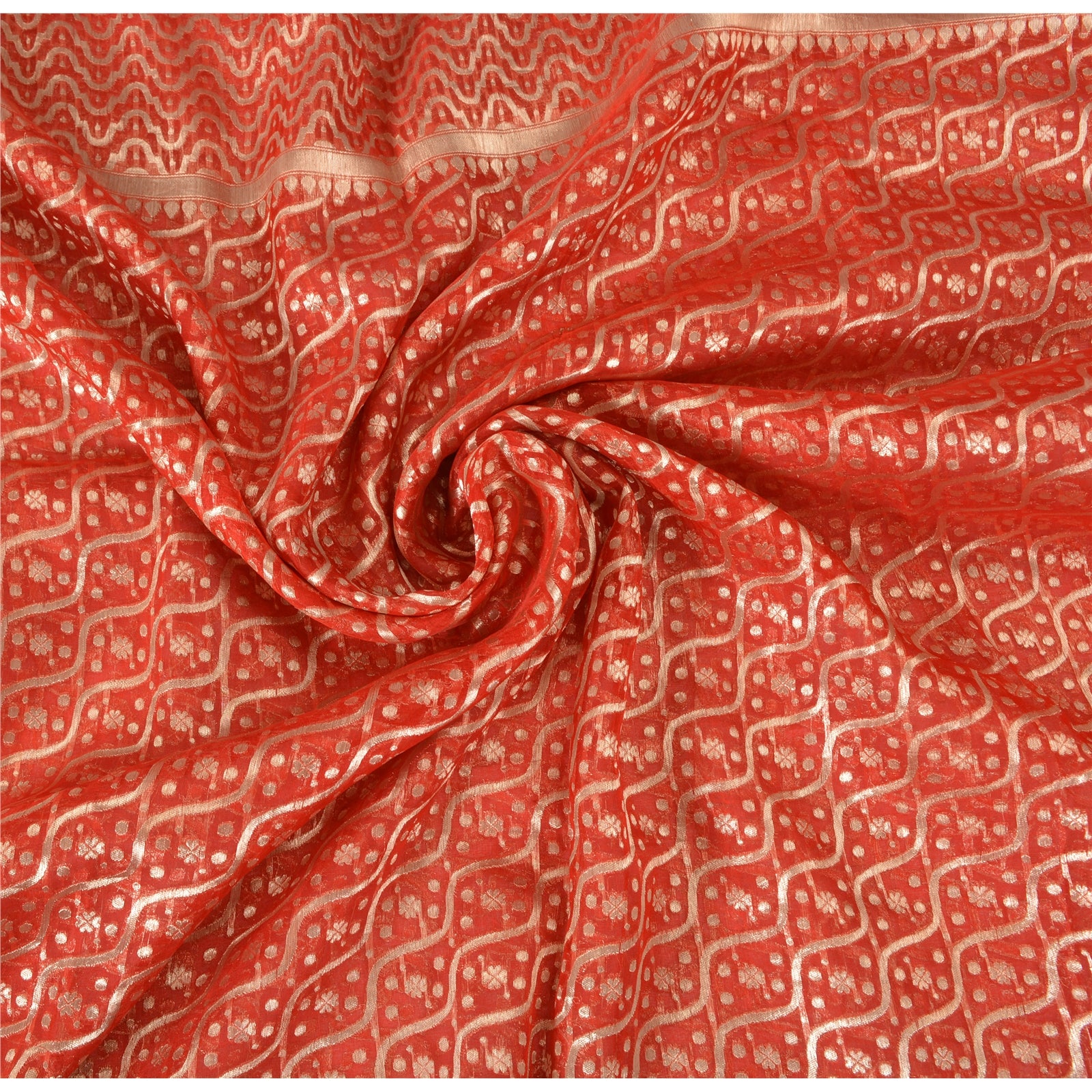 Sanskriti Vintage Sarees Pure Organza Handwoven Brocade/Banarasi Sari/Fabric