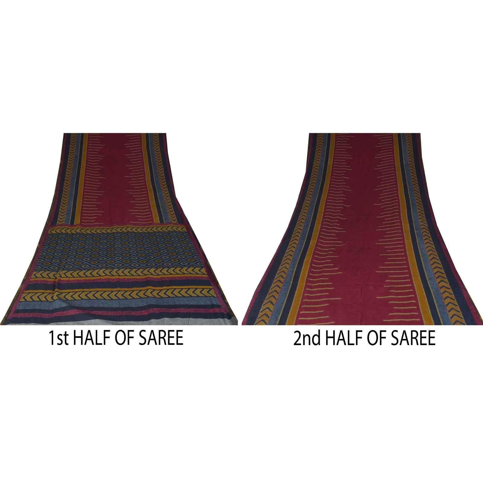 Sanskriti Vintage Sarees Purple 100% Pure Cotton Printed Sari 5+yd Craft Sustainable Fabric