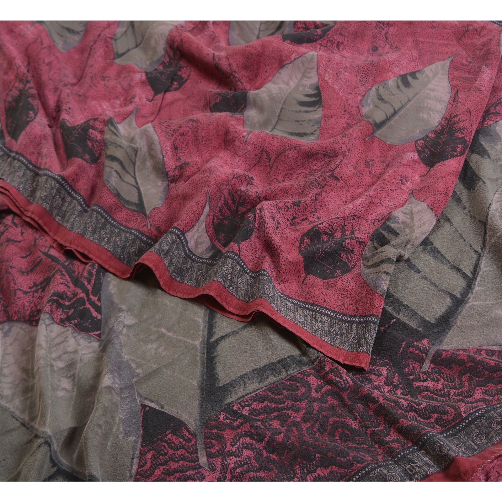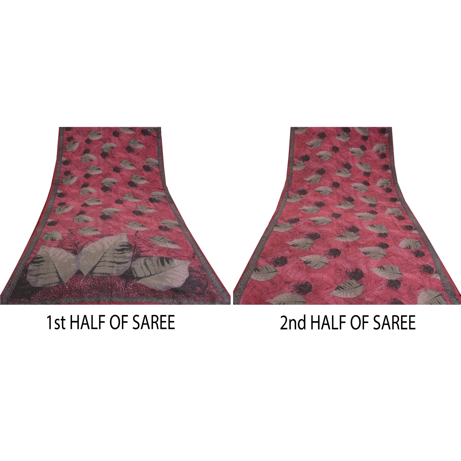 Sanskriti Vintage Sarees Purple 100% Pure Crepe Silk Printed Sari Craft Sustainable Fabric