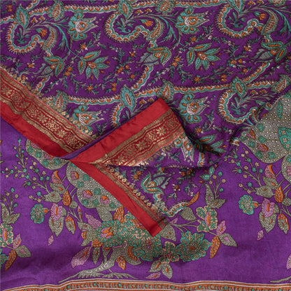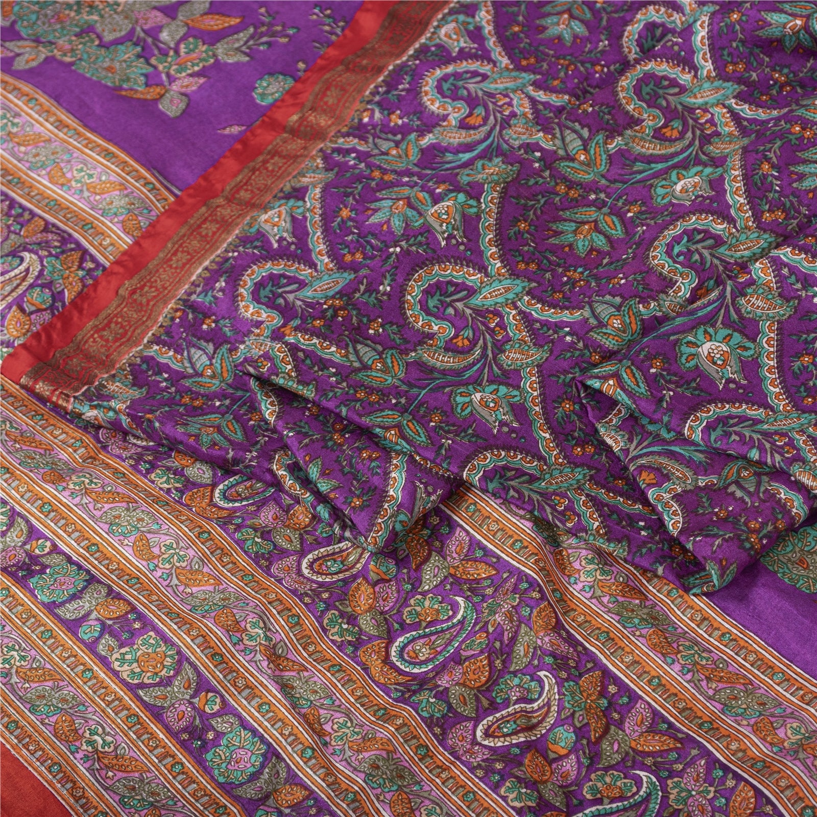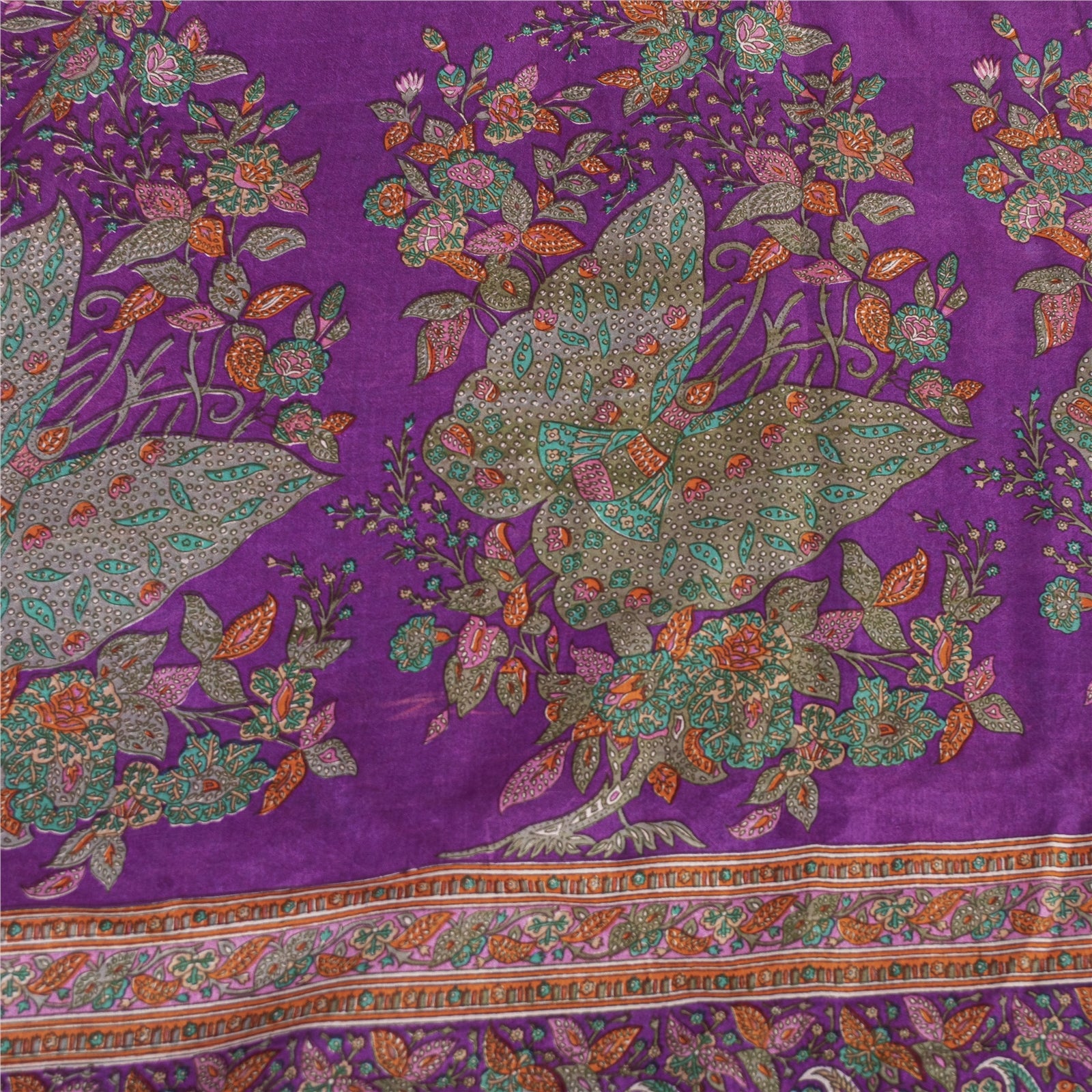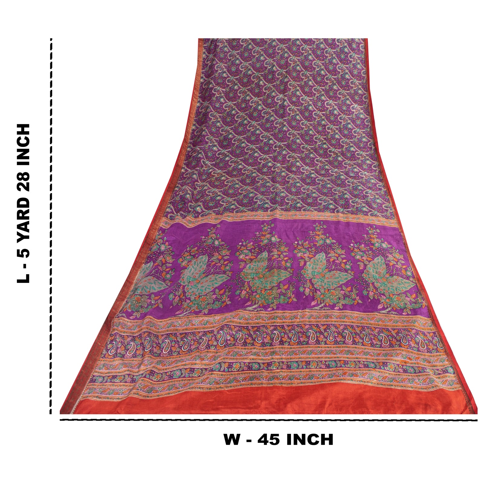 Sanskriti Vintage Sarees Purple Indian Pure Silk Printed Sari 5+yd Craft Fabric
