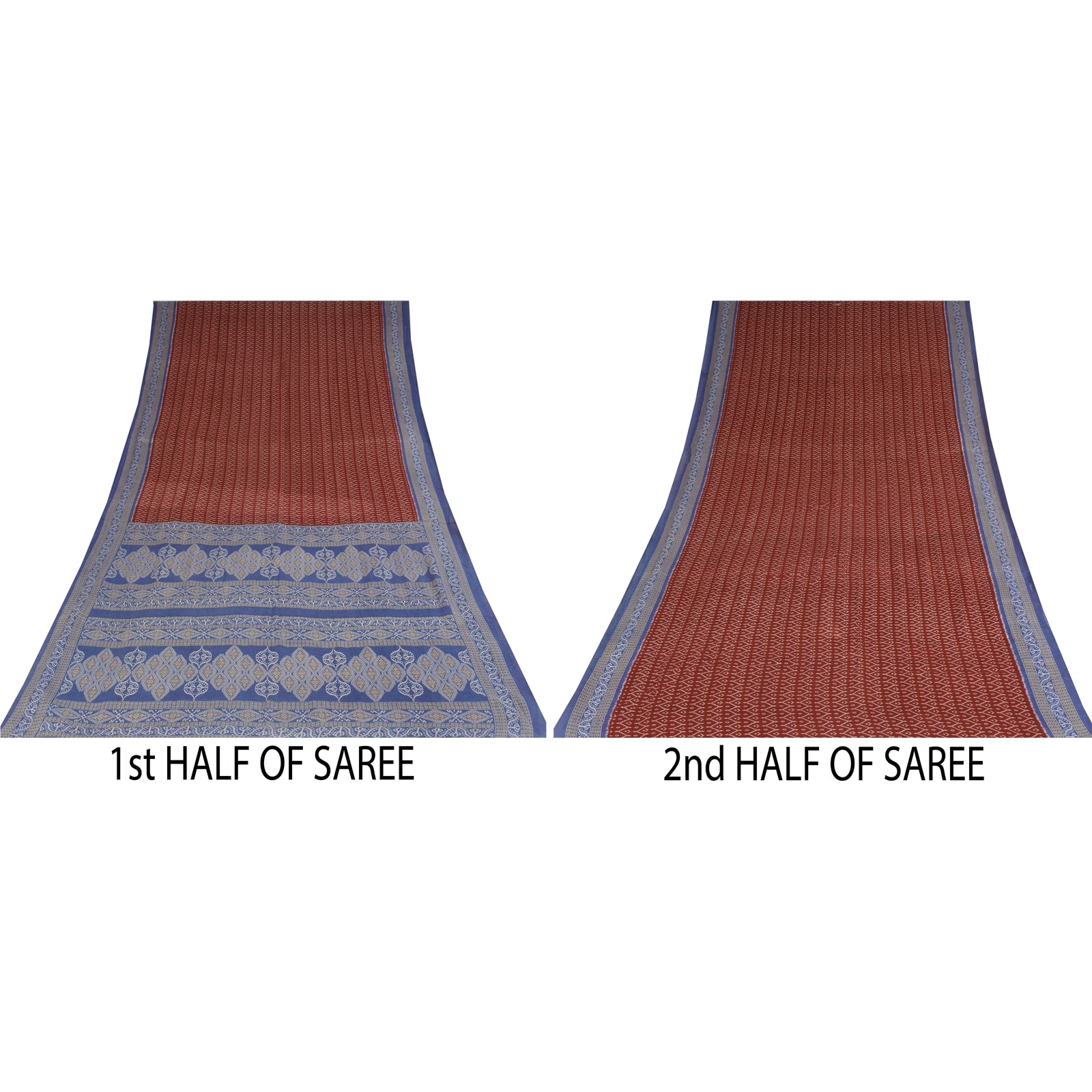 THE ITEM COLOR OR SHADE MAY BE DARKER OR LIGHTER THAN THE PICTURE. Attractive red colored pure cotton printed sari. Pallu & Border has printed floral design. Geometric design in center part of saree.. This unique vintage saree can be used for various crafting ideas even if you don't want to use it as a sari. Design a dress, use it as a as window dressing, upholstery, sarongs, throw, dress making and table linen much more. Let your creative juices flow and use this decorated Sustainable Fabric in multiple fashion. Shipping Note: 'International buyers please note: Import duties, taxes, and charges are not included in the item price or postage cost. These charges are the buyer's responsibility. Please check with your country's customs office to determine what these additional costs will be prior to bidding or buying. Buyer will pay custom duty/tax. It is calculated and charged differently by every country. As a seller I do not have any control over it. VAT or sales tax is calculated by the platform at the time of checkout. Customs charge is payable at the time of delivery.' PCS-6713