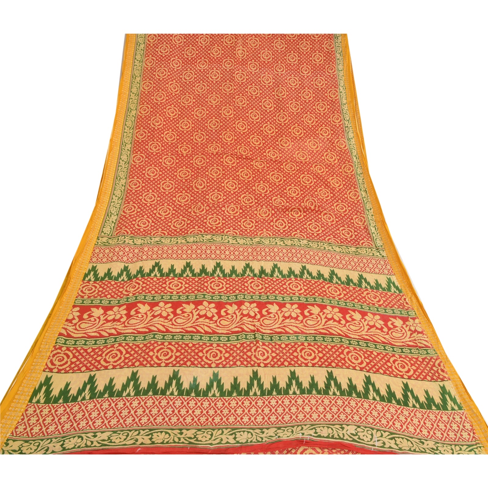 Sanskriti Vintage Sarees Red 100% Pure Cotton Printed Sari 5yd Soft Craft Sustainable Fabric