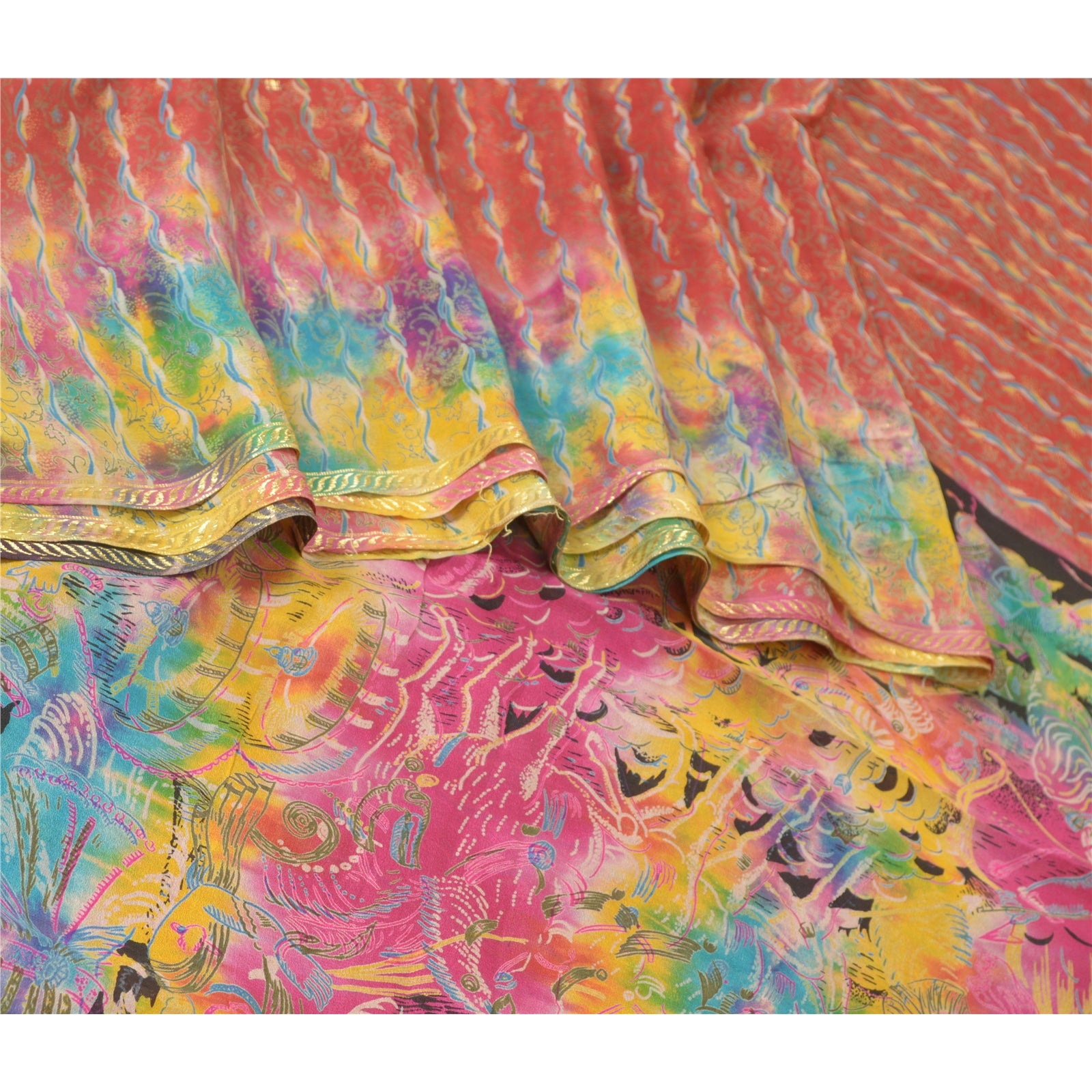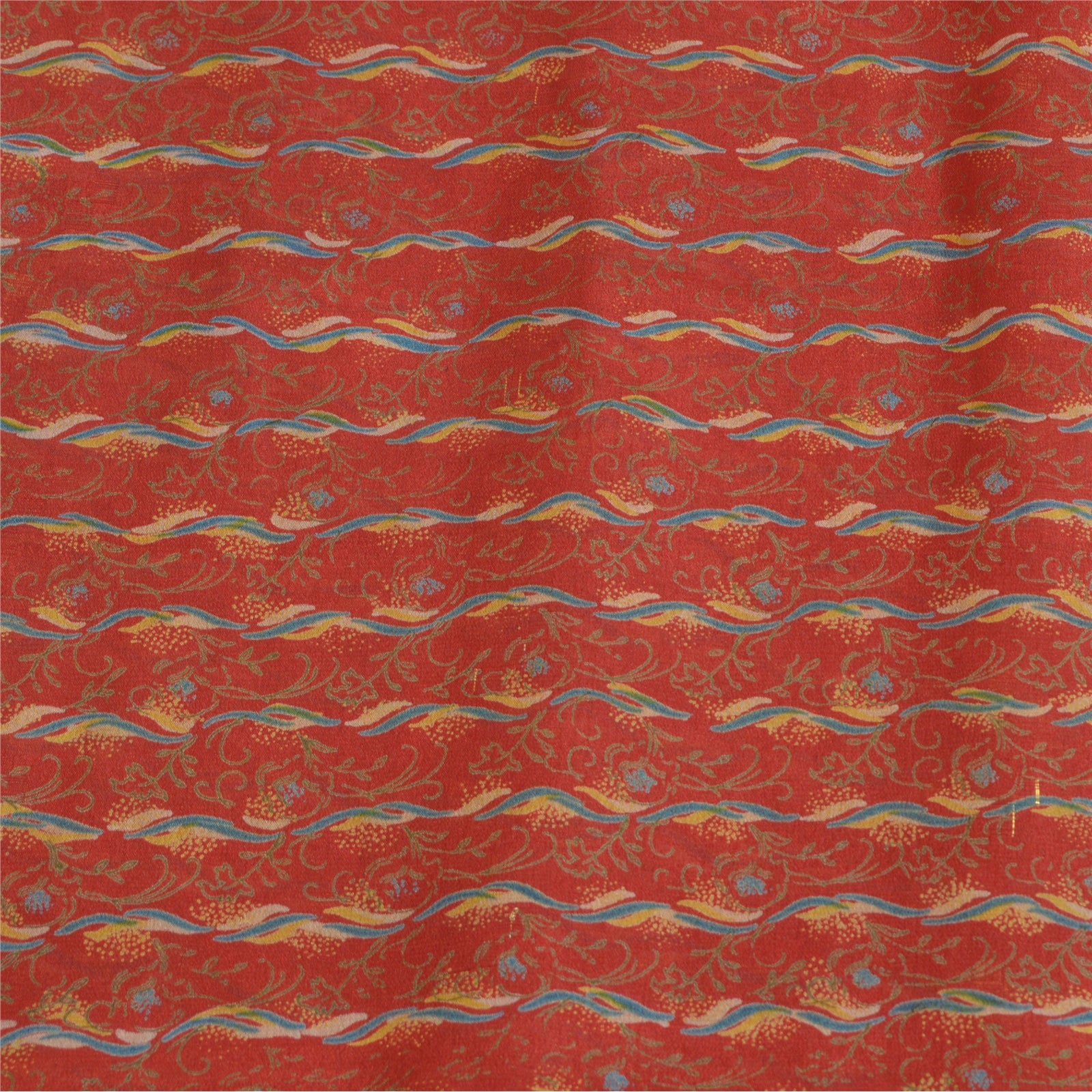 Sanskriti Vintage Sarees Red 100% Pure Silk Printed Woven Sari 5yd Craft Sustainable Fabric
