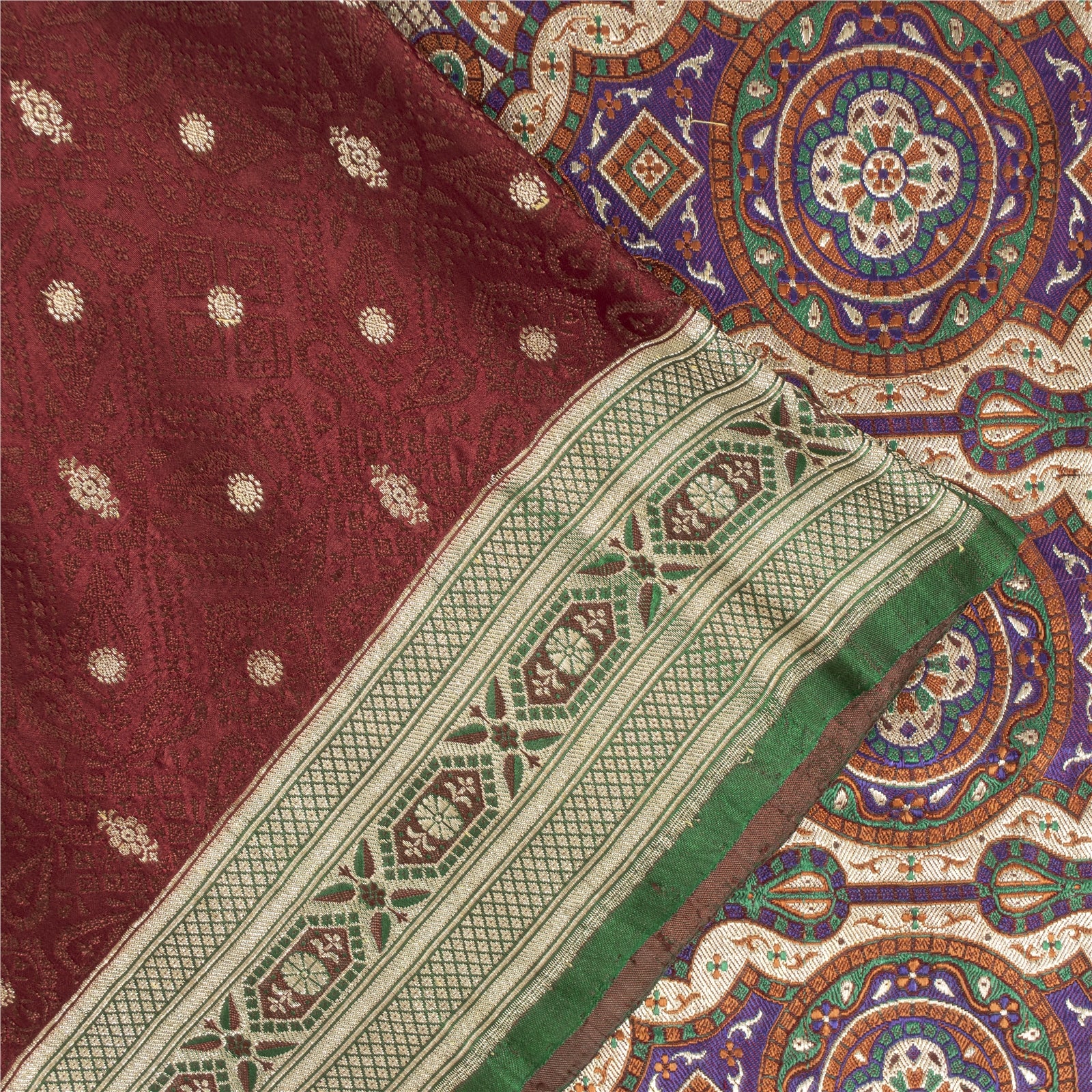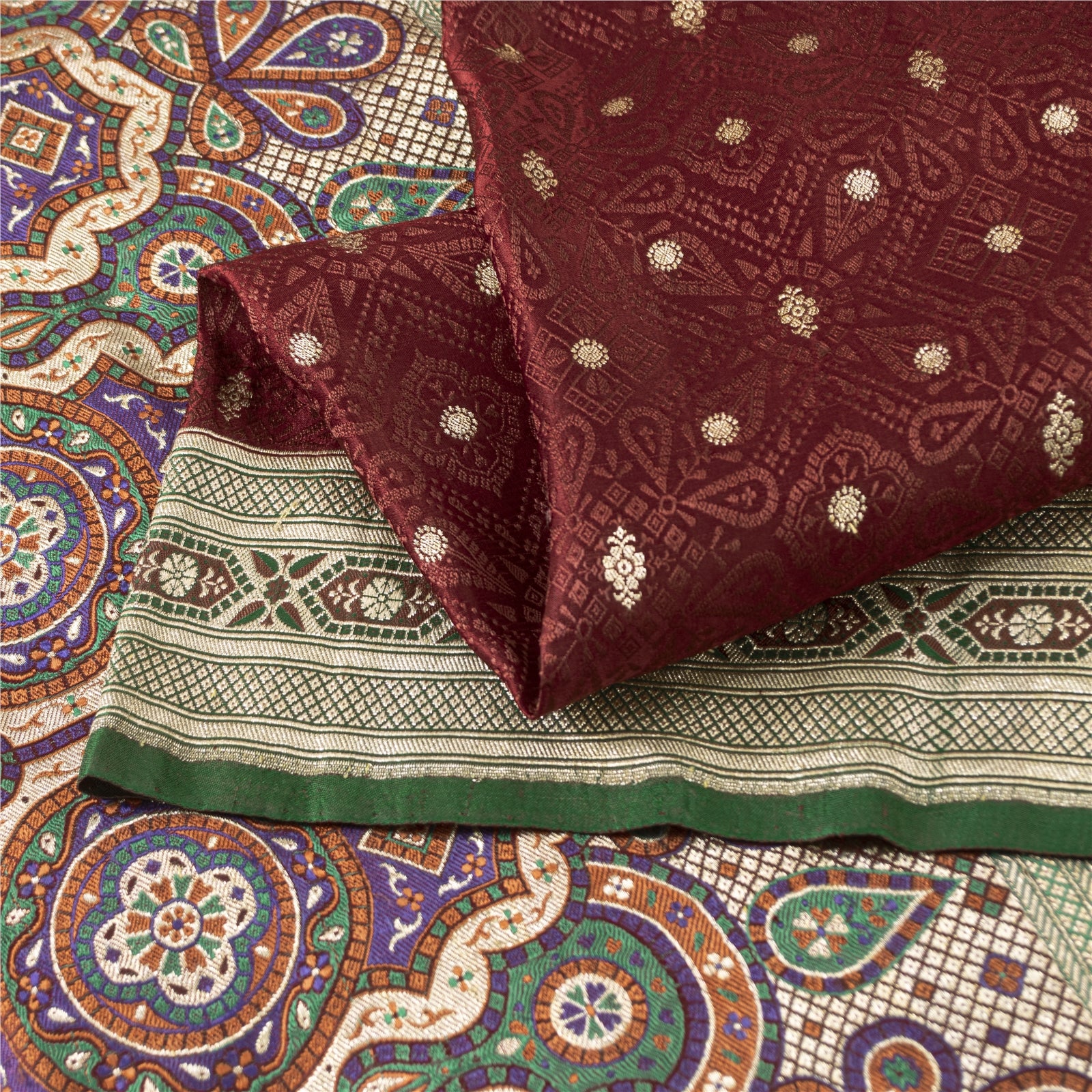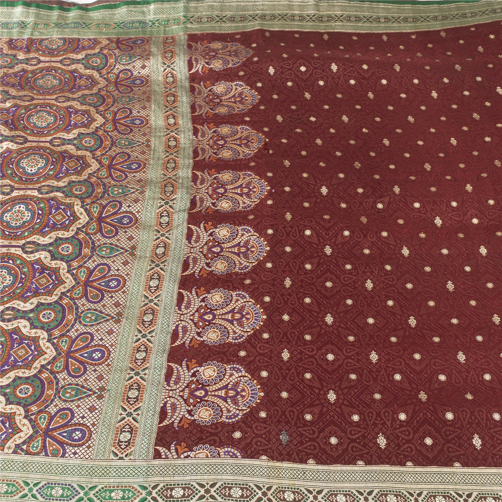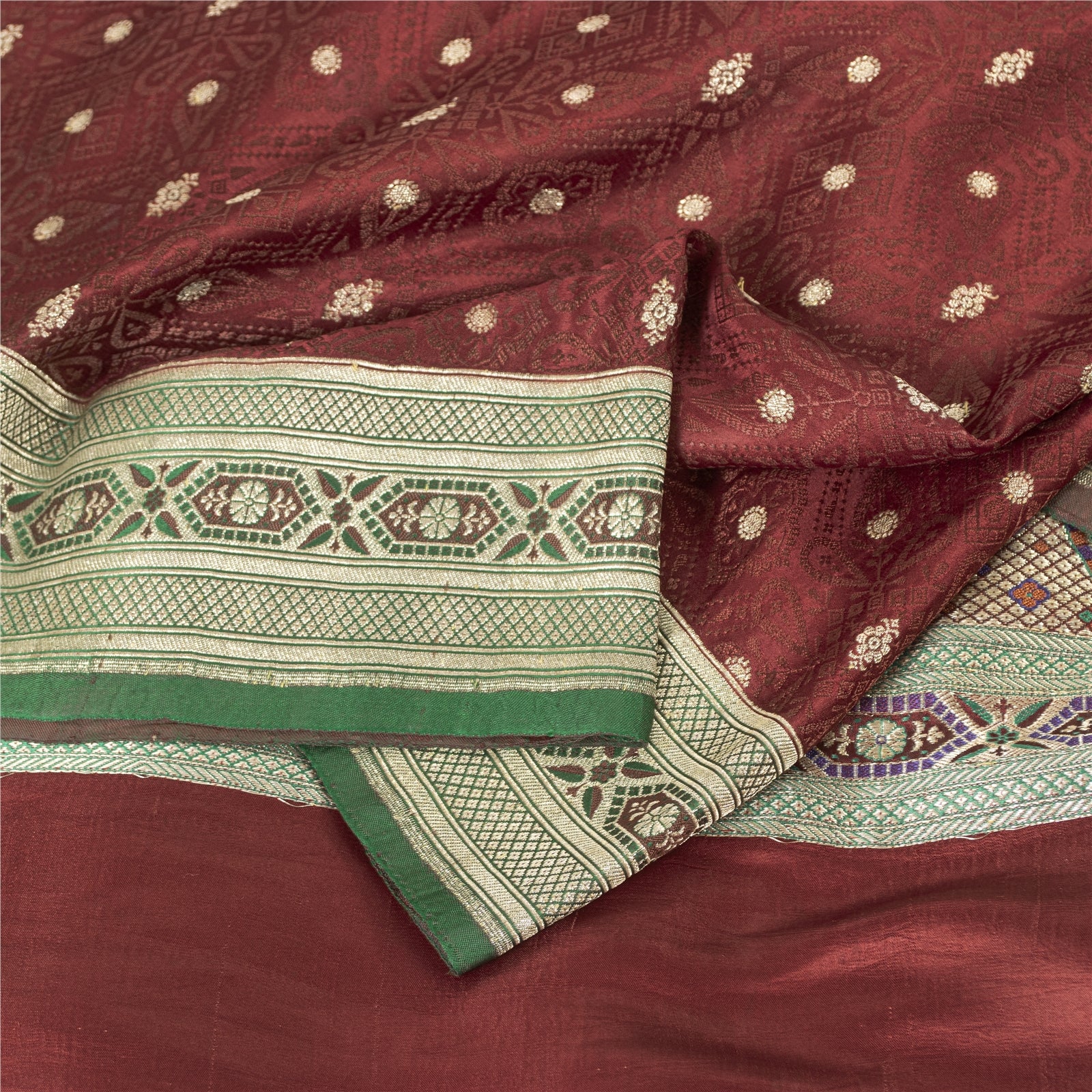 Sanskriti Vintage Sarees Red Banarasi Brocade Zari Woven Pure Silk Sari Fabric