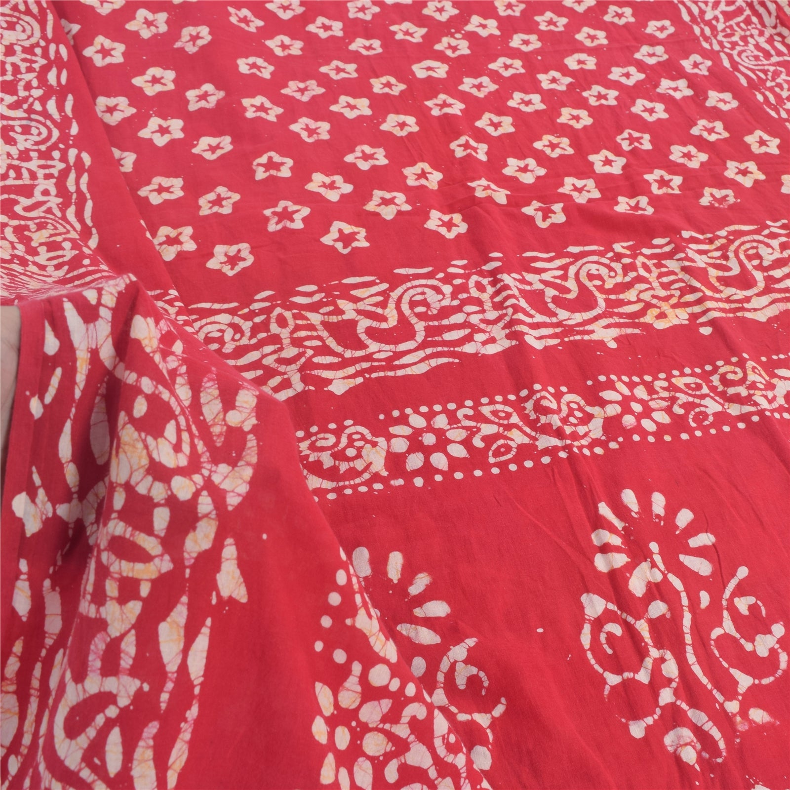 Sanskriti Vintage Sarees Red Floral Batik Work 100% Pure Cotton Sari 5yd Fabric