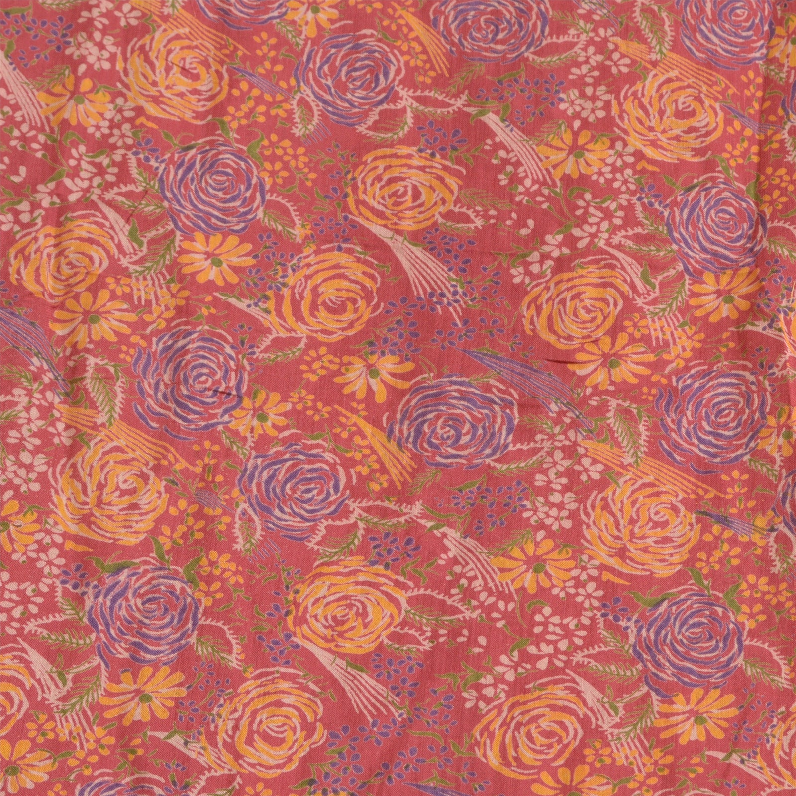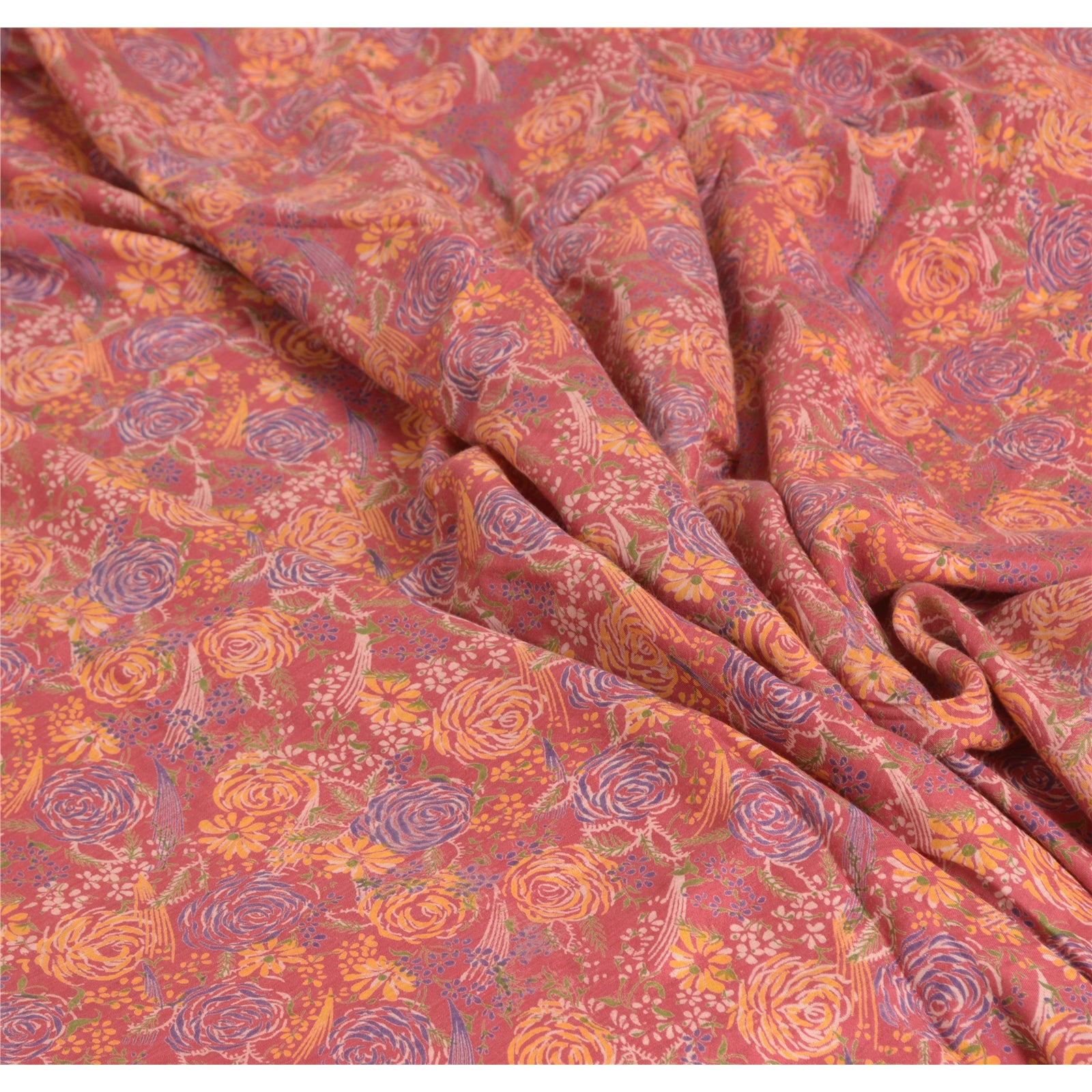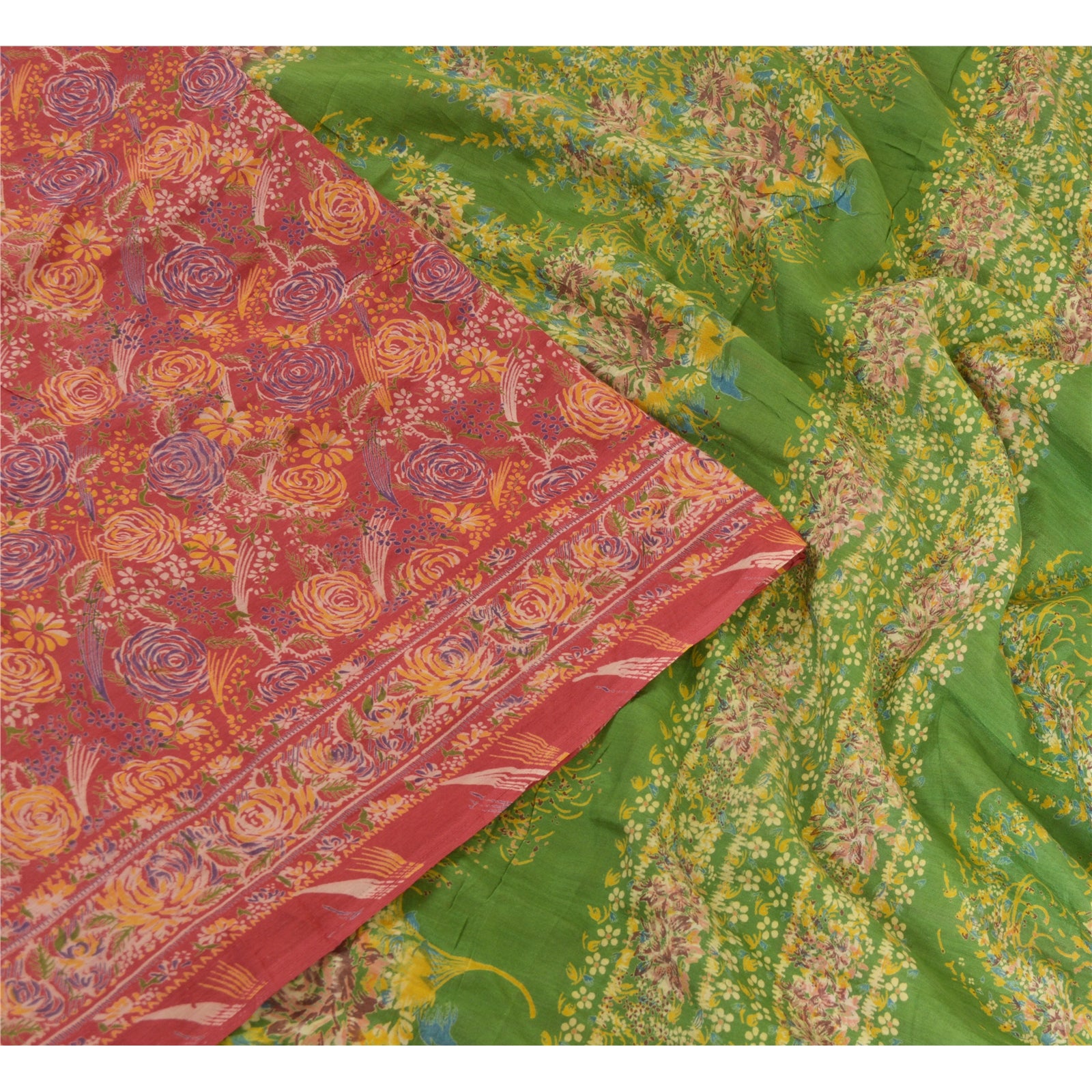 Sanskriti Vintage Sarees Red/Green 100% Pure Silk Printed Sari 5yd Craft Sustainable Fabric