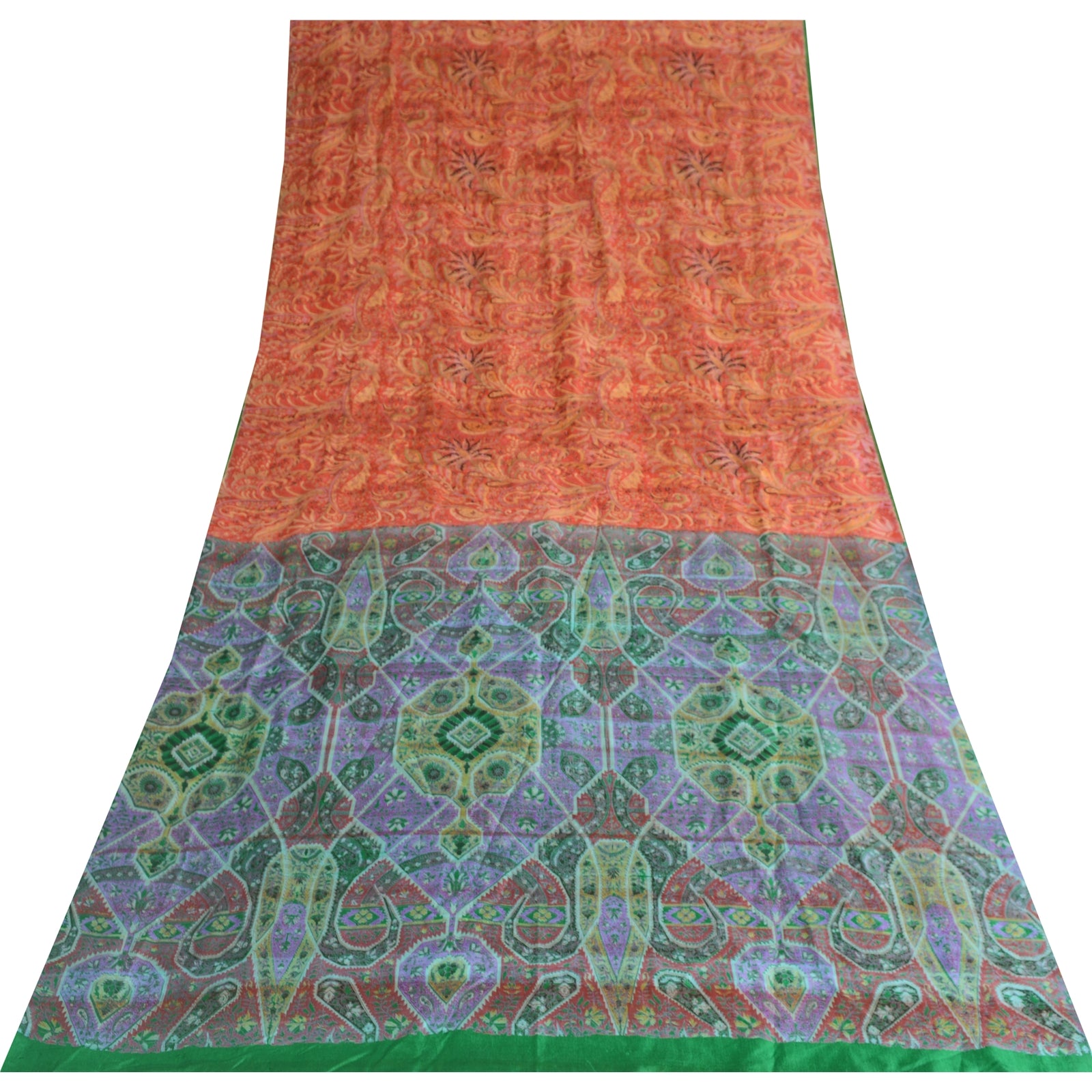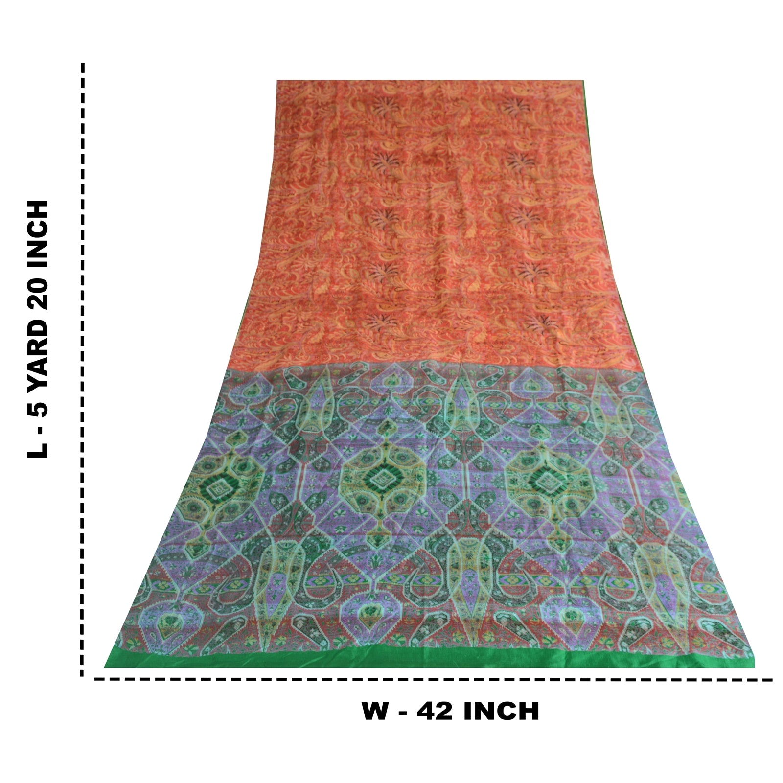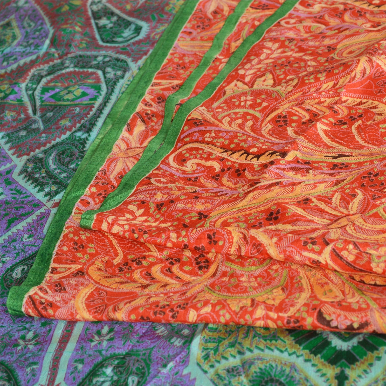 Sanskriti Vintage Sarees Red/Green 100% Pure Silk Printed Sari 5yd Craft Sustainable Fabric