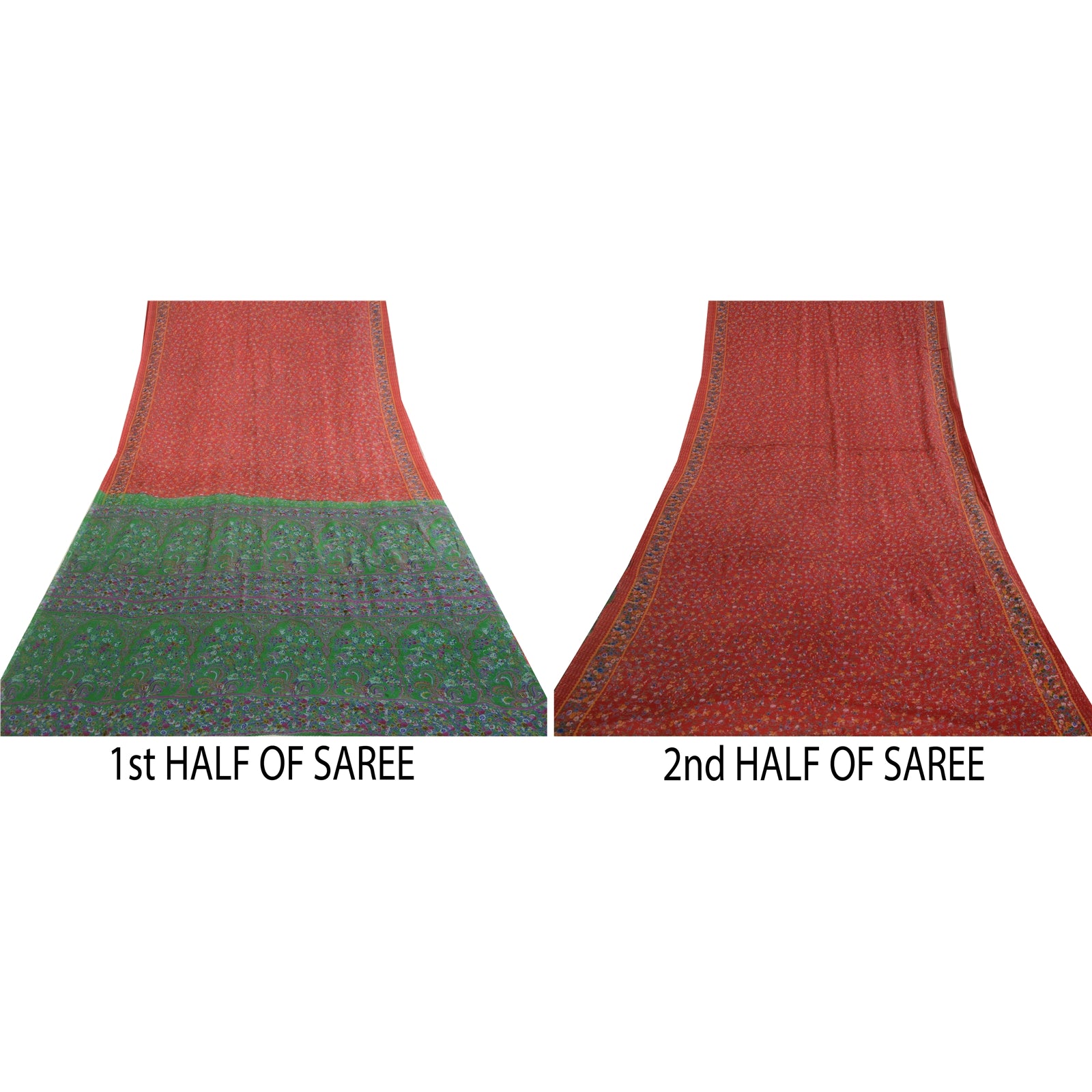 THE ITEM COLOR OR SHADE MAY BE DARKER OR LIGHTER THAN THE PICTURE.' Beautiful red & green colored pure silk printed saree. Pallu & Border has printed floral design. Similar design in center part of saree. Saree has mild stain on it. What is special about this saree? Fabulous design is really enhancing the beauty of the saree.This unique vintage saree can be used for various crafting ideas even if you don't want to use it as a sari. Design a dress, use it as window, dressing, upholstery, sarongs, throw, dress making and table linen much more. Let your creative juices flow and use this decorated Sustainable Fabric in multiple fashion. International buyers please note: Import duties, taxes, and charges are not included in the item price or postage cost. These charges are the buyer's responsibility. Please check with your country's customs office to determine what these additional costs will be prior to bidding or buying. Buyer will pay custom duty/tax. It is calculated and charged differently by every country. As a seller I do not have any control over it. VAT or sales tax is calculated by the platform at the time of checkout. Customs charge is payable at the time of delivery.'