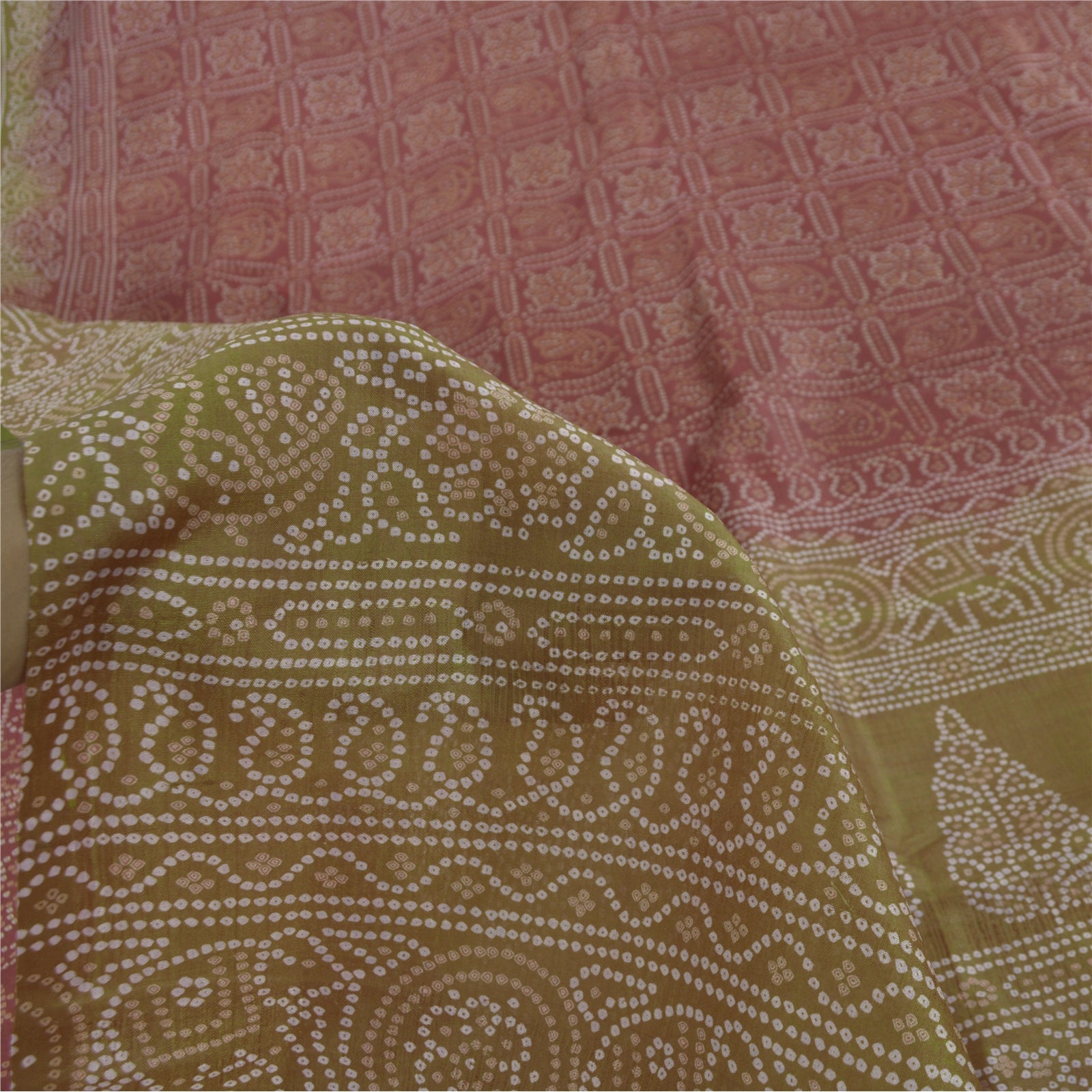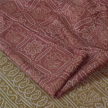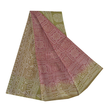 Sanskriti Vintage Sarees Red/Green Bandhani Pure Silk Printed Sari Craft Sustainable Fabric