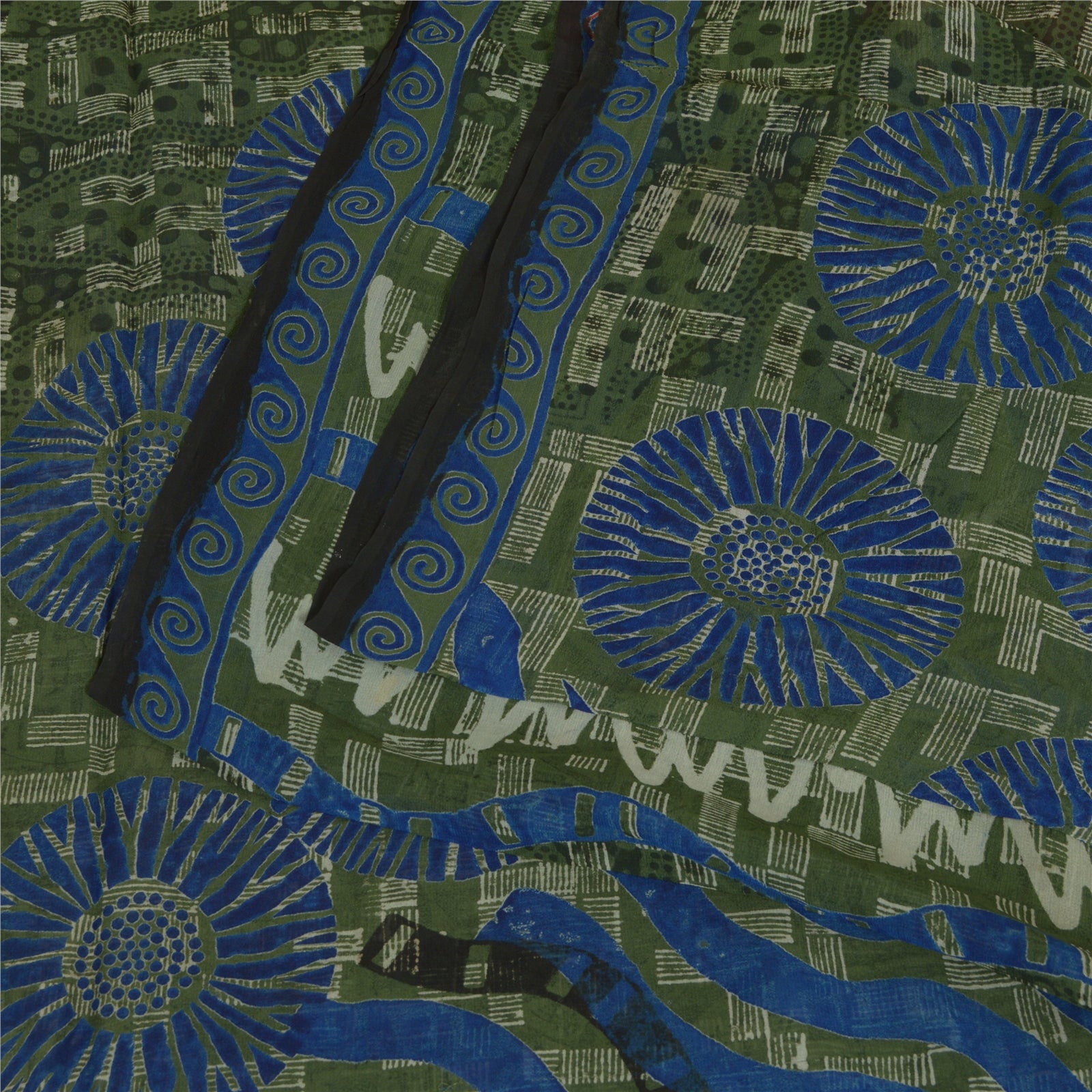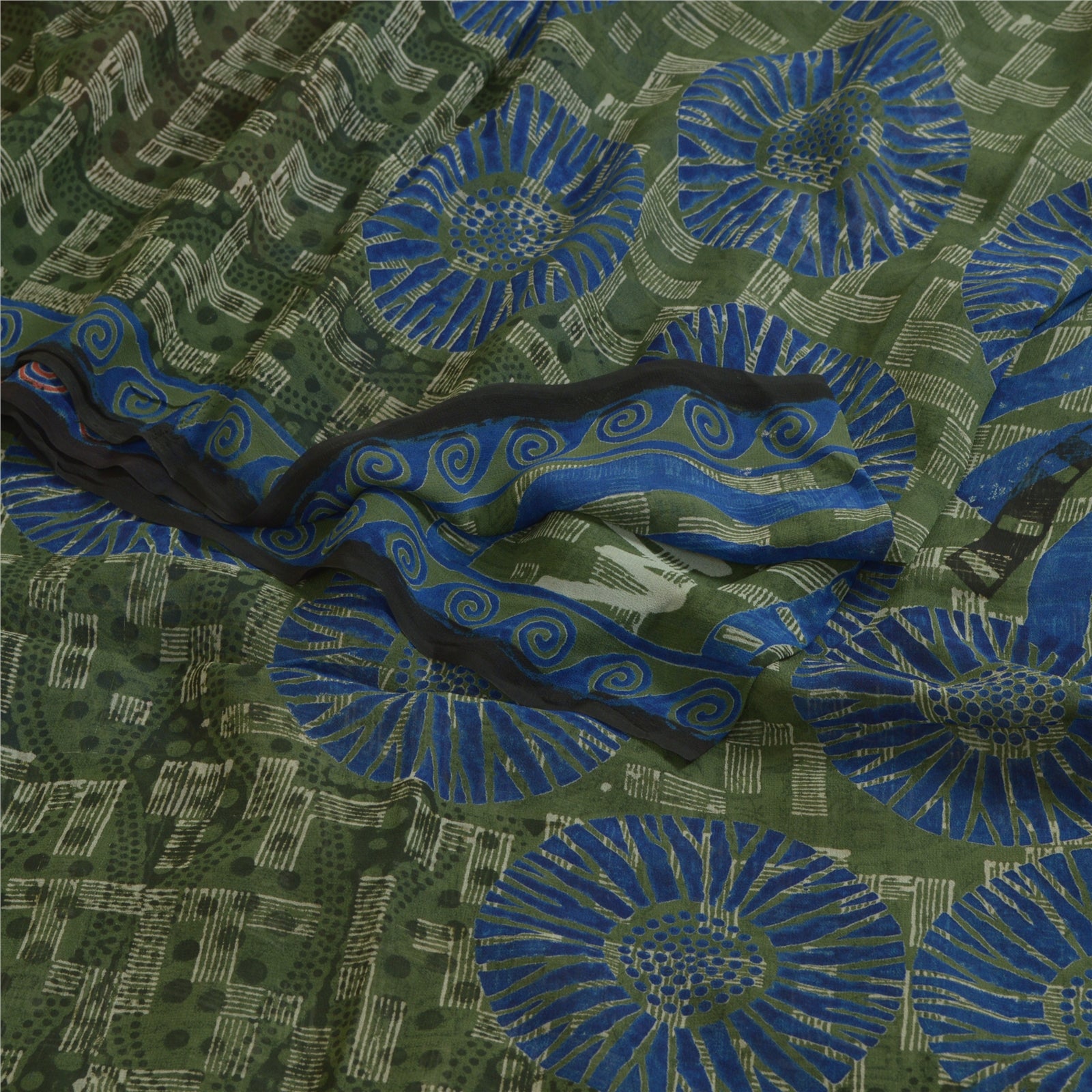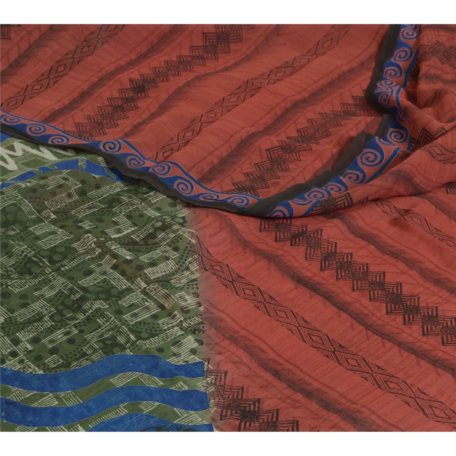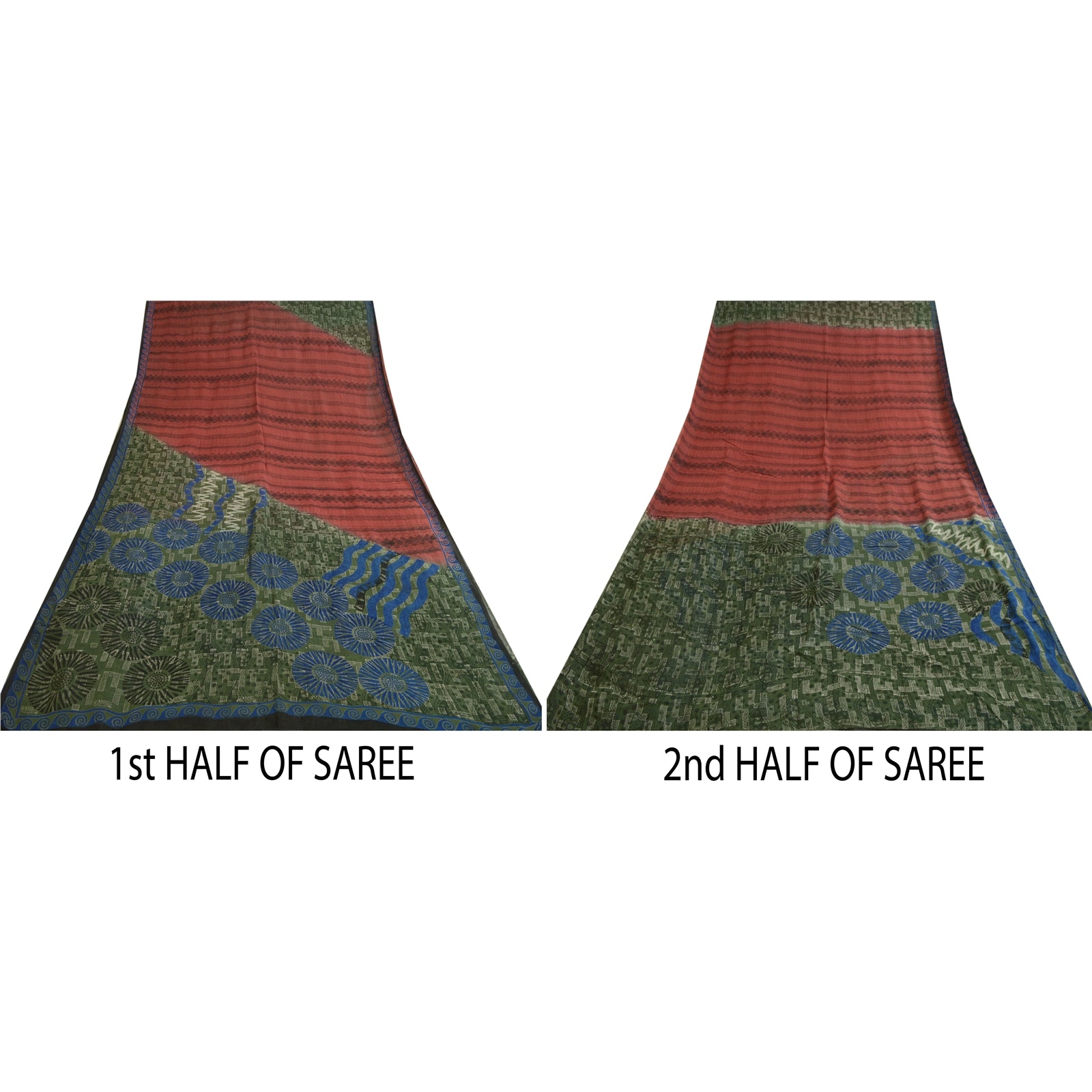 Sanskriti Vintage Sarees Red/Green Pure Georgette Silk Printed Sari Craft Sustainable Fabric