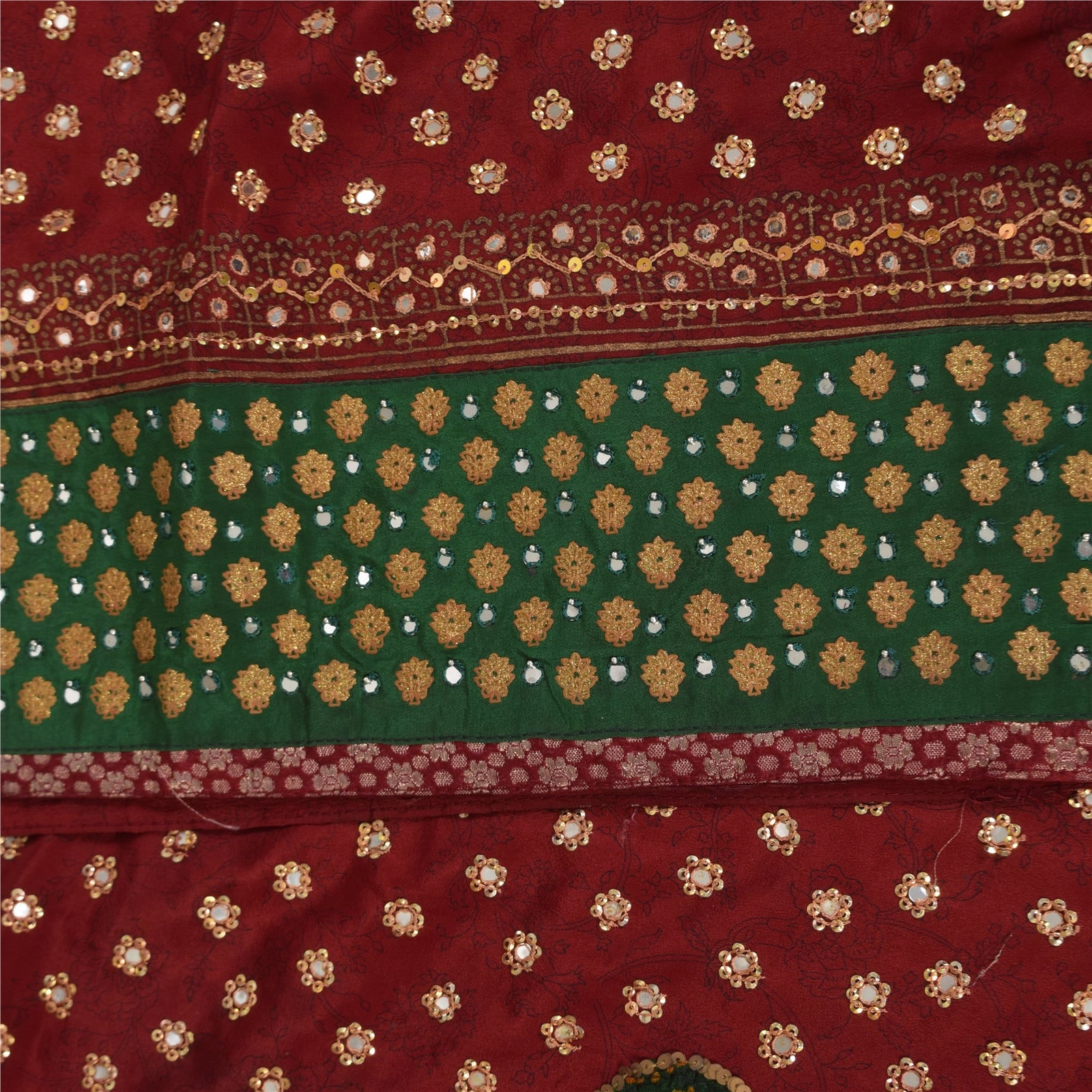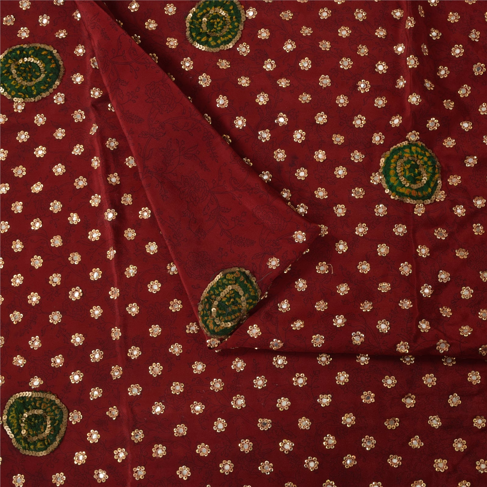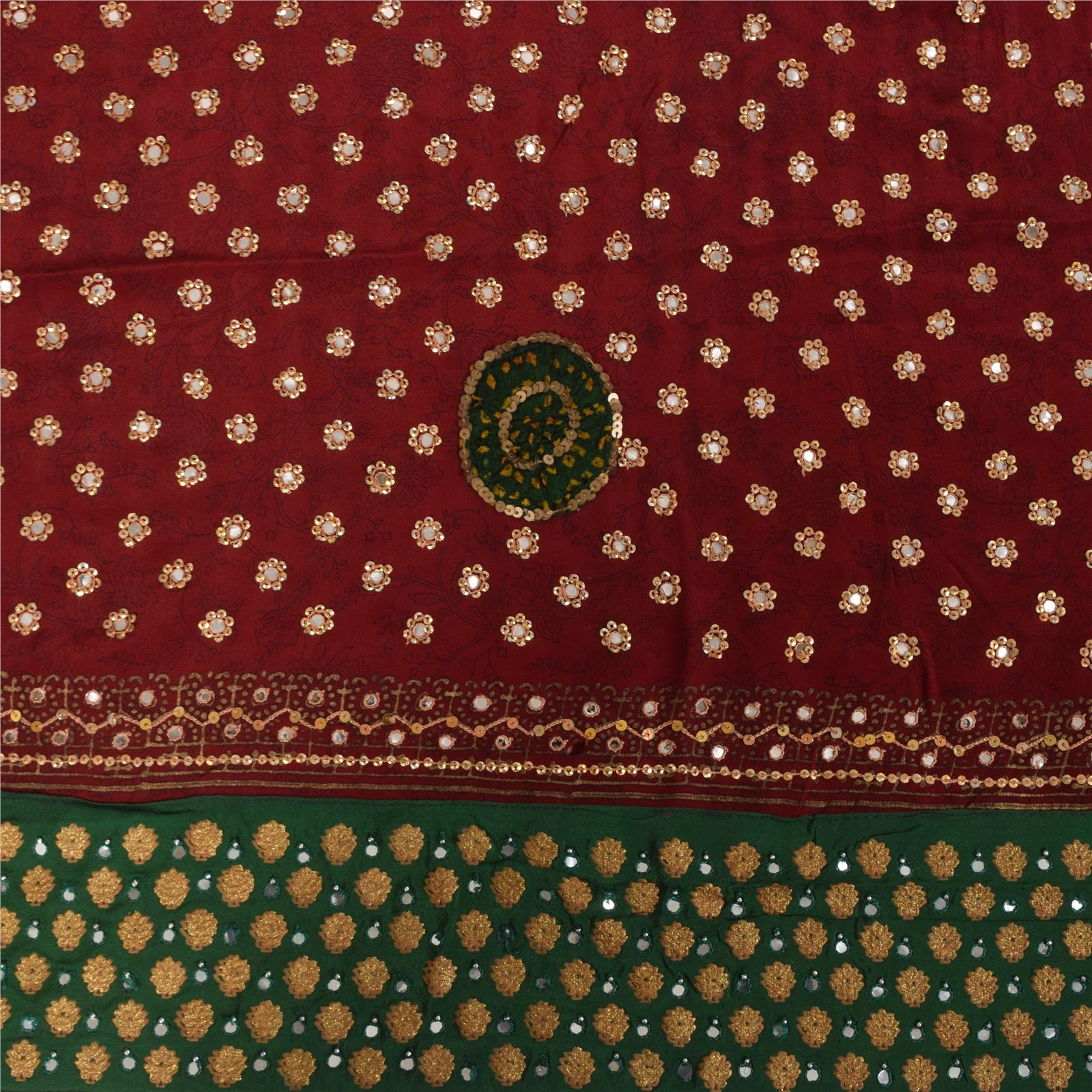 Sanskriti Vintage Sarees Red Hand Beaded Pure Crepe Print Sari 5+yd Craft Fabric