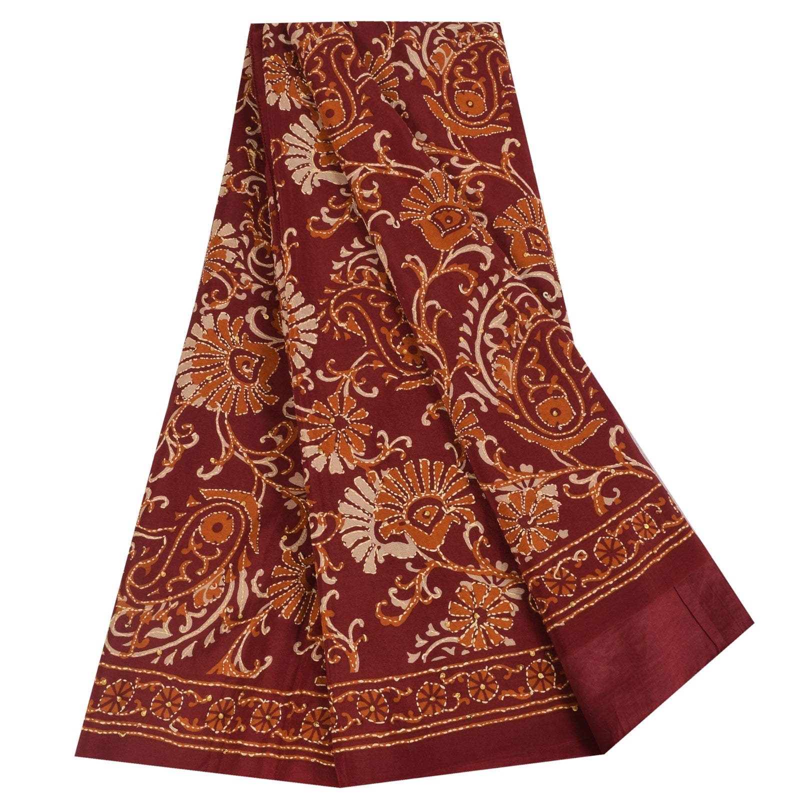 THE ITEM COLOR OR SHADE MAY BE DARKER OR LIGHTER THAN THE PICTURE.' • Beautiful dark red colored hand embroidered kantha & printed pure crepe silk saree . • Pallu & Border has printed floral design with thread & sequins work. • Similar work in center part of sari . This unique vintage saree can be used for various crafting ideas even if you don't want to use it as a sari. Design a dress, use it as a as window dressing, upholstery, sarongs, throw, dress making and table linen much more. Let your creative juices flow and use this decorated Sustainable Fabric in multiple fashion. International buyers please note: Import duties, taxes, and charges are not included in the item price or postage cost. These charges are the buyer's responsibility. Please check with your country's customs office to determine what these additional costs will be prior to bidding or buying.Buyer will pay custom duty/tax. It is calculated and charged differently by every country. As a seller I do not have any control over it. VAT or sales tax is calculated by the platform at the time of checkout. Customs charge is payable at the time of delivery. PRC-23265