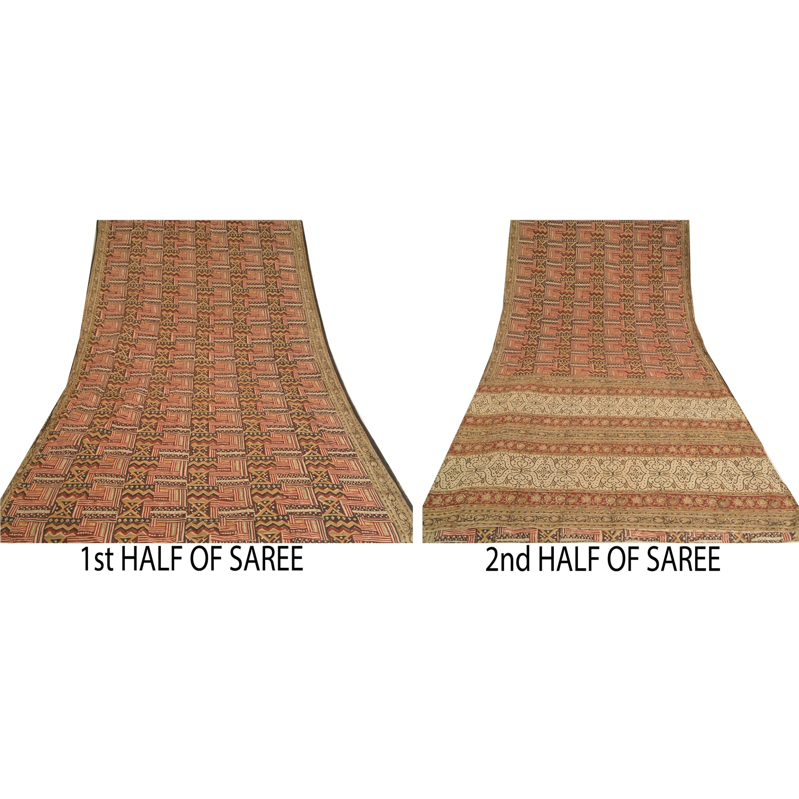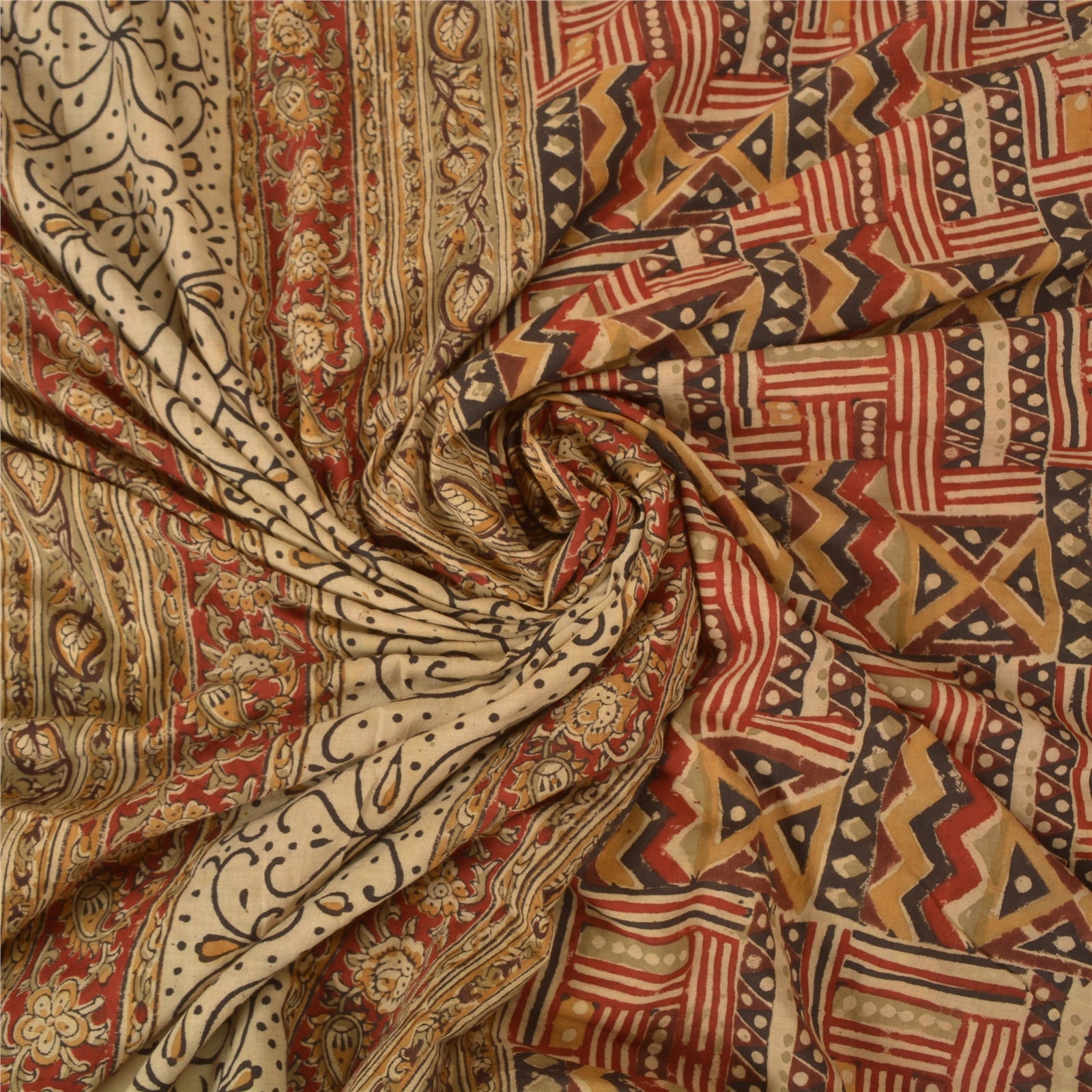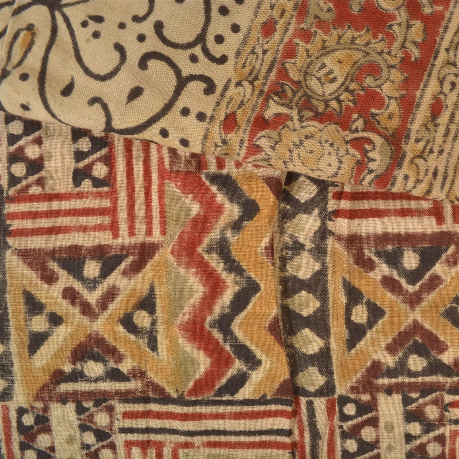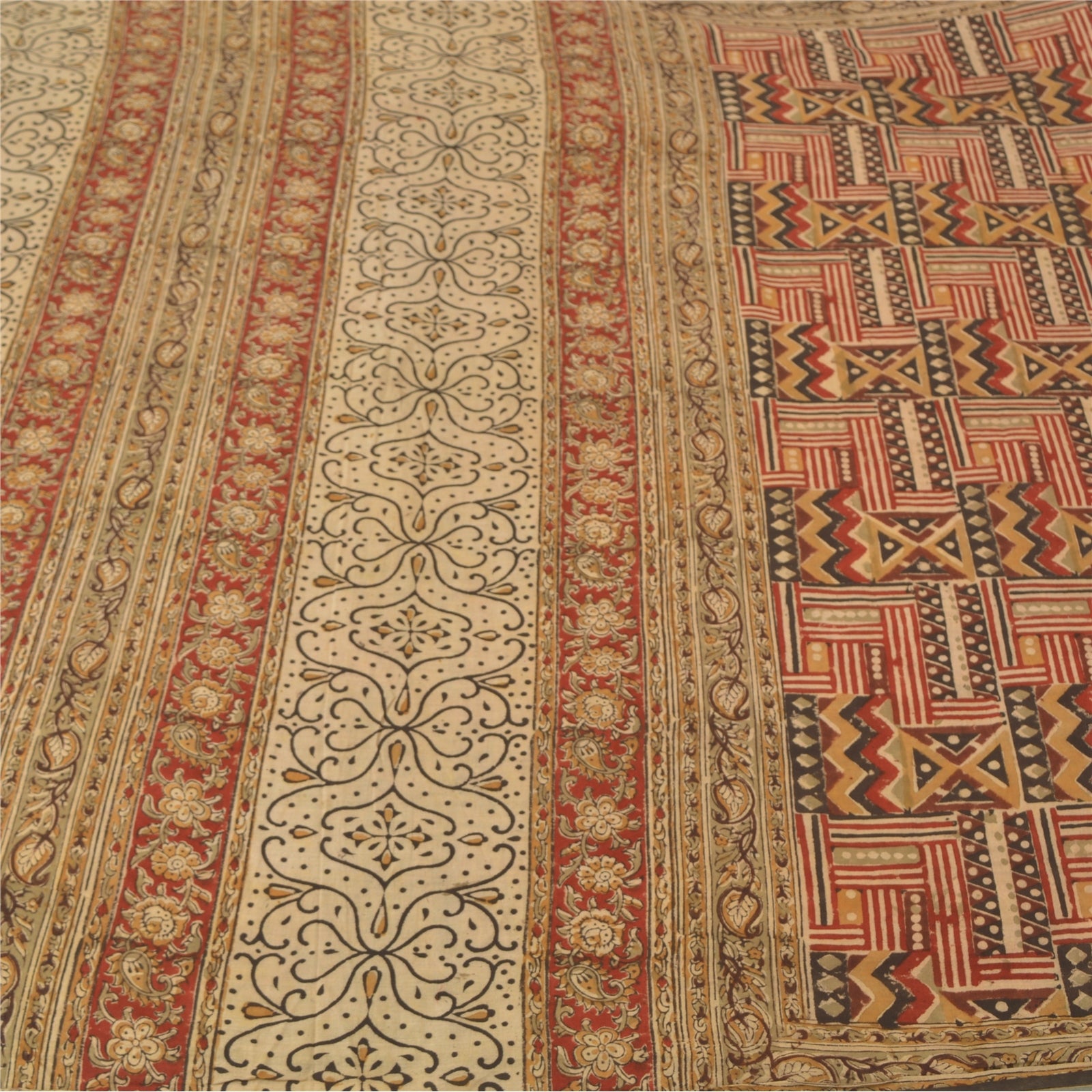 Sanskriti Vintage Sarees Red Hand Block Kalamkari Pure Cotton Sari Craft Sustainable Fabric