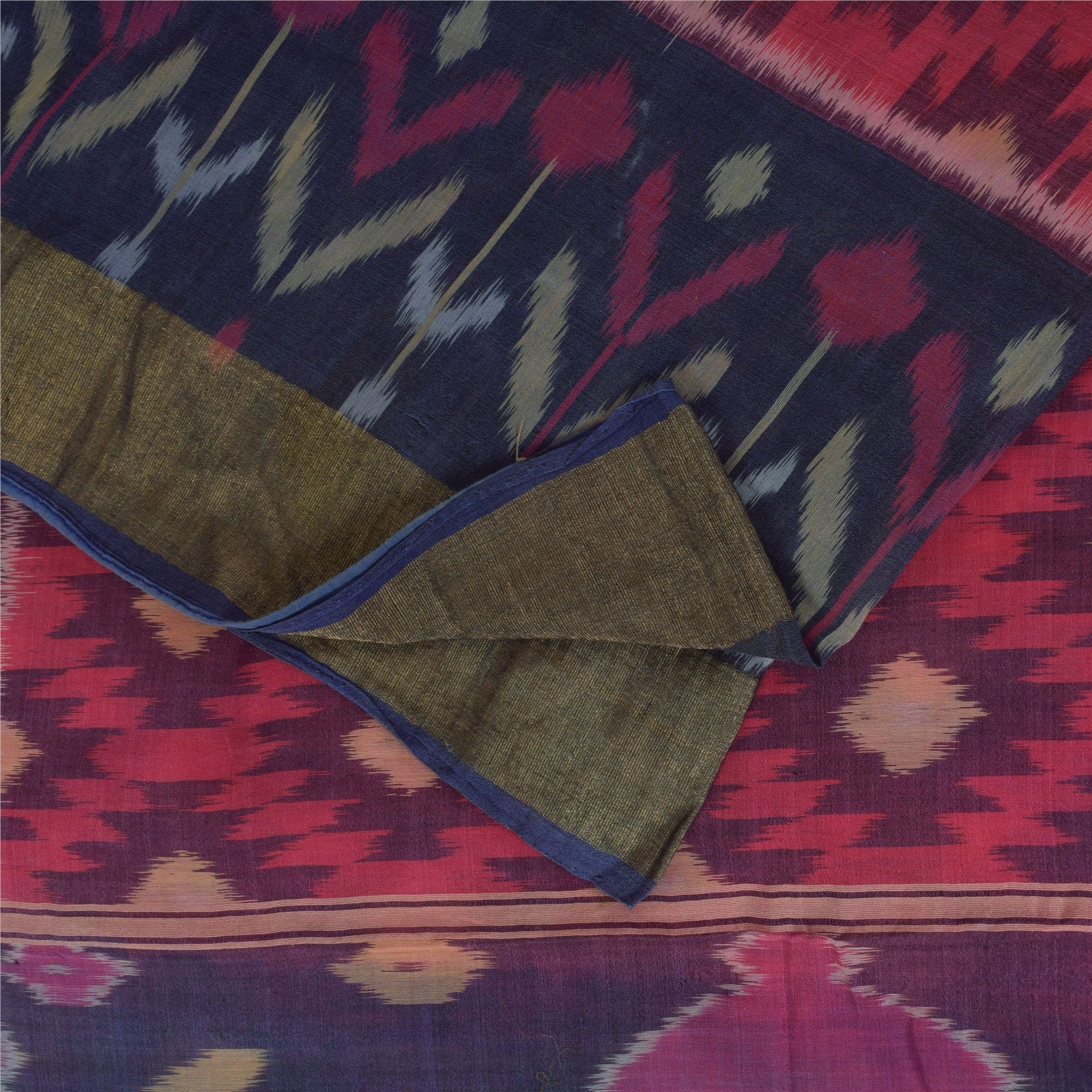 Sanskriti Vintage Sarees Red Ikat Handwoven Sambhalpuri Pure Silk Sari Fabric