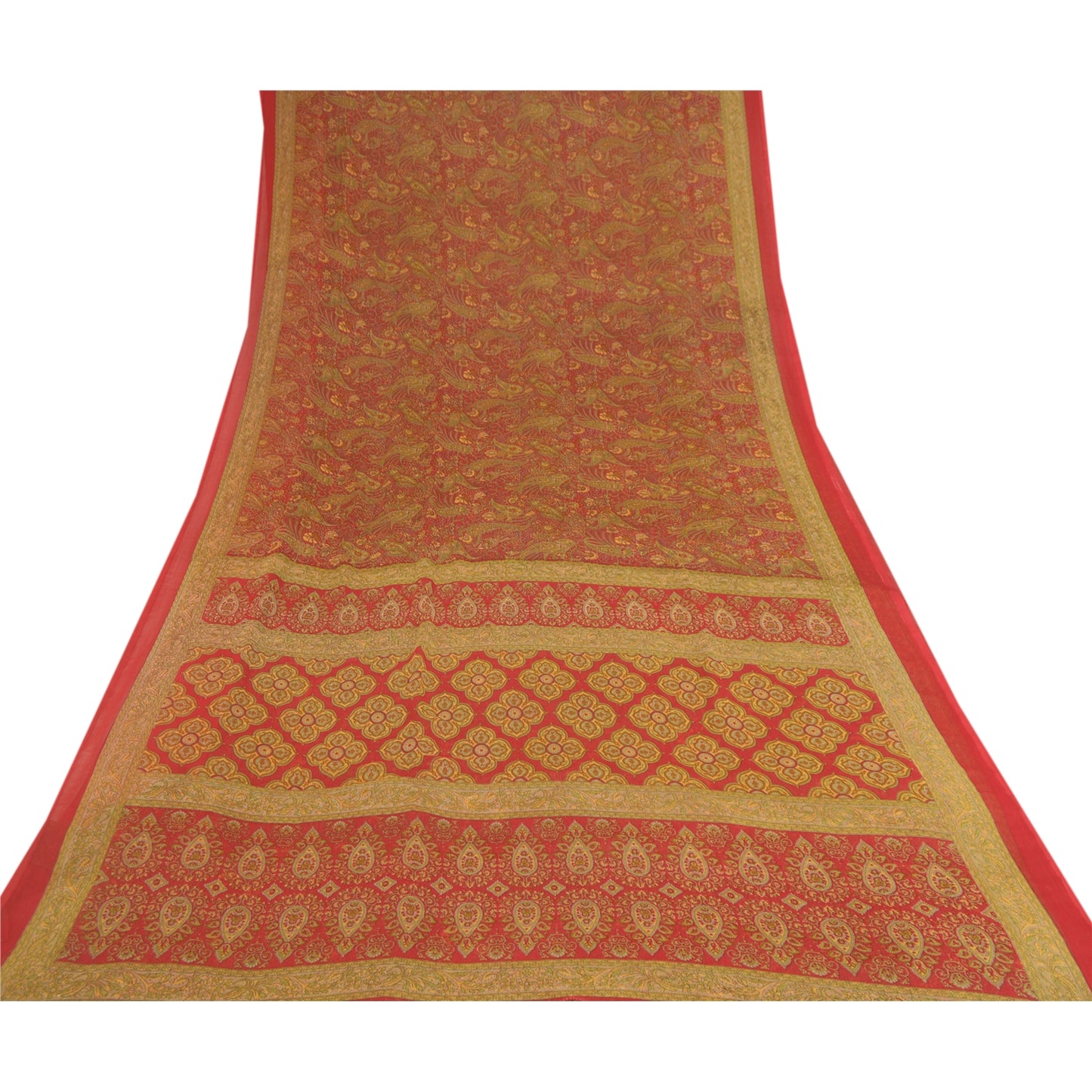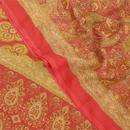 Sanskriti Vintage Sarees Red Indian Georgette Printed Sari Soft 5yd Craft Sustainable Fabric