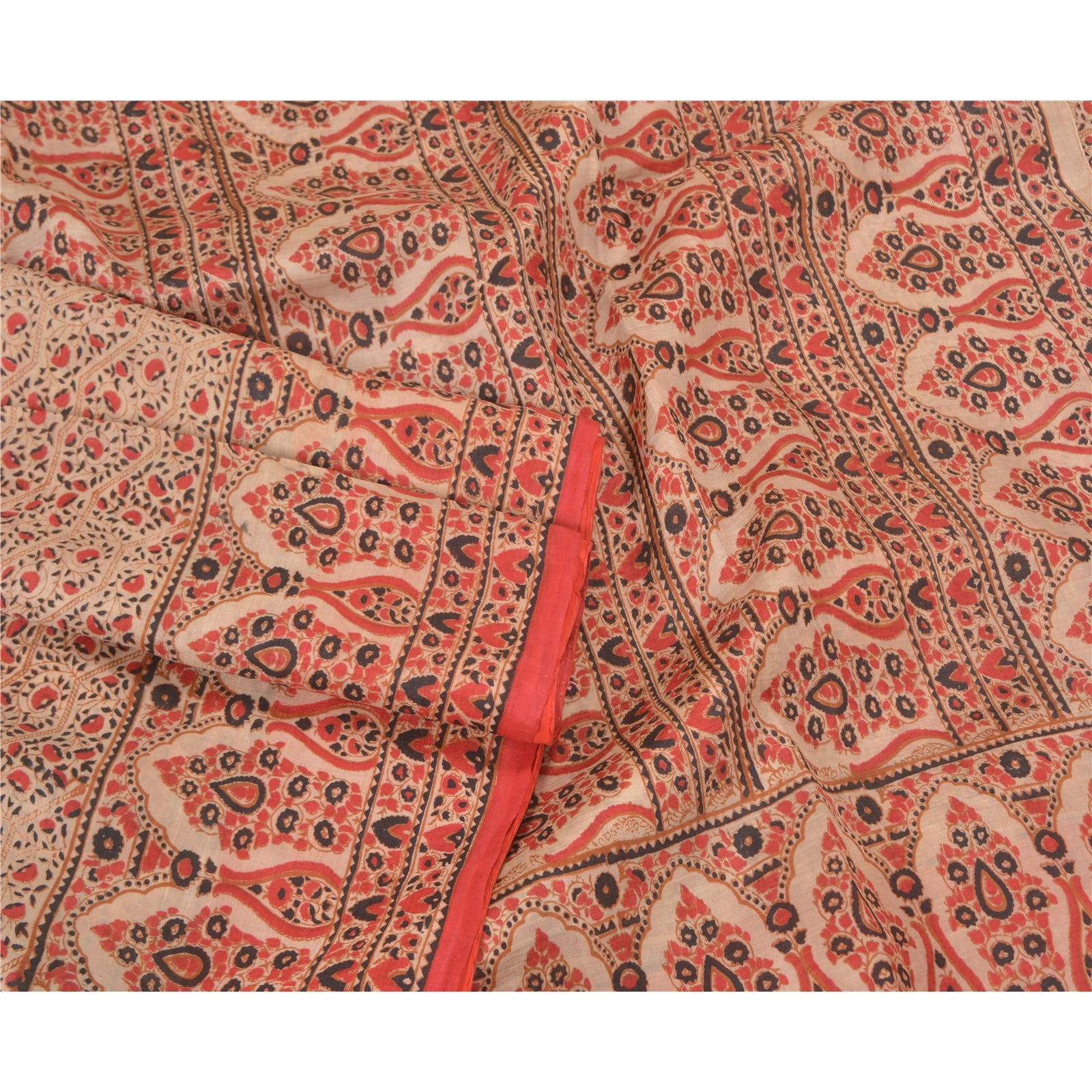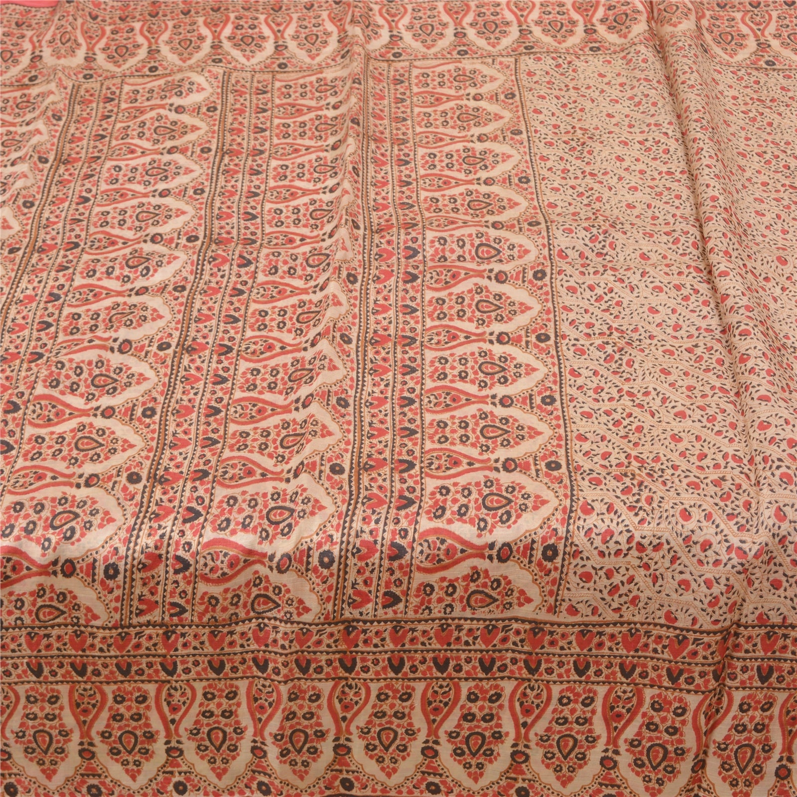 Sanskriti Vintage Sarees Red Indian Printed Pure Silk Sari Soft 5yd Craft Sustainable Fabric