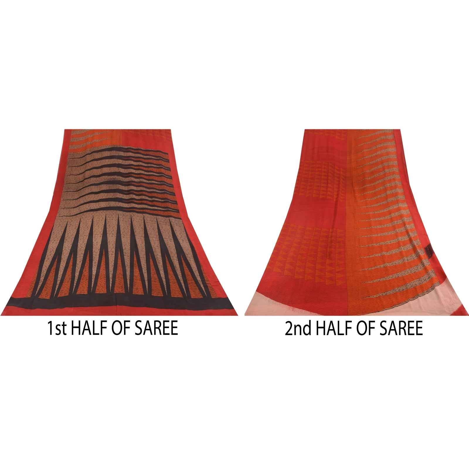 'THE ITEM COLOR OR SHADE MAY BE DARKER OR LIGHTER THAN THE PICTURE.' Beautiful red & orange colored pure georgette silk printed saree. Pallu & Border has printed geometric design. Similar design in center part of saree. What is special about this saree? Brilliant design on soft Sustainable Fabric is really enhancing the beauty of the saree. This unique vintage saree can be used for various crafting ideas even if you don't want to use it as a sari. Design a dress, use it as a as window dressing, upholstery, sarongs, throw, dress making and table linen much more. Let your creative juices flow and use this decorated Sustainable Fabric in multiple fashion. International buyers please note: Import duties, taxes, and charges are not included in the item price or postage cost. These charges are the buyer's responsibility. Please check with your country's customs office to determine what these additional costs will be prior to bidding or buying.Buyer will pay custom duty/tax. It is calculated and charged differently by every country. As a seller I do not have any control over it. VAT or sales tax is calculated by the platform at the time of checkout. Customs charge is payable at the time of delivery. PRG-14604