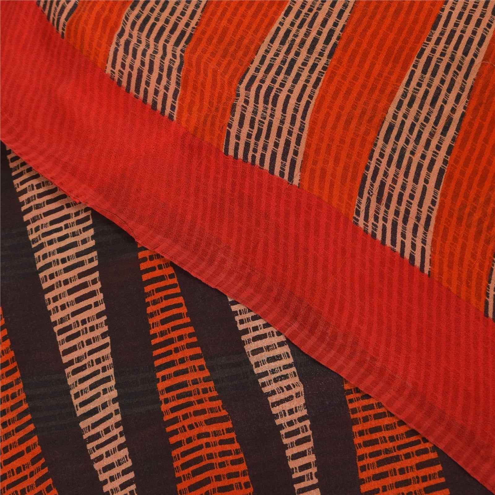 Sanskriti Vintage Sarees Red & Orange Pure Georgette Silk Print Sari 6yd Sustainable Fabric