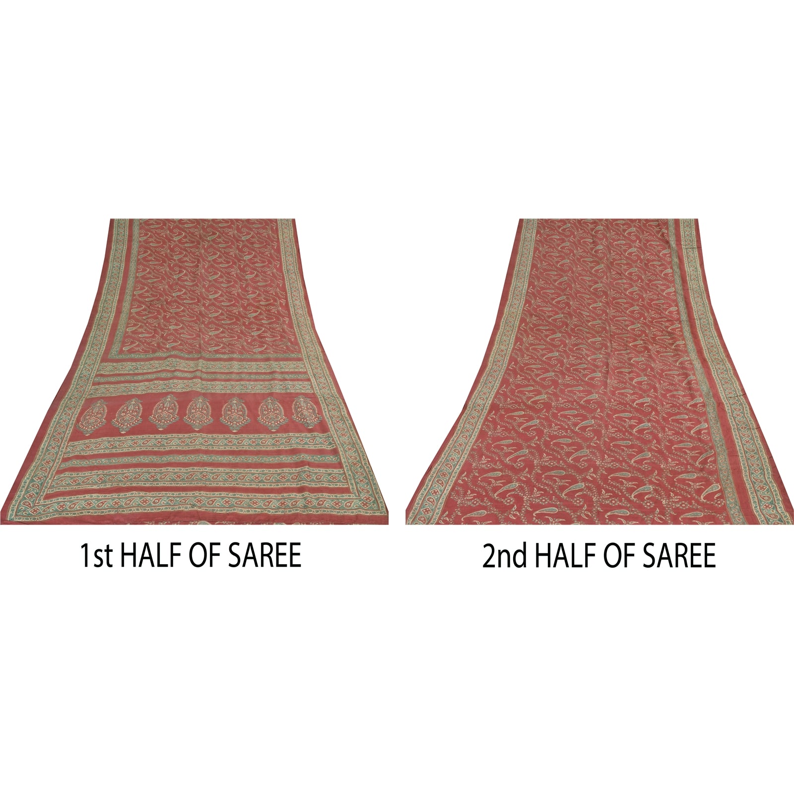 THE ITEM COLOR OR SHADE MAY BE DARKER OR LIGHTER THAN THE PICTURE.' • Beautiful red colored printed pure silk saree . • Pallu & Border has printed floral & paisley design. • Similar design in center part of sari . This unique vintage saree can be used for various crafting ideas even if you don't want to use it as a sari. Design a dress, use it as a as window dressing, upholstery, sarongs, throw, dress making and table linen much more. Let your creative juices flow and use this decorated fabric in multiple fashion. International buyers please note: Import duties, taxes, and charges are not included in the item price or postage cost. These charges are the buyer's responsibility. Please check with your country's customs office to determine what these additional costs will be prior to bidding or buying.Buyer will pay custom duty/tax. It is calculated and charged differently by every country. As a seller I do not have any control over it. VAT or sales tax is calculated by the platform at the time of checkout. Customs charge is payable at the time of delivery. PR-69123