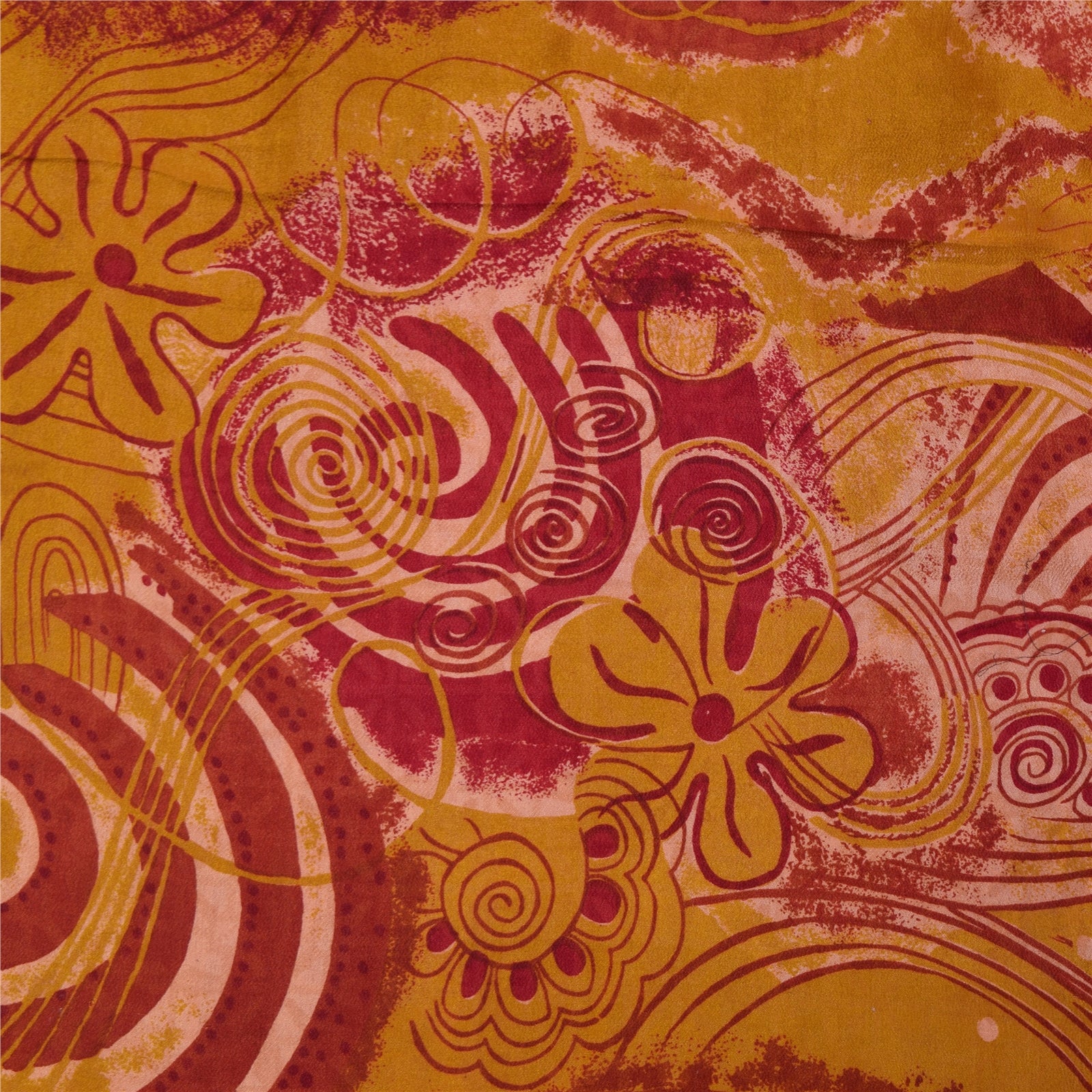 Sanskriti Vintage Sarees Red & Yellow Pure Crepe Printed Sari 5+yd Craft Sustainable Fabric
