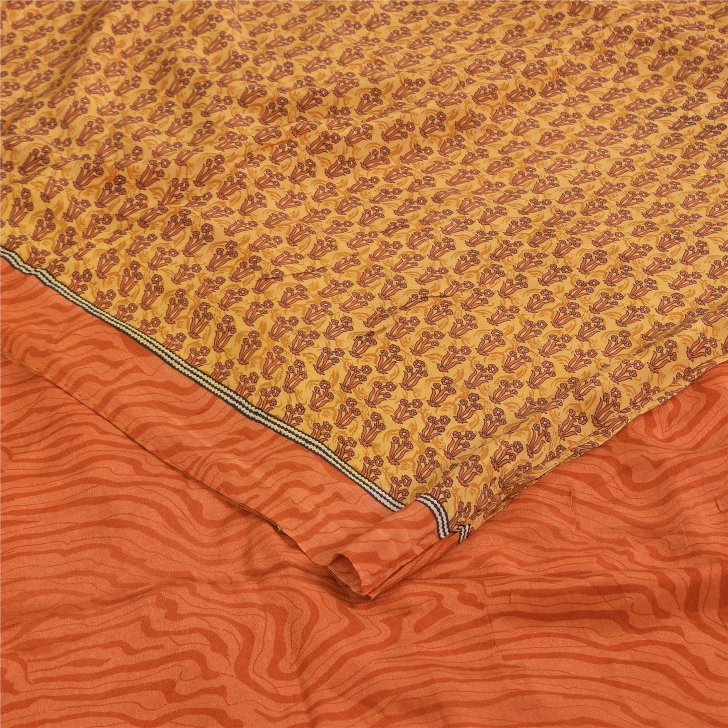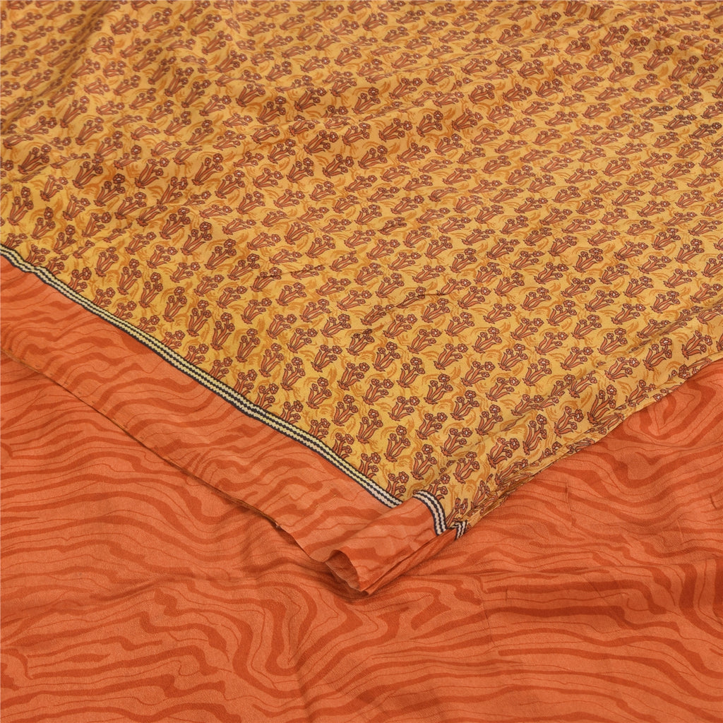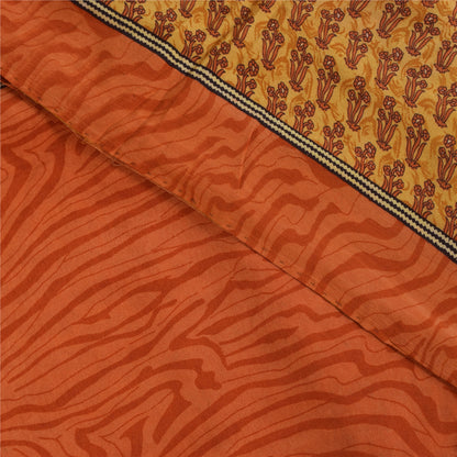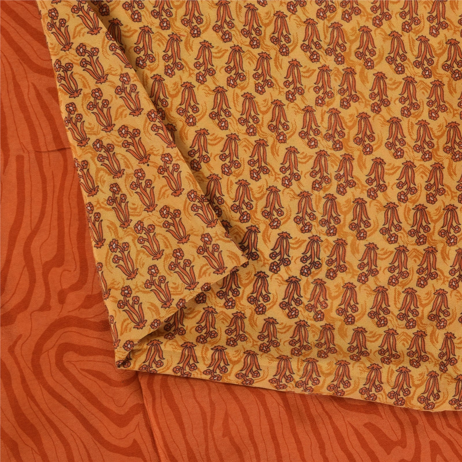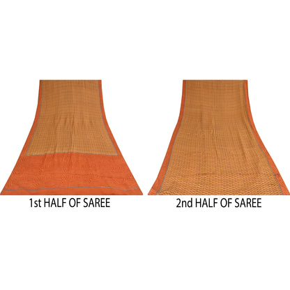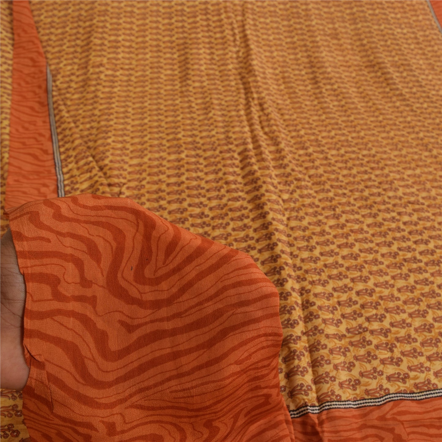 Sanskriti Vintage Sarees Saffron/Orange Pure Crepe Print Sari 5+yd Craft Sustainable Fabric