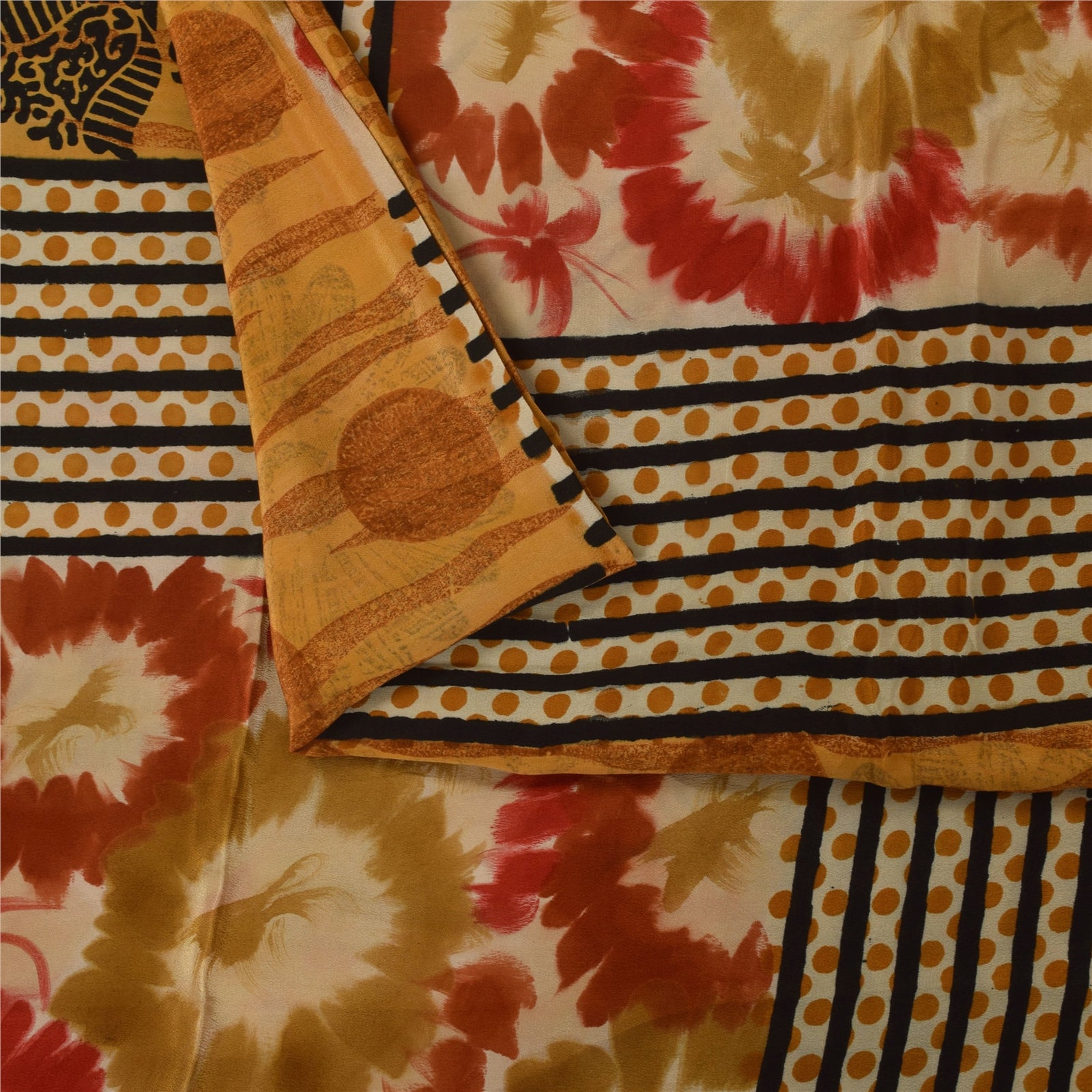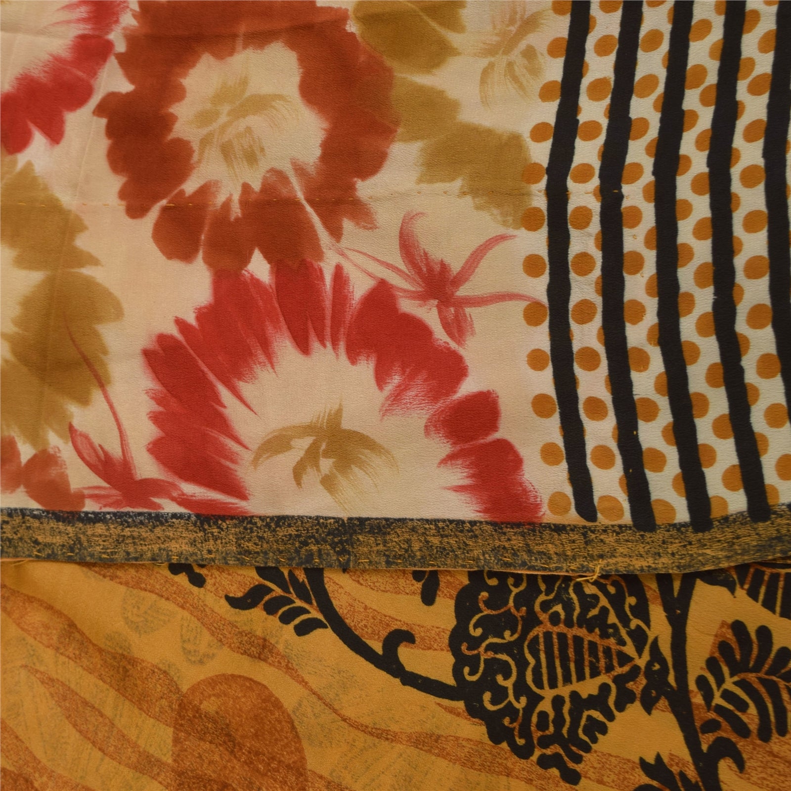 Sanskriti Vintage Sarees Saffron Pure Crepe Silk Printed Sari 5+yd Craft Sustainable Fabric
