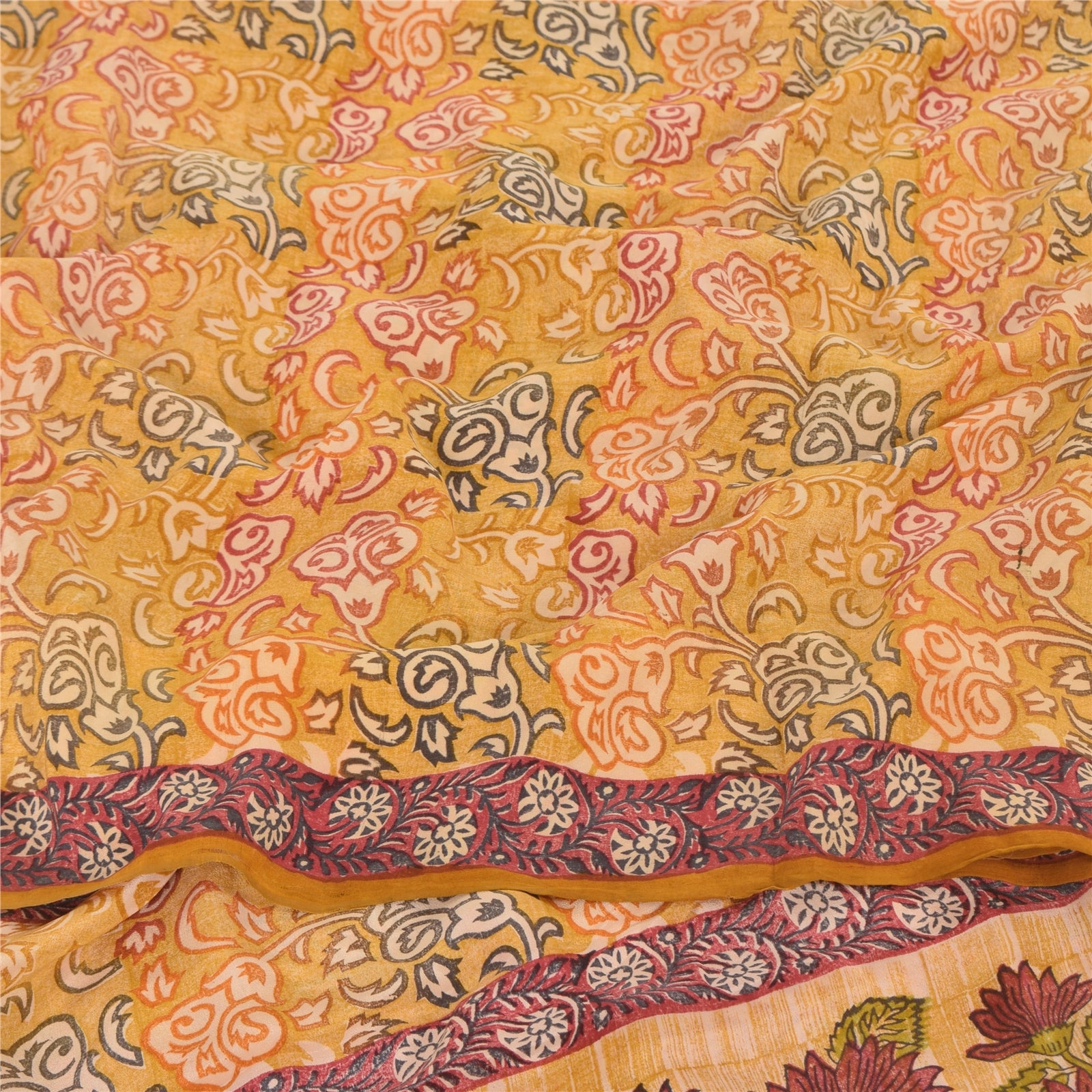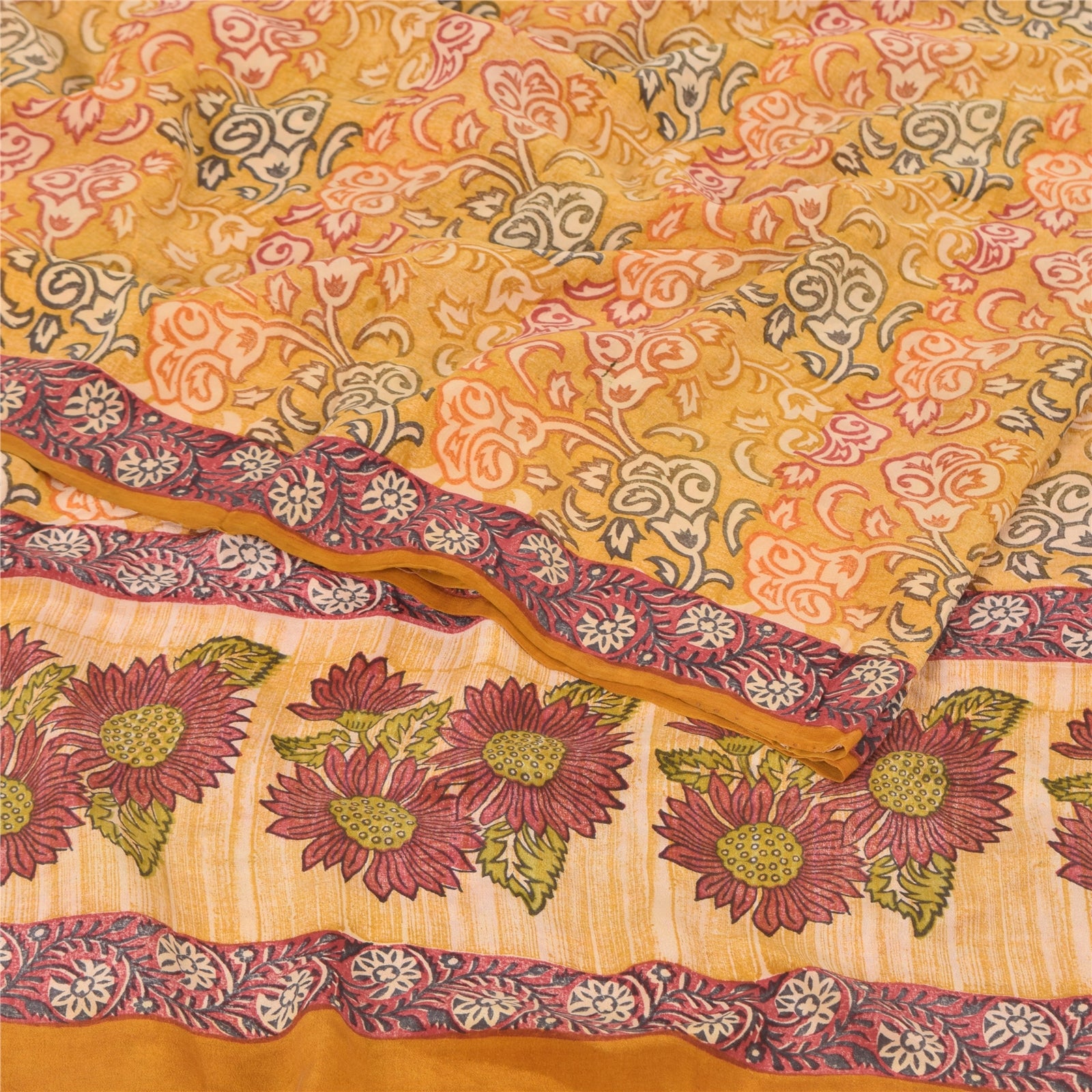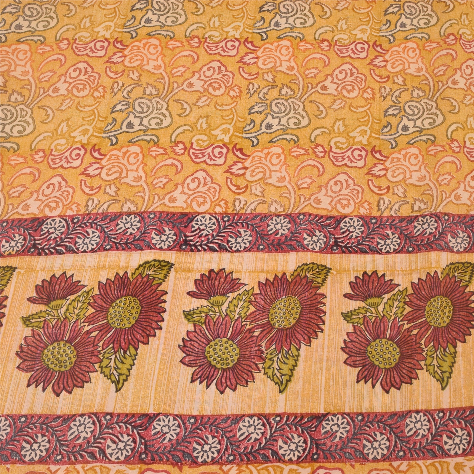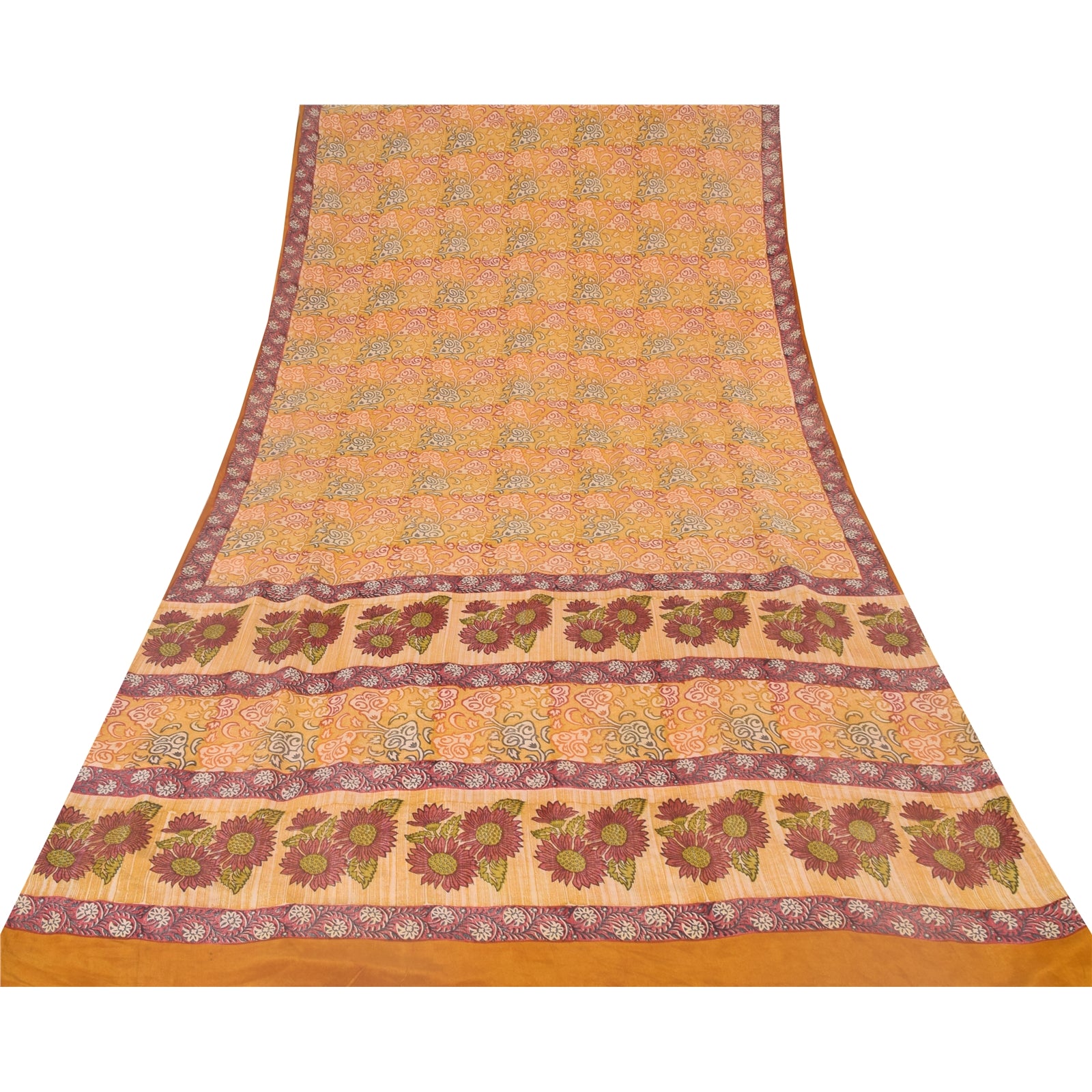 Sanskriti Vintage Sarees Saffron Pure Crepe Silk Printed Sari 5yd Craft Sustainable Fabric