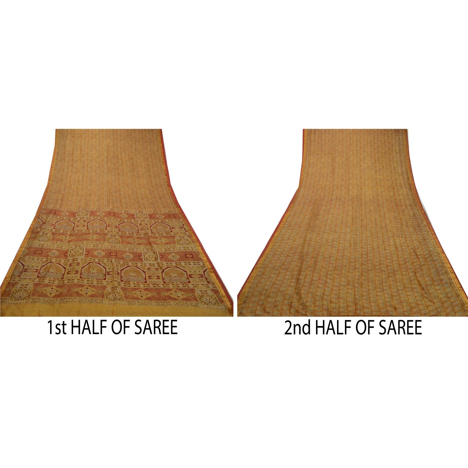 THE ITEM COLOR OR SHADE MAY BE DARKER OR LIGHTER THAN THE PICTURE.' Beautiful saffron colored pure silk printed saree. Pallu & Border has printed floral, geometric design & golden zari woven work. Geometric design in center part of saree. What is special about this saree? Fabulous design is really enhancing the beauty of the saree.This unique vintage saree can be used for various crafting ideas even if you don't want to use it as a sari. Design a dress, use it as window, dressing, upholstery, sarongs, throw, dress making and table linen much more. Let your creative juices flow and use this decorated Sustainable Fabric in multiple fashion. International buyers please note: Import duties, taxes, and charges are not included in the item price or postage cost. These charges are the buyer's responsibility. Please check with your country's customs office to determine what these additional costs will be prior to bidding or buying. Buyer will pay custom duty/tax. It is calculated and charged differently by every country. As a seller I do not have any control over it. VAT or sales tax is calculated by the platform at the time of checkout. Customs charge is payable at the time of delivery.'