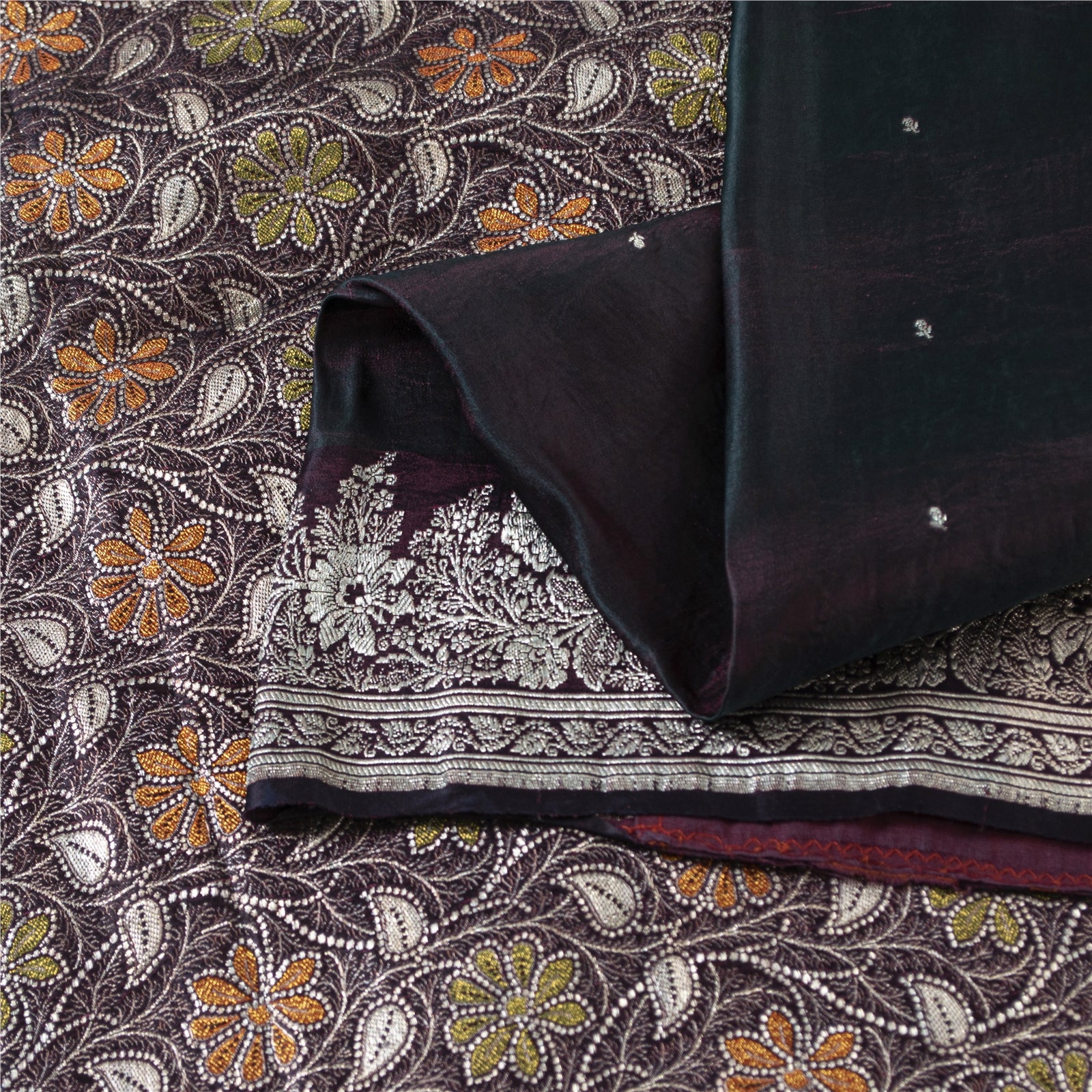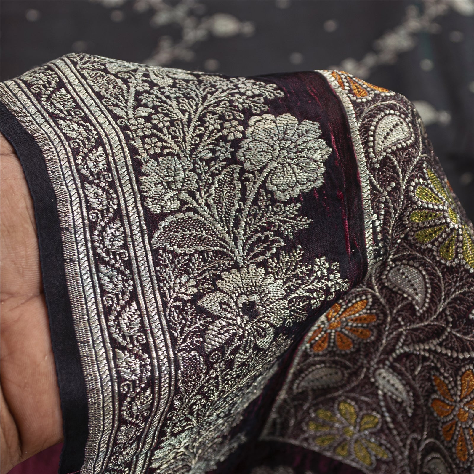 Sanskriti Vintage Sarees Wine Banarasi Brocade Zari Woven Pure Silk Sari Fabric