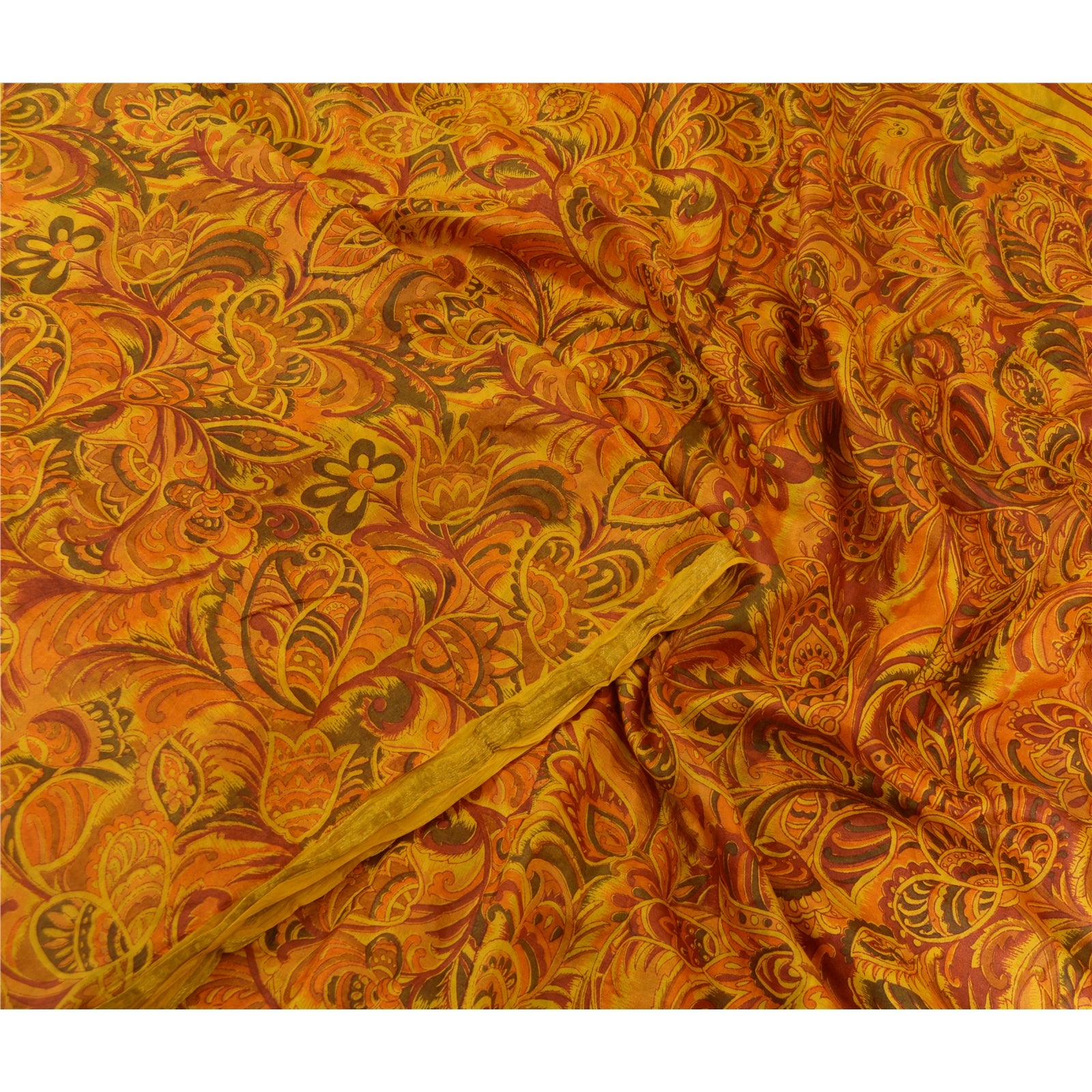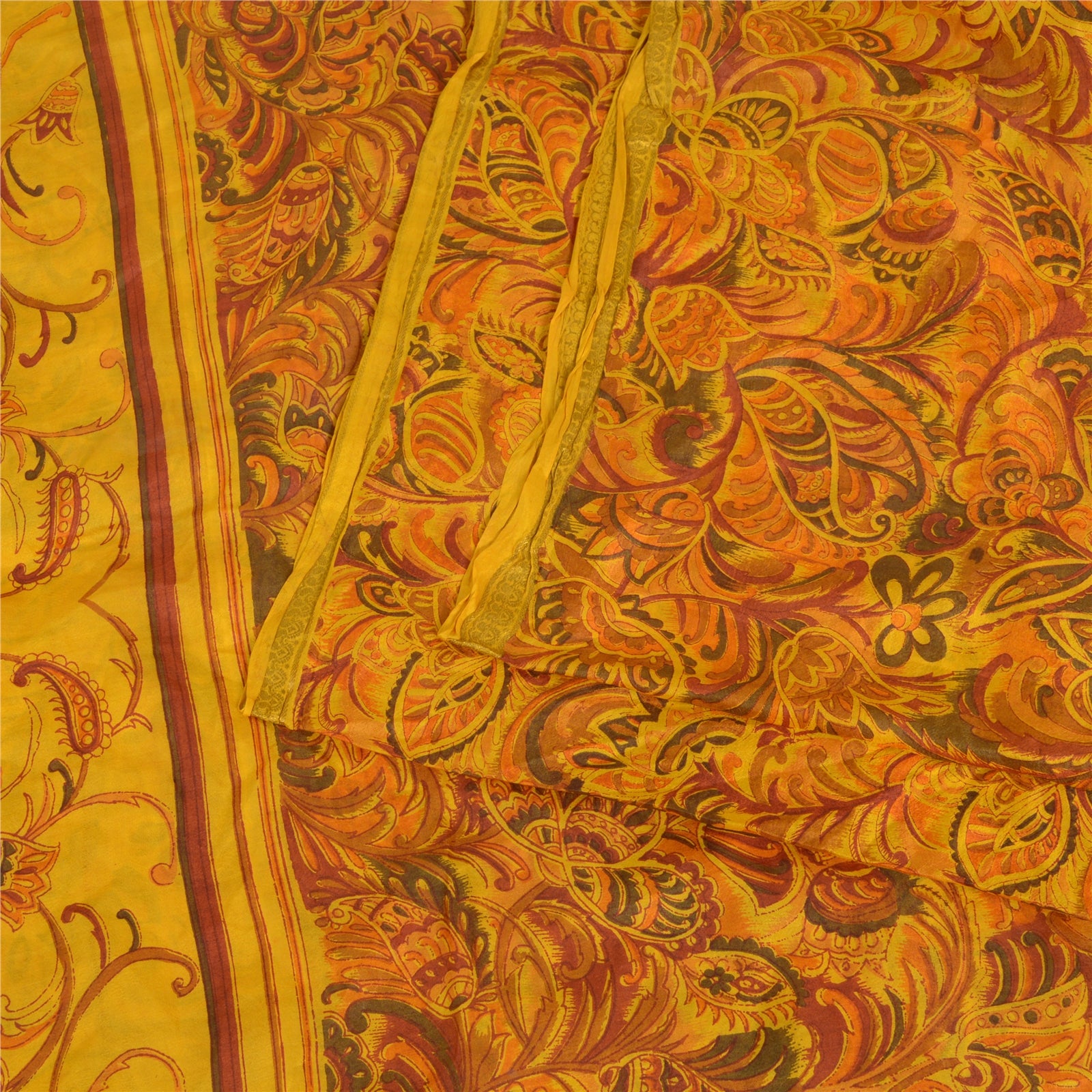 Sanskriti Vintage Sarees Yellow 100% Pure Silk Print Sari 5YD Soft Craft Sustainable Fabric
