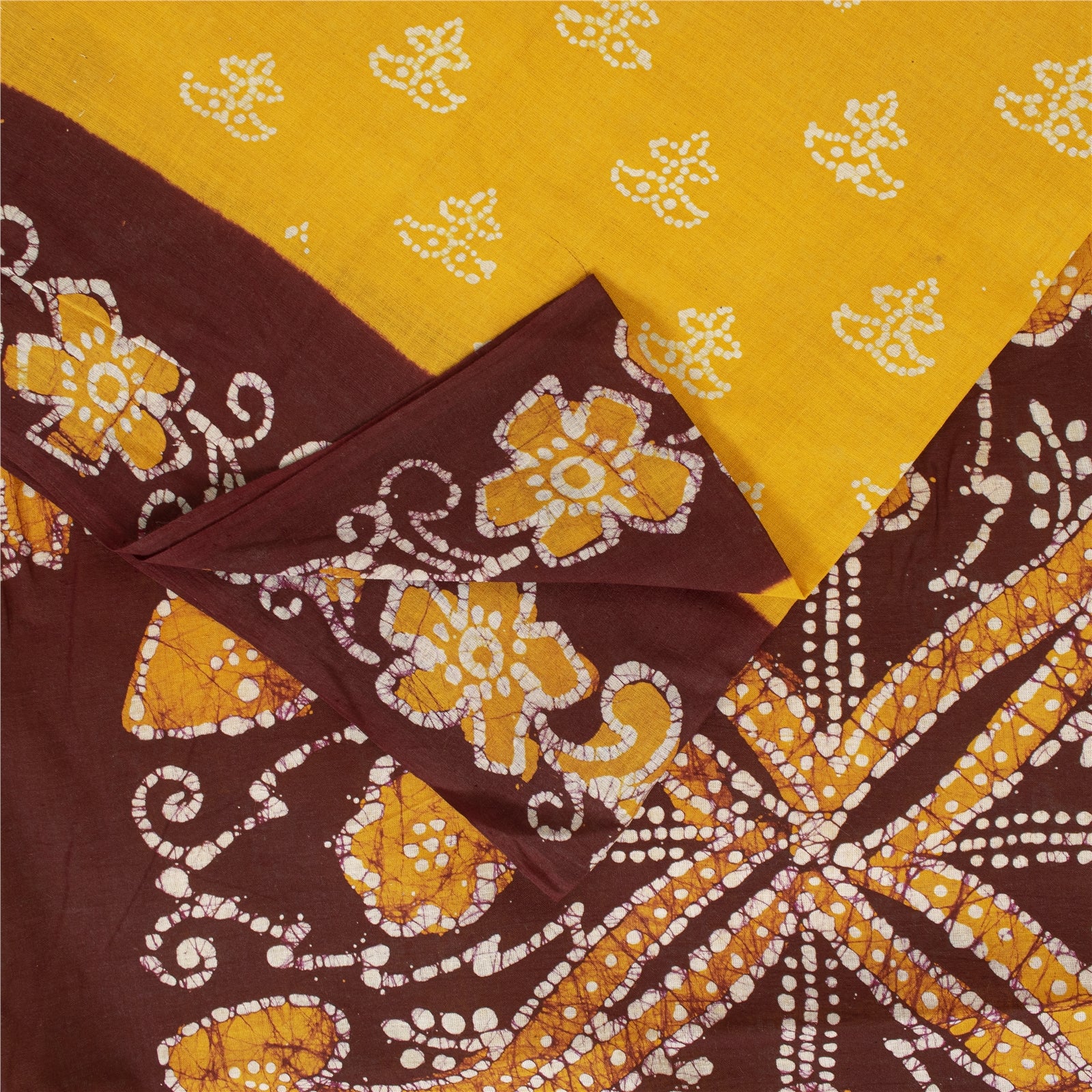 Beautiful yellow colored pure cotton batik work saree with floral design on pallu, border, & center part. Versatile Uses-Crafting, Repurpose, Breathable fabric, Creative Sewing Project, Dressmaking, Kaftans, Use It As A Sari, Window Dressing, Upcycling, Sarongs, Throw,Table Linen,Decorative Fabric, Sustainable Indian Fabric. THE ITEM COLOR OR SHADE MAY BE DARKER OR LIGHTER THAN THE PICTURE.' International buyers please note: Import duties, taxes, and charges are not included in the item price or postage cost. Buyer will pay custom duty/tax,VAT, and any applicable charges at the time of delivery. PCS-7450