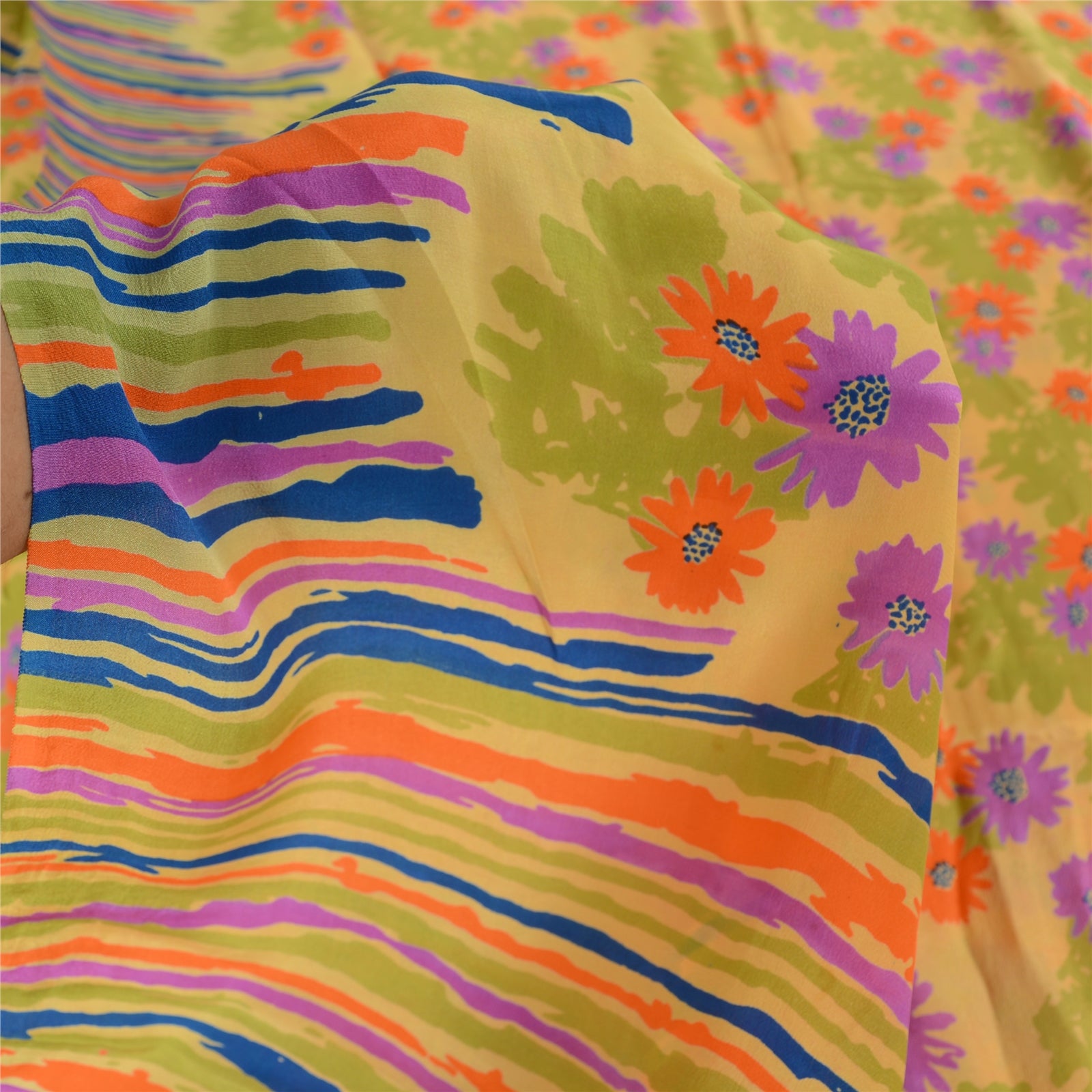 THE ITEM COLOR OR SHADE MAY BE DARKER OR LIGHTER THAN THE PICTURE.' • Beautiful yellow colored printed pure crepe silk saree . • Pallu & Border has printed abstract lines design. • Floral design in center part of sari . This unique vintage saree can be used for various crafting ideas even if you don't want to use it as a sari. Design a dress, use it as a as window dressing, upholstery, sarongs, throw, dress making and table linen much more. Let your creative juices flow and use this decorated fabric in multiple fashion. International buyers please note: Import duties, taxes, and charges are not included in the item price or postage cost. These charges are the buyer's responsibility. Please check with your country's customs office to determine what these additional costs will be prior to bidding or buying.Buyer will pay custom duty/tax. It is calculated and charged differently by every country. As a seller I do not have any control over it. VAT or sales tax is calculated by the platform at the time of checkout. Customs charge is payable at the time of delivery. PRC-22465