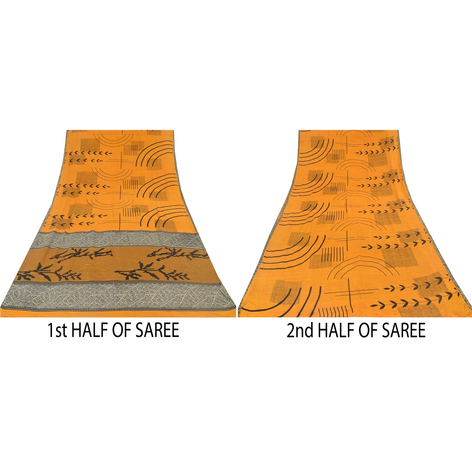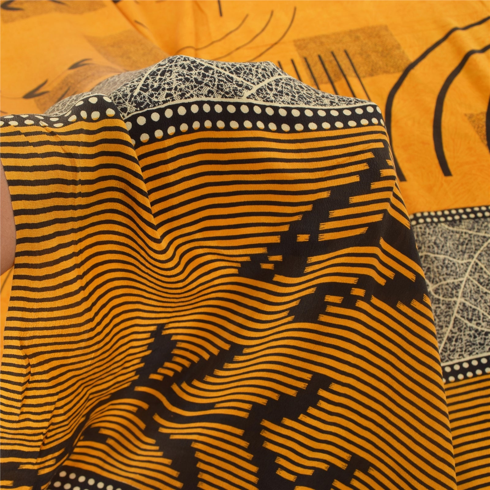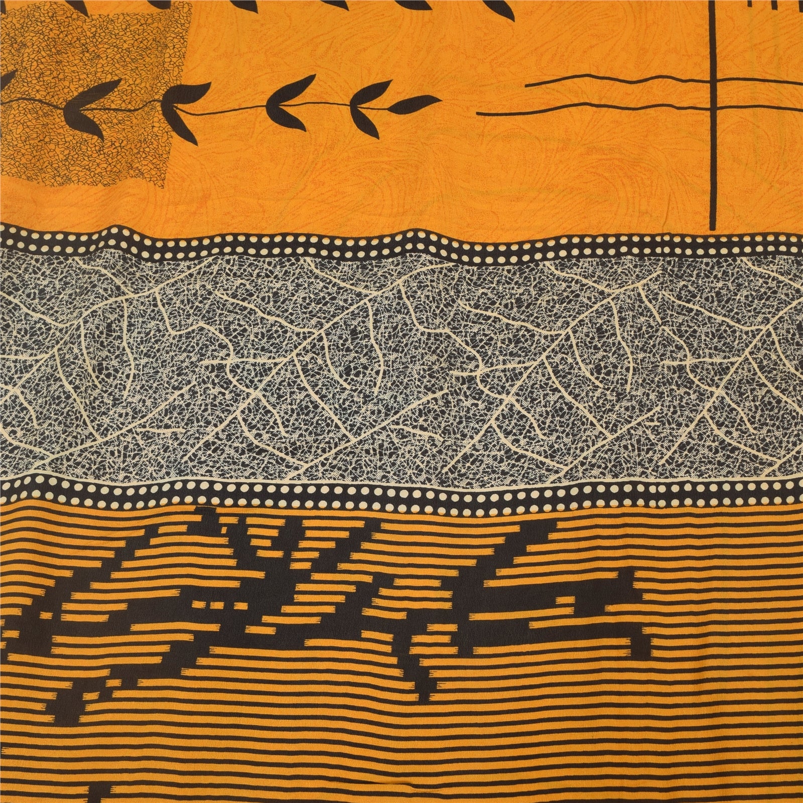 Sanskriti Vintage Sarees Yellow Pure Crepe Silk Printed Sari 5yd Craft Sustainable Fabric