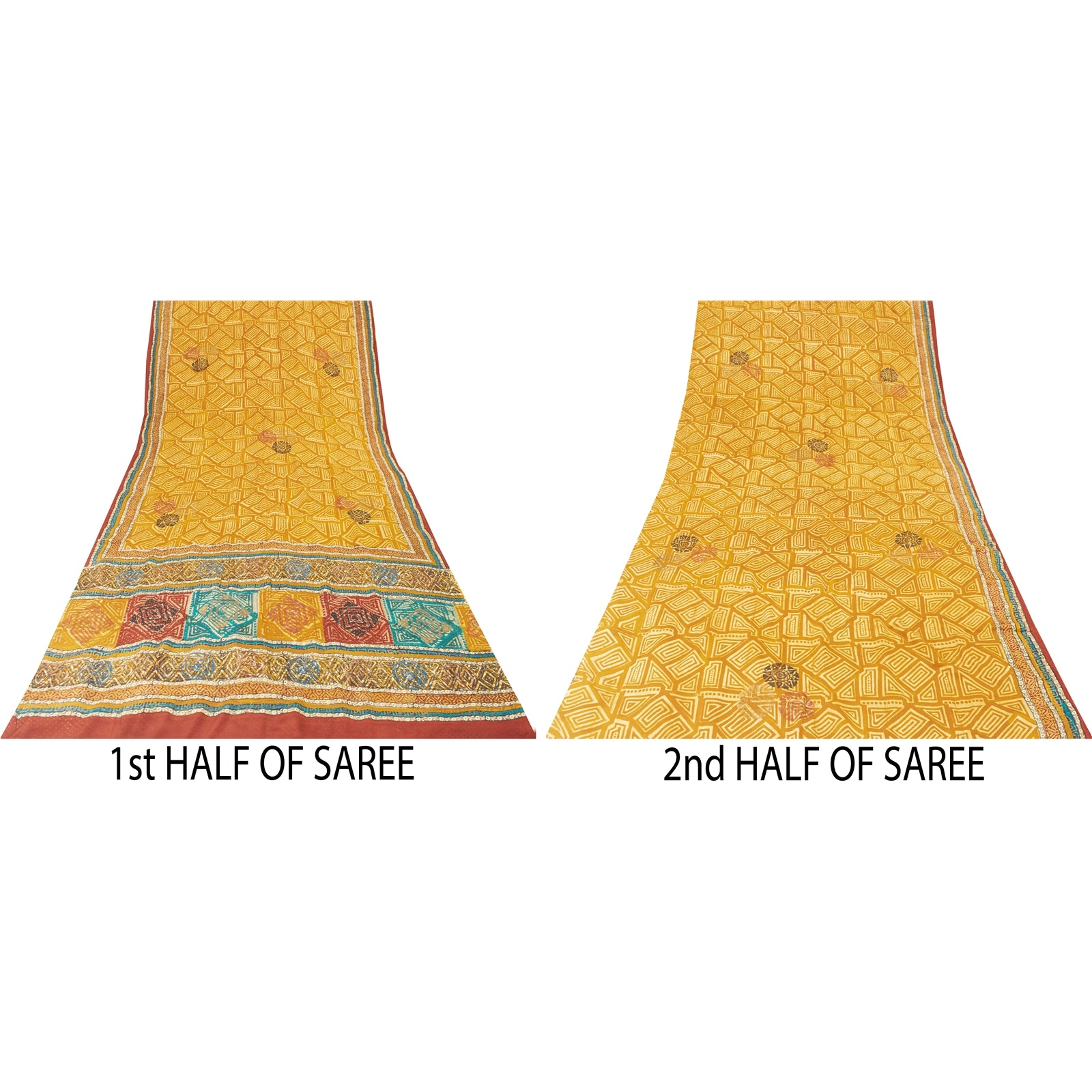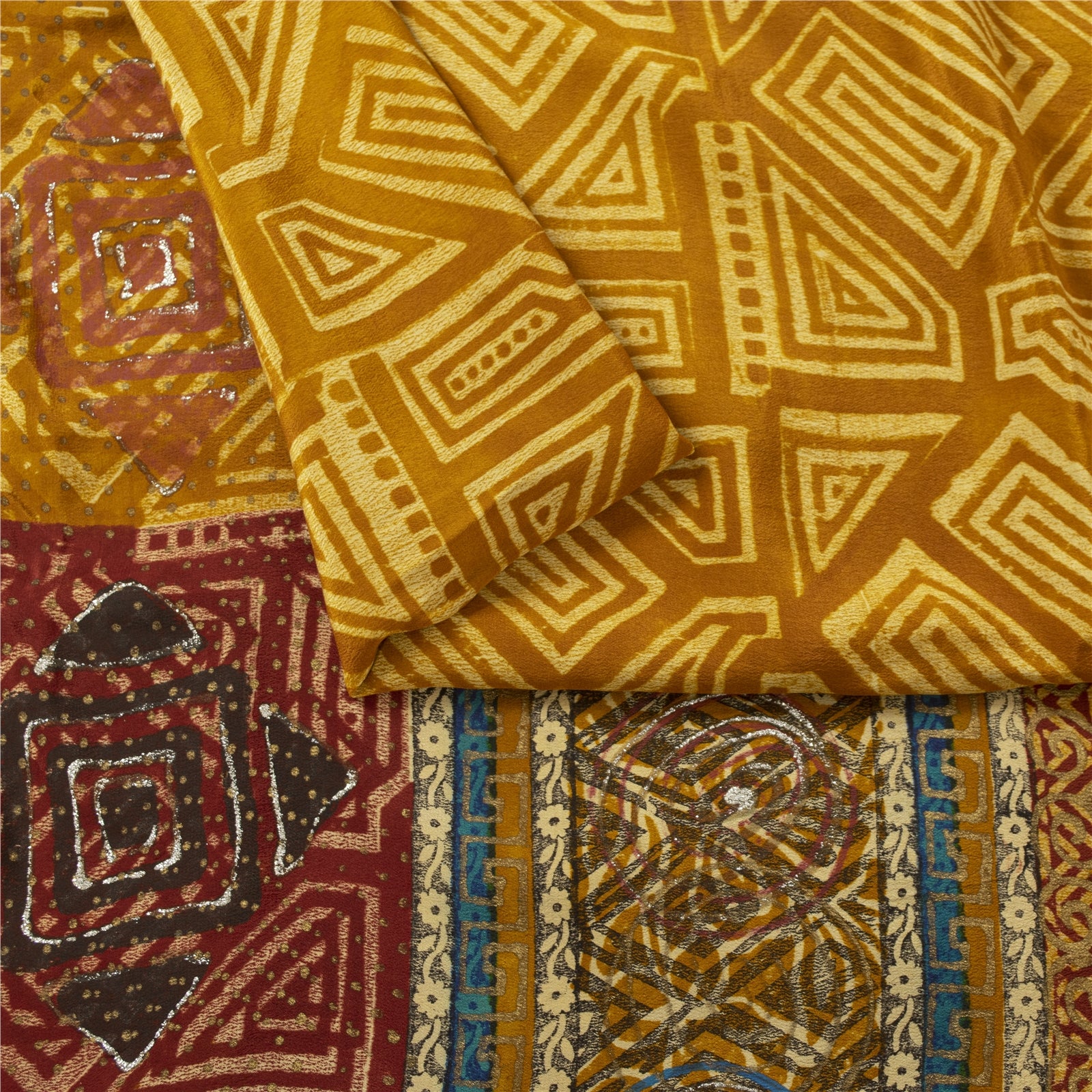 Sanskriti Vintage Sarees Yellow Pure Crepe Sparkle Printed Sari 6yd Craft Fabric