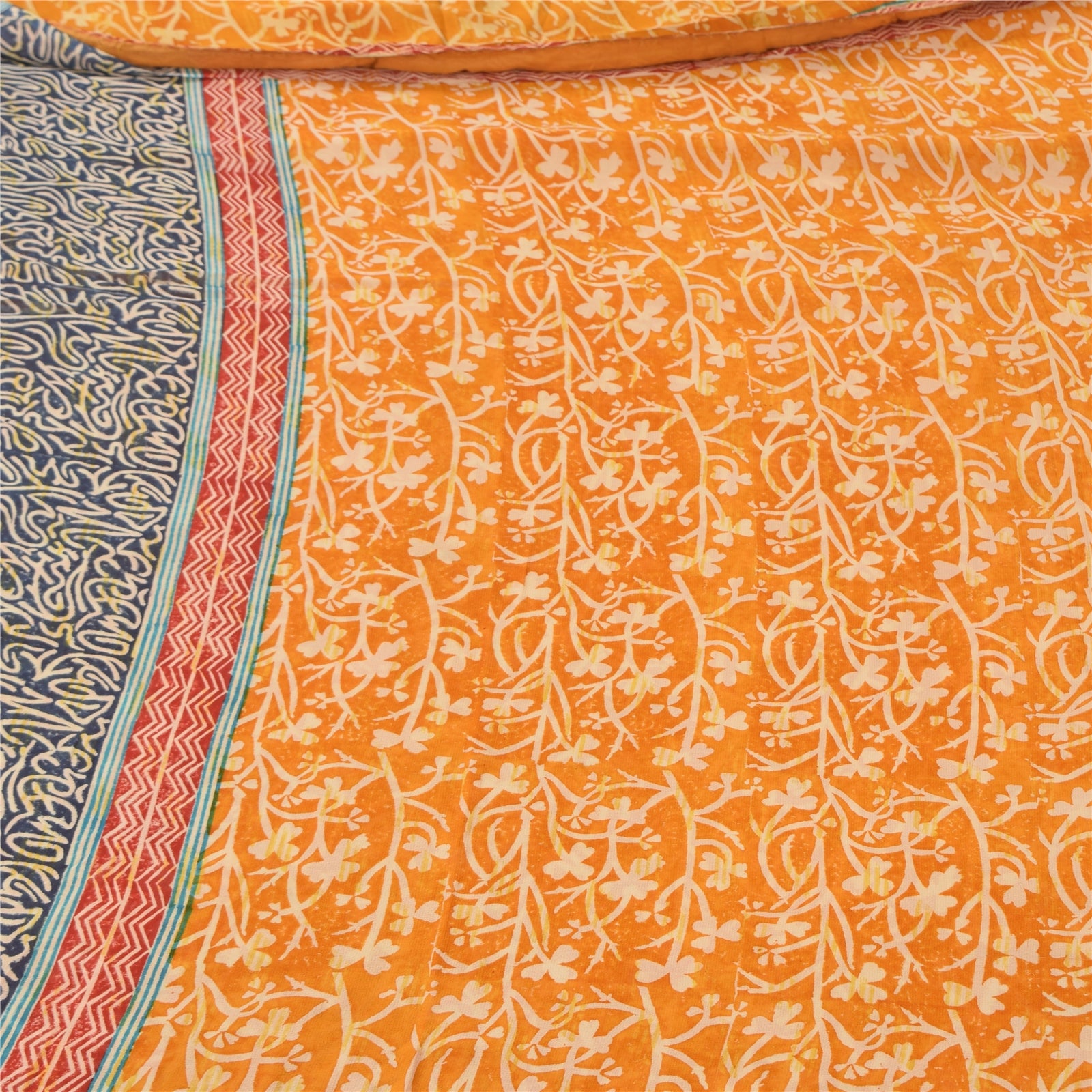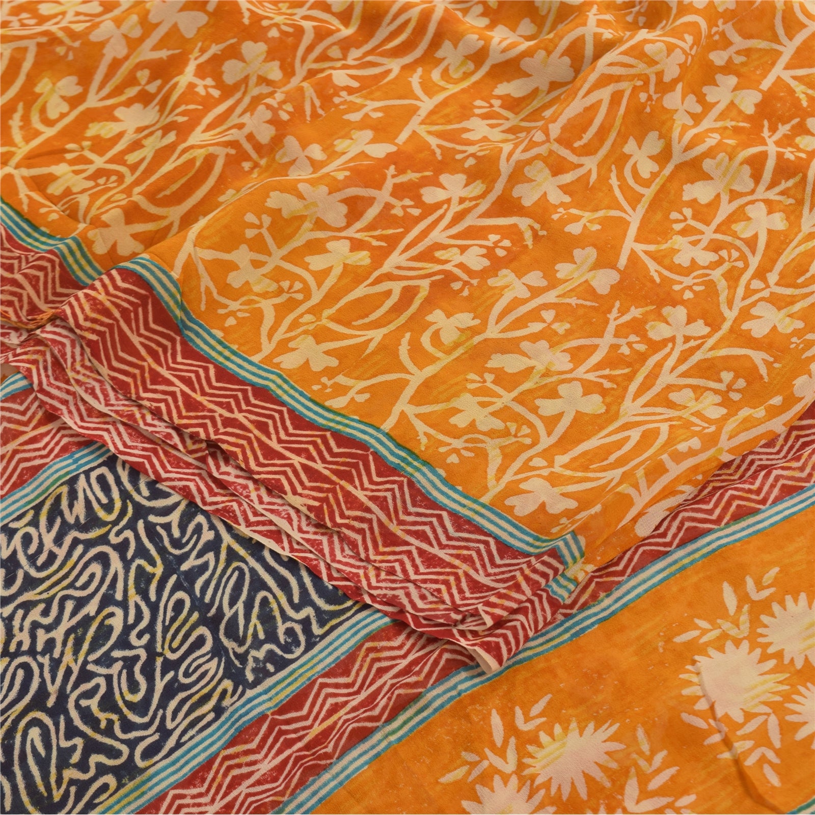 Sanskriti Vintage Sarees Yellow Pure Georgette Silk Print Sari 5yd Craft Fabric