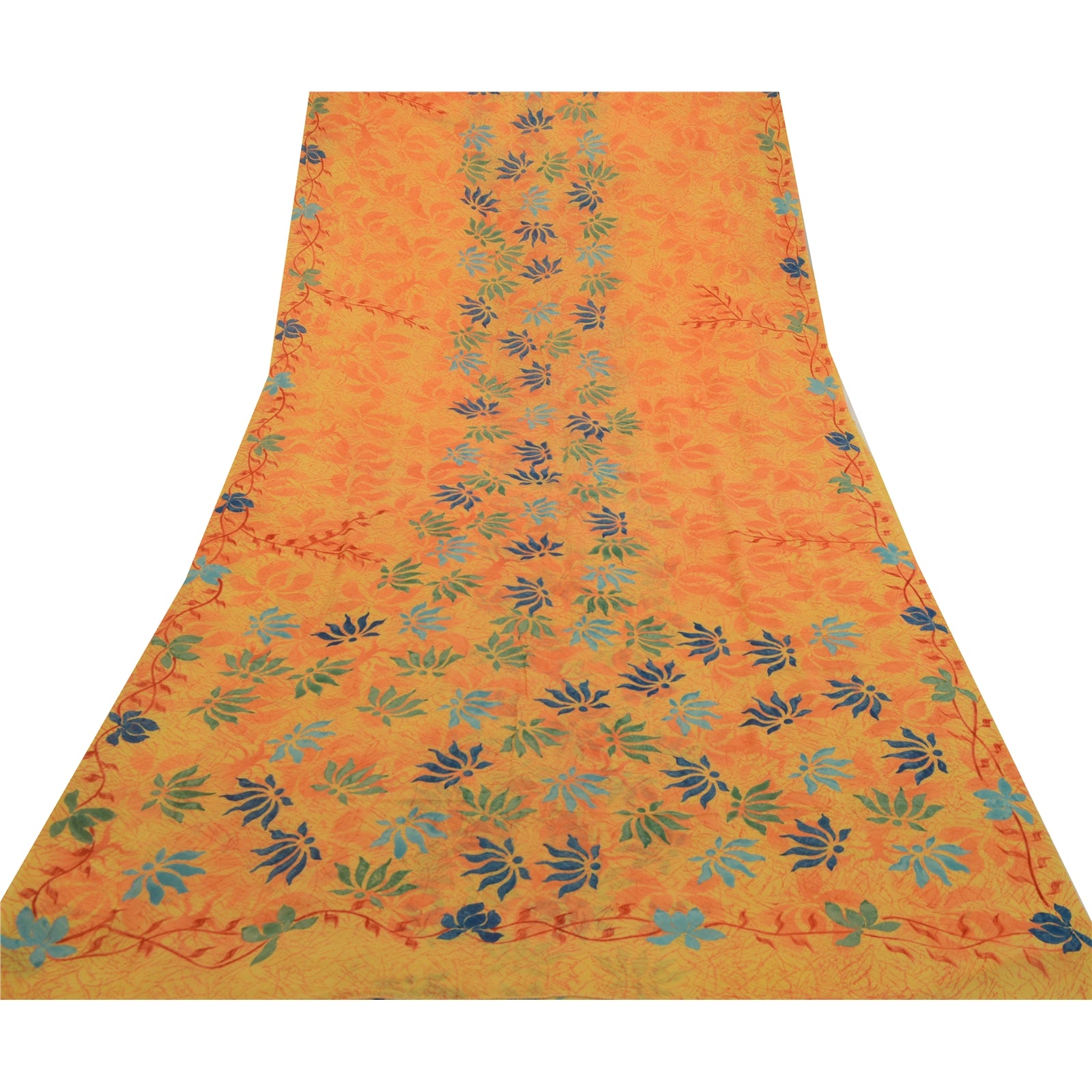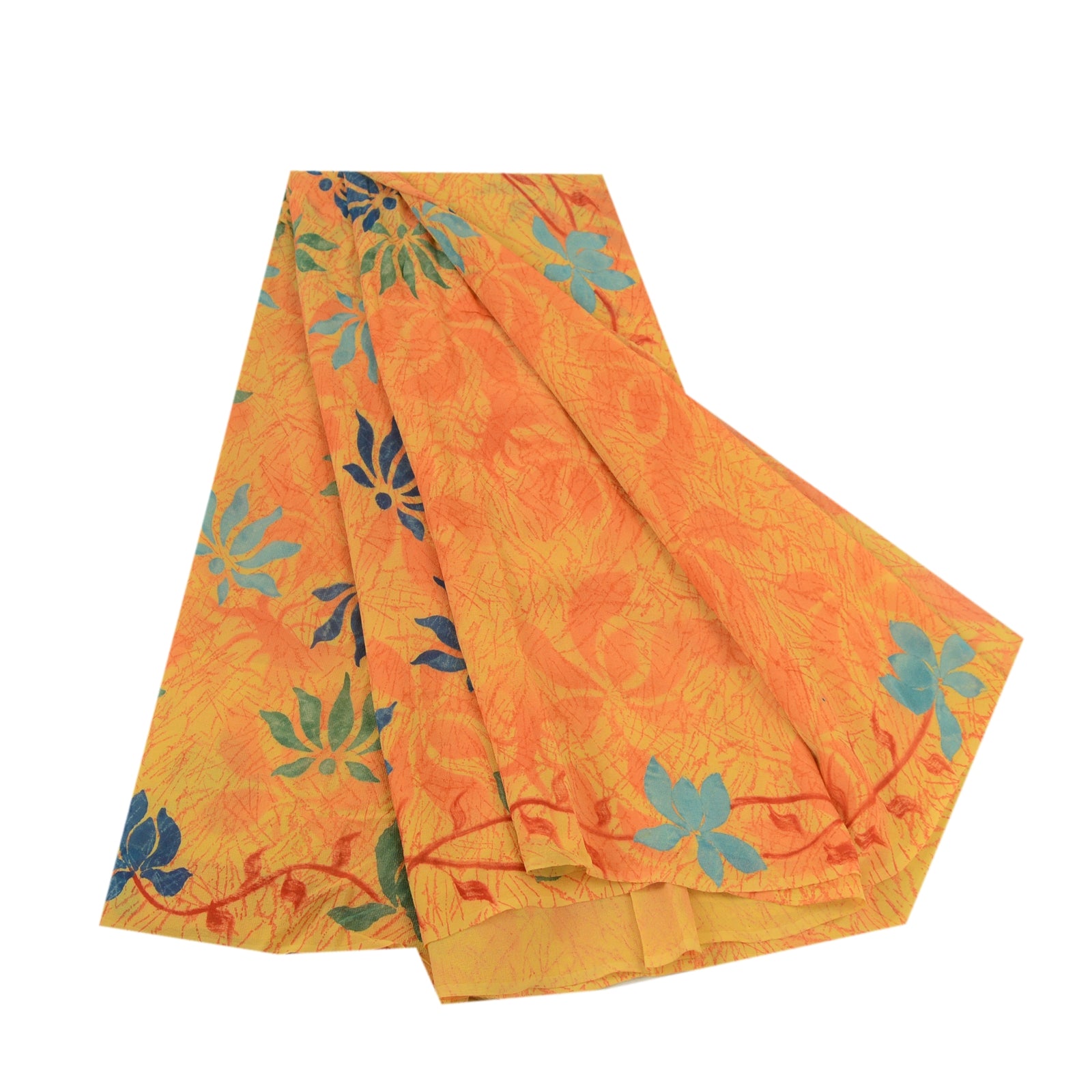 Sanskriti Vintage Sarees Yellow Pure Georgette Silk Printed Sari Craft Sustainable Fabric