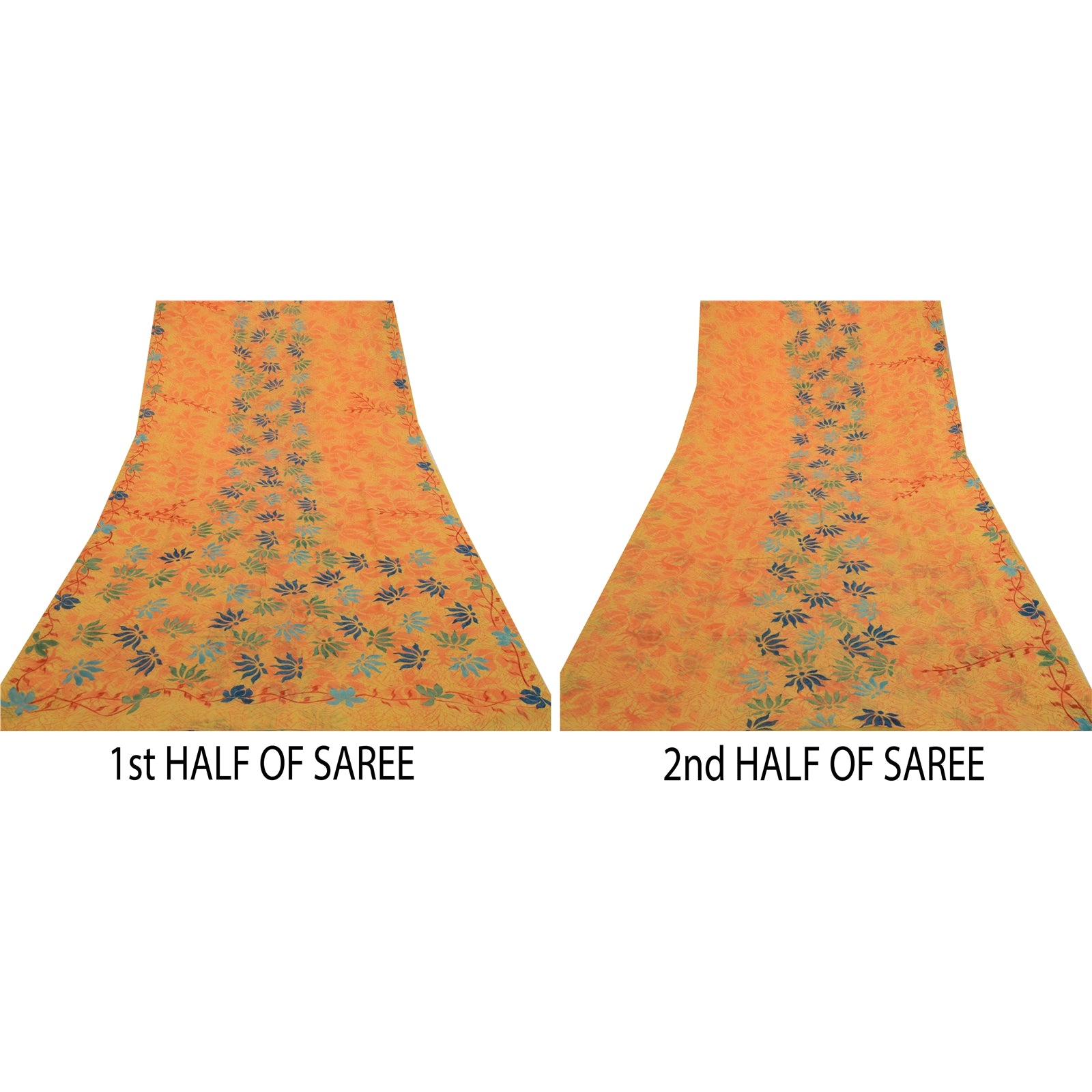 THE ITEM COLOR OR SHADE MAY BE DARKER OR LIGHTER THAN THE PICTURE.' Beautiful yellow colored pure georgette silk printed saree. Pallu & Border has printed floral design. Similar design in center part of saree. Saree has mild stain on it. What is special about this saree? Brilliant design on soft Sustainable Fabric is really enhancing the beauty of the saree. This unique vintage saree can be used for various crafting ideas even if you don't want to use it as a sari. Design a dress, use it as a as window dressing, upholstery, sarongs, throw, dress making and table linen much more. Let your creative juices flow and use this decorated Sustainable Fabric in multiple fashion. International buyers please note: Import duties, taxes, and charges are not included in the item price or postage cost. These charges are the buyer's responsibility. Please check with your country's customs office to determine what these additional costs will be prior to bidding or buying.Buyer will pay custom duty/tax. It is calculated and charged differently by every country. As a seller I do not have any control over it. VAT or sales tax is calculated by the platform at the time of checkout. Customs charge is payable at the time of delivery.