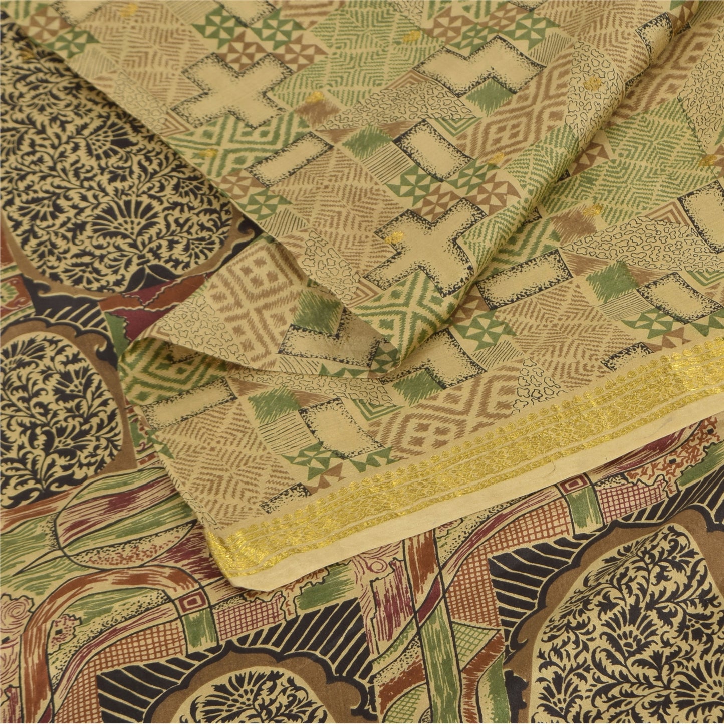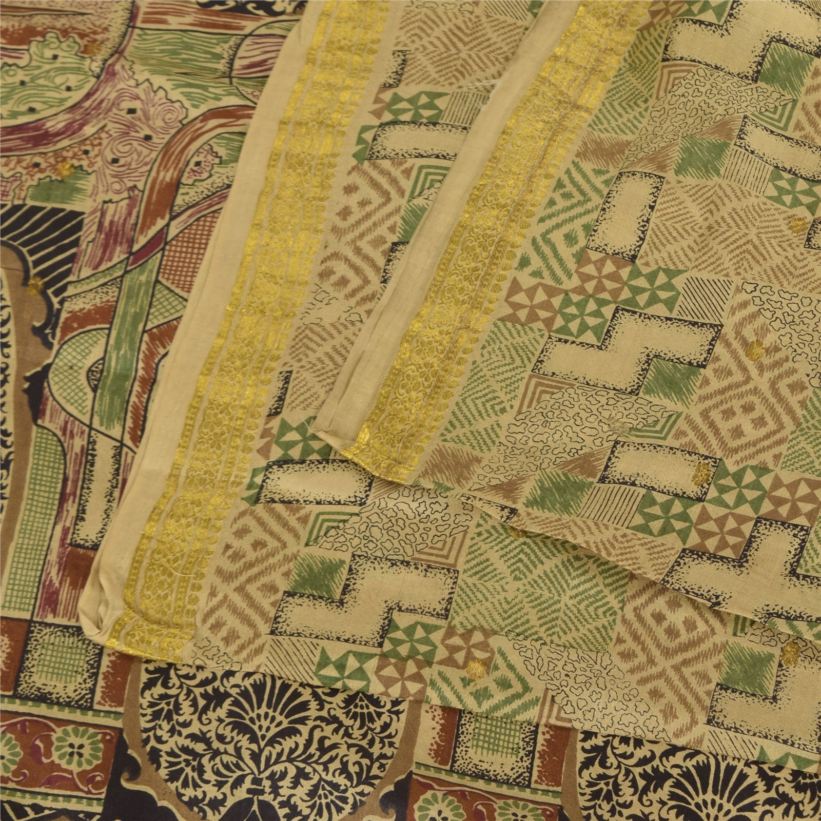 Sanskriti Vintage Sarees Zari Border Pure Silk Printed Sari 6+yd Craft Sustainable Fabric