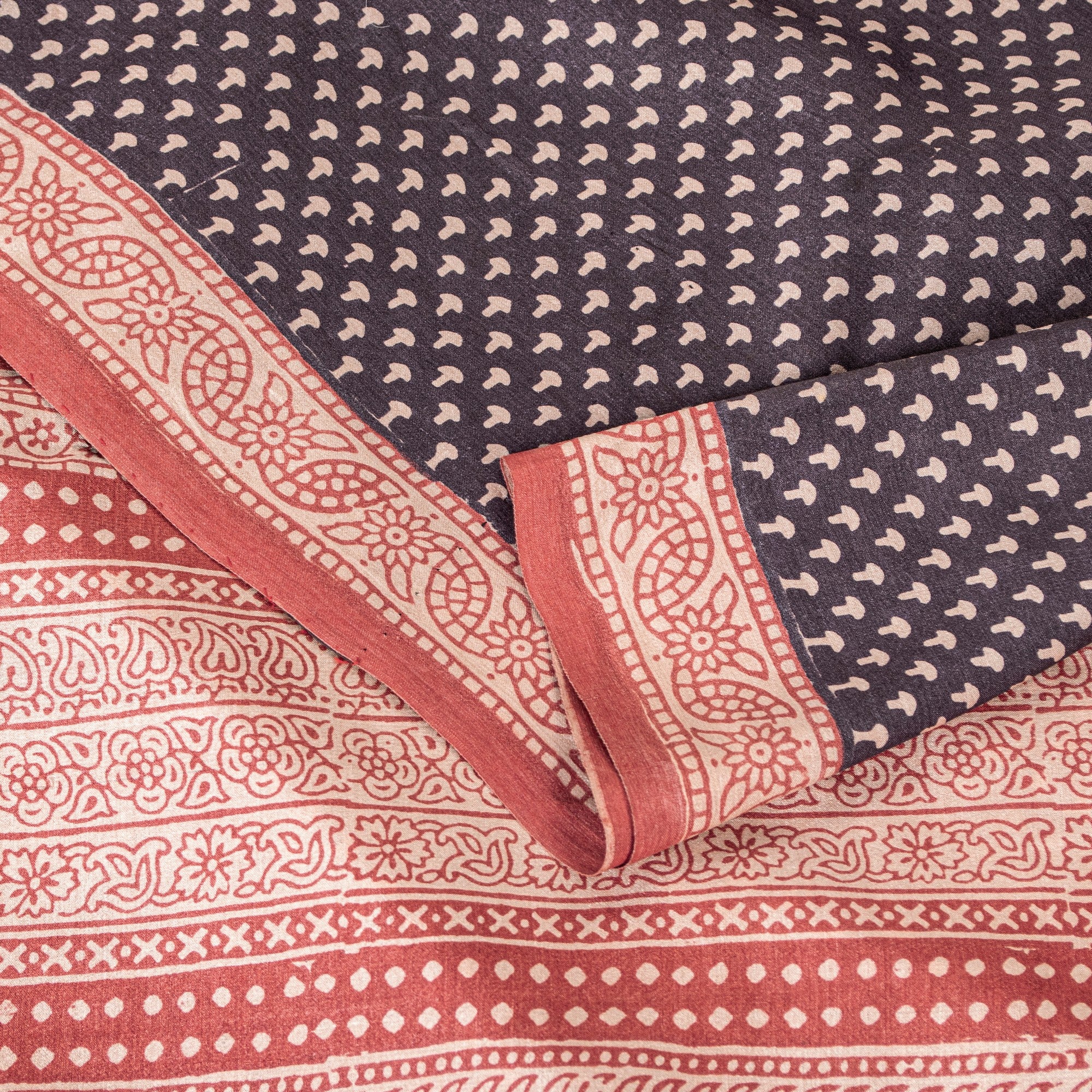 • Brand: • Product Type: Saree/Sarees/Sari Craft Fabric • Fabric: Pure Bamboo Silk • Color: Black & Red (As Shown In Images) • Length: Approx. 6.5+ Yards • Width: Approx. 1+ Yards • Work: Hand Block Print With Floral Design On Pallu, Borders & Mushroom Motif In Center Part Of Saree. • Texture: Lightweight, Soft, Flowy With Elegant Drape • Condition: Vintage / Pre-Owned • Uses: • Designer Saree Draping • Bridal & Festive Outfits • Lehenga, Gown, Dupatta Making • Craft Projects, Upcycling, Ethnic Décor • Note: • Color May Vary Slightly Due To Lighting & Screen Settings • Ideal For Fashion Designers, Collectors & Fabric Lovers The Item Color Or Shade May Be Darker Or Lighter Than The Picture.' International Buyers Please Note: Import Duties, Taxes, And Charges Are Not Included In The Item Price Or Postage Cost. Buyer Will Pay Custom Duty/Tax,Vat, And Any Applicable Charges At The Time Of Delivery. Hs-7395