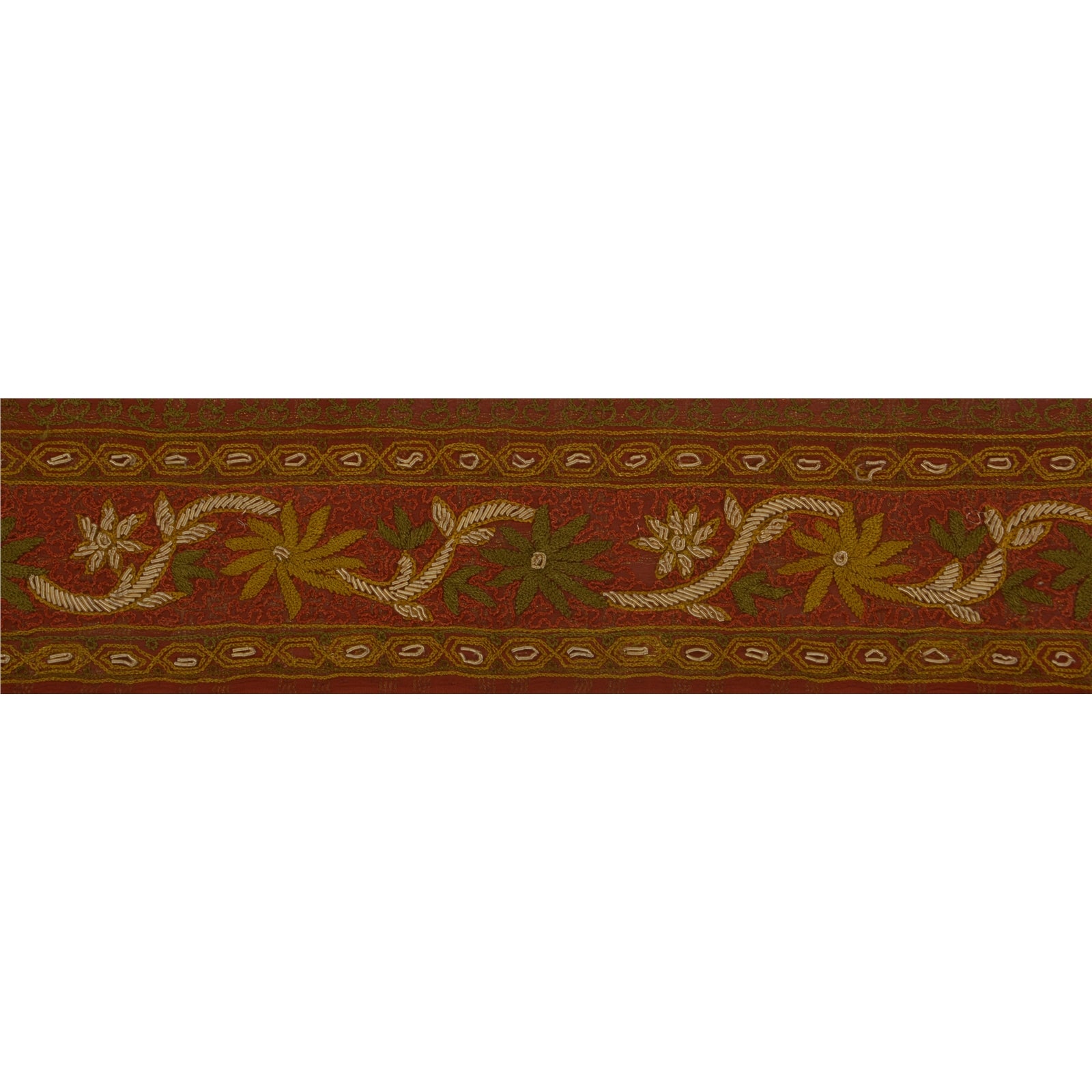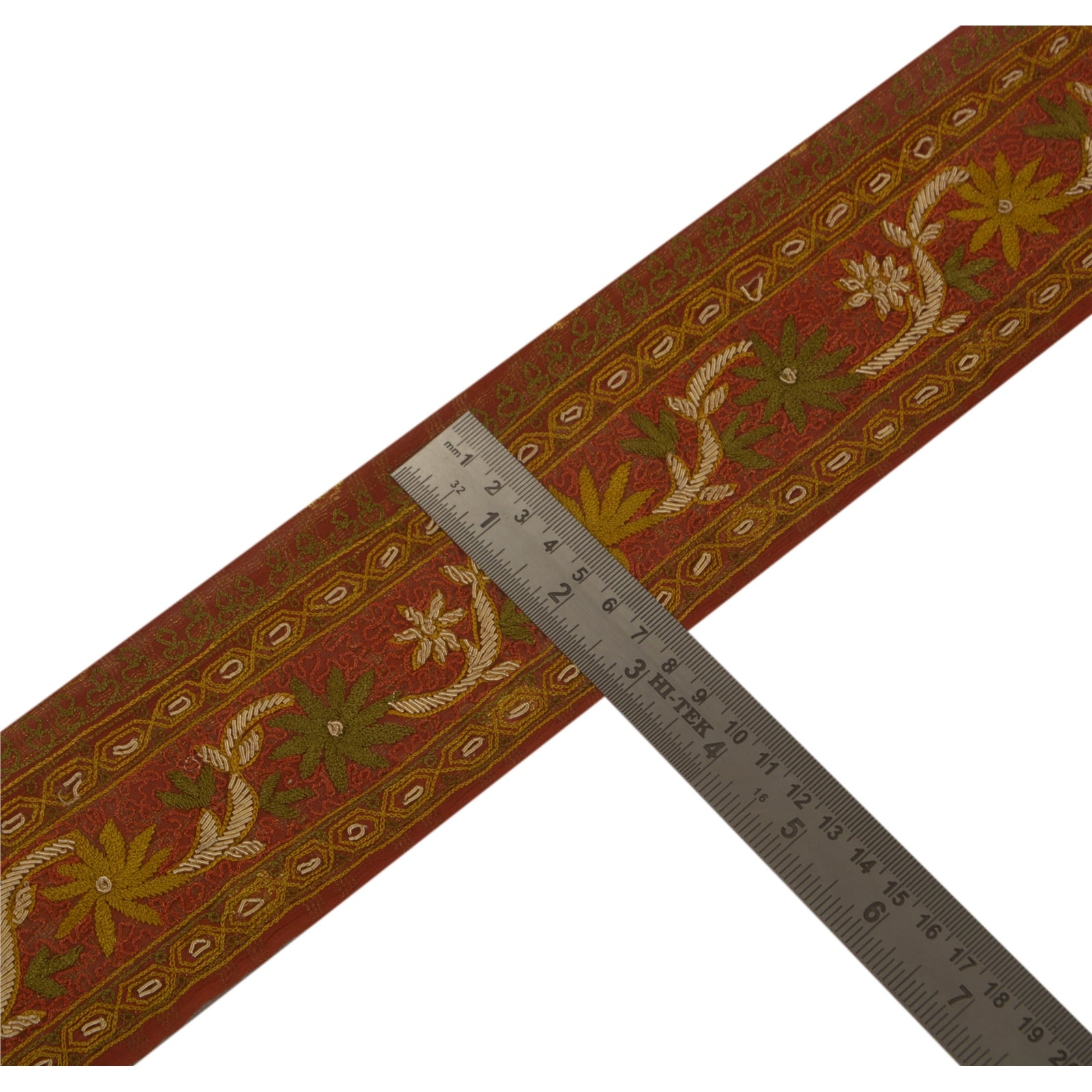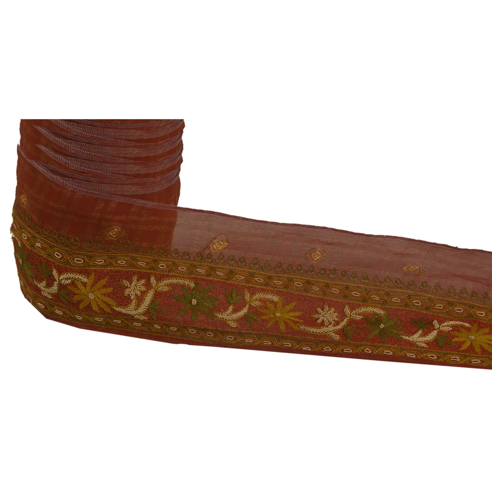 Sanskriti Vintage Sari Border 1Yd Craft Orange Trim Hand Embroidered Sewing Lace