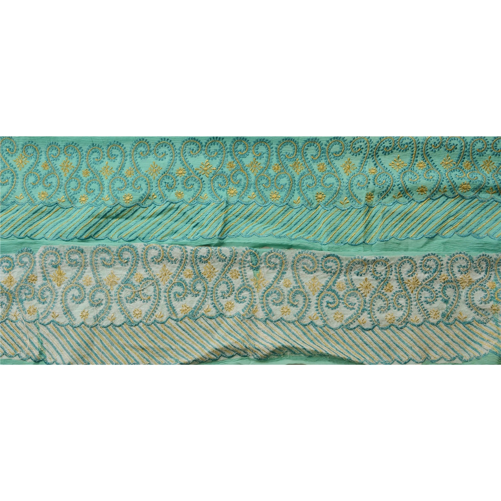 Sanskriti Vintage Sari Border Embroided 1Yd Trim Sewing Green Craft Floral Lace