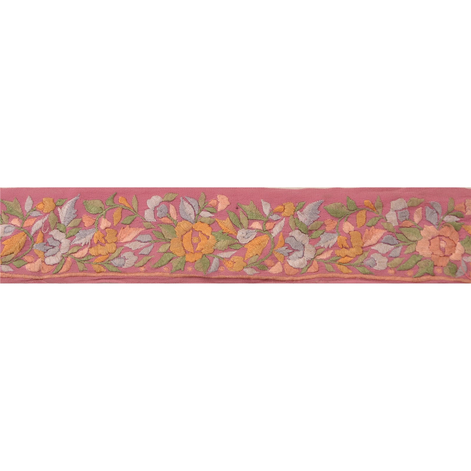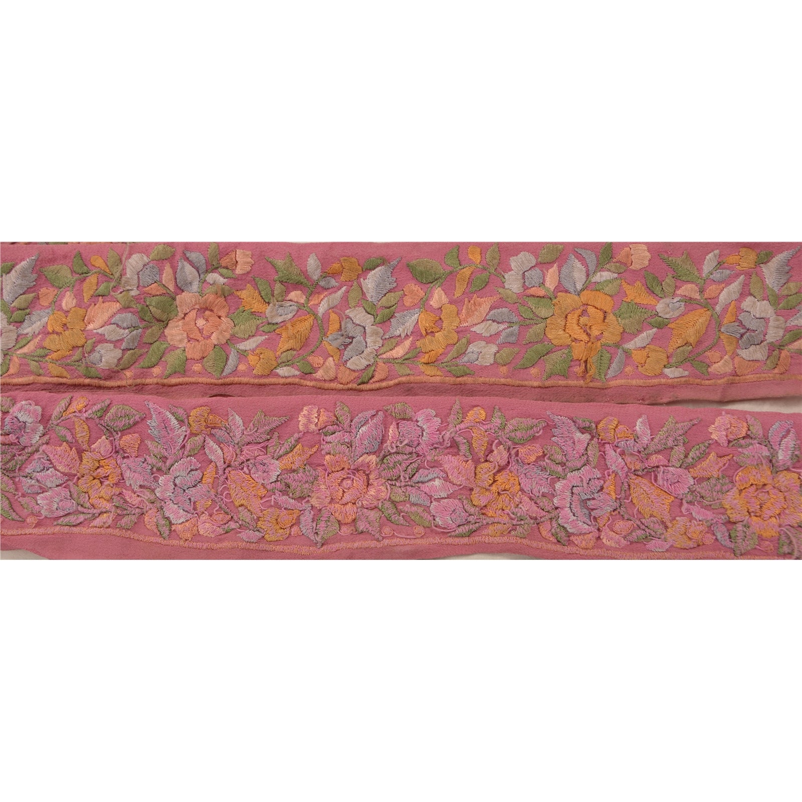 Sanskriti Vintage Sari Border Embroidered 1Yd Trim Sewing Pink Craft Floral Lace