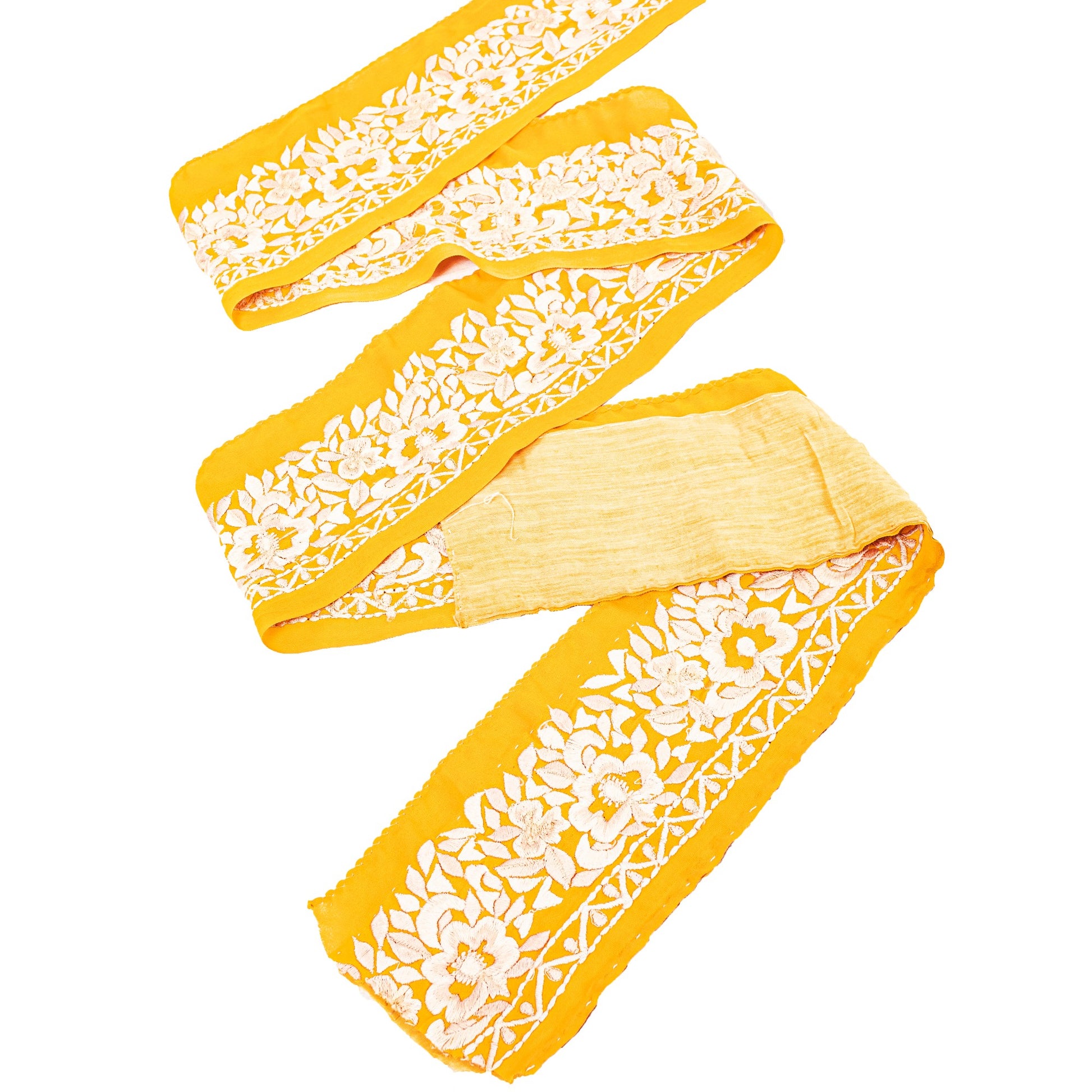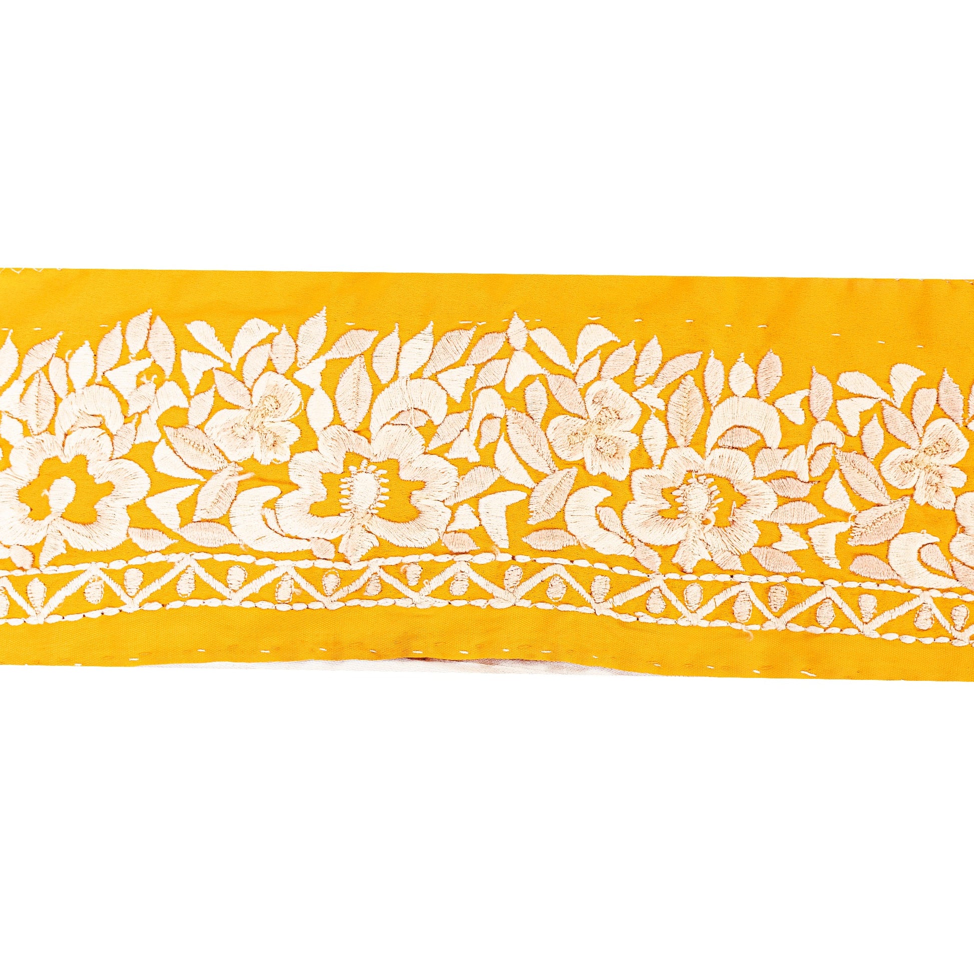 SANSKRITI VINTAGE SARI BORDER EMBROIDERED CRAFT 1YD TRIM FLORAL LACE SAFFRON